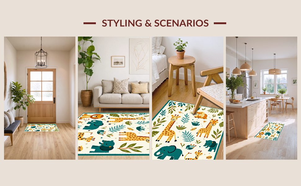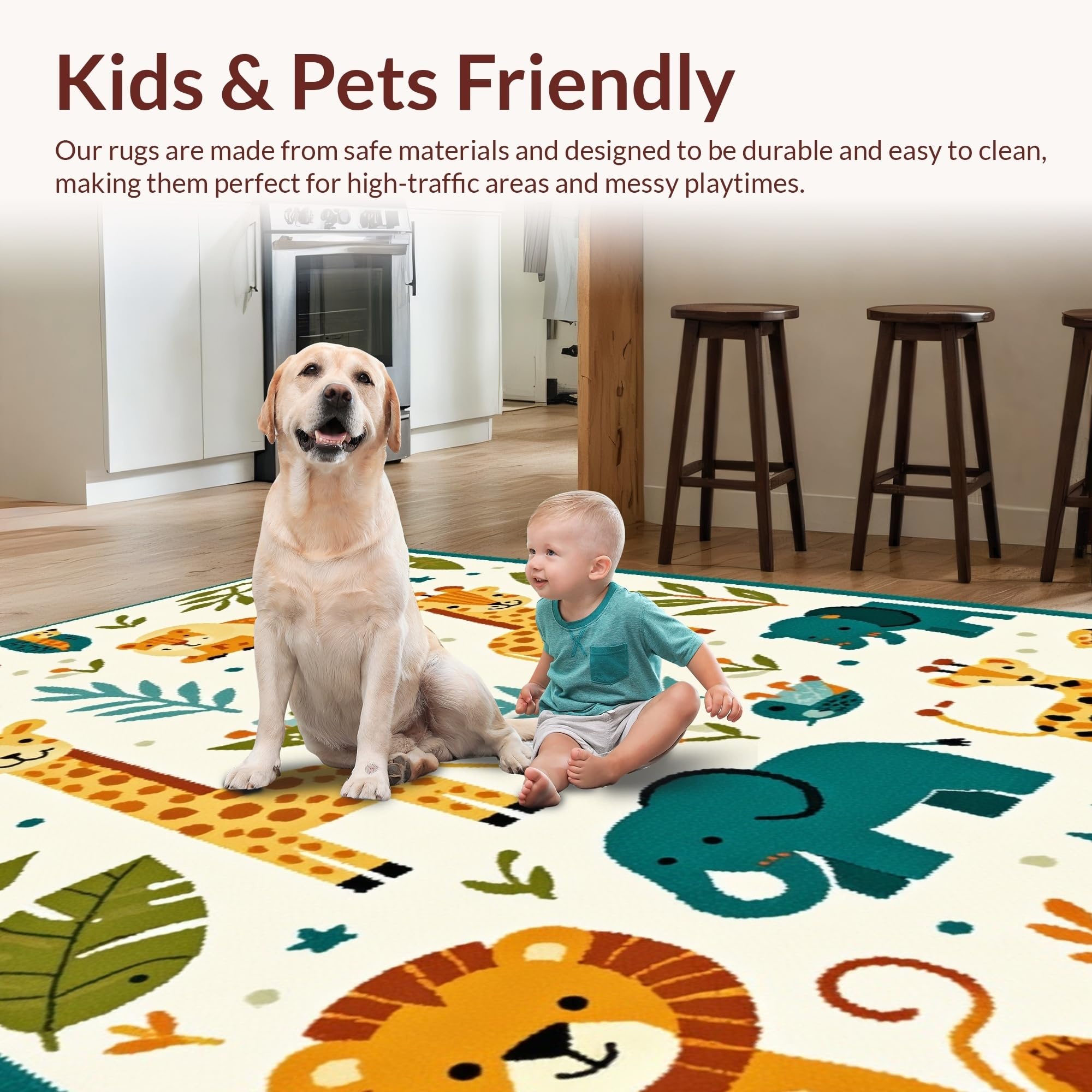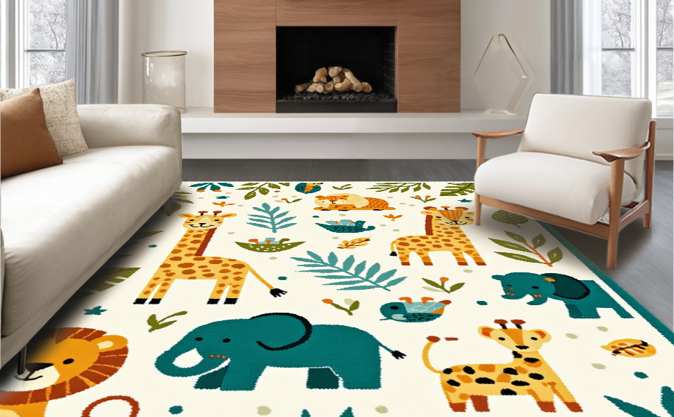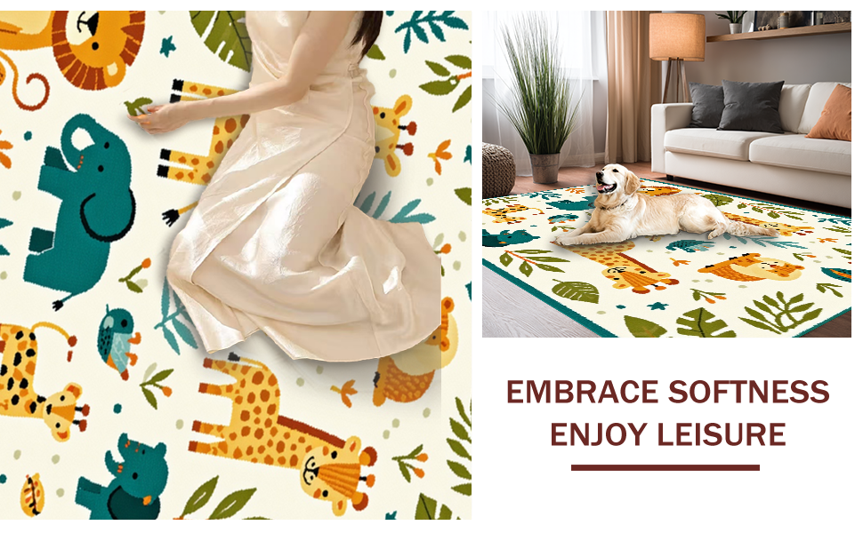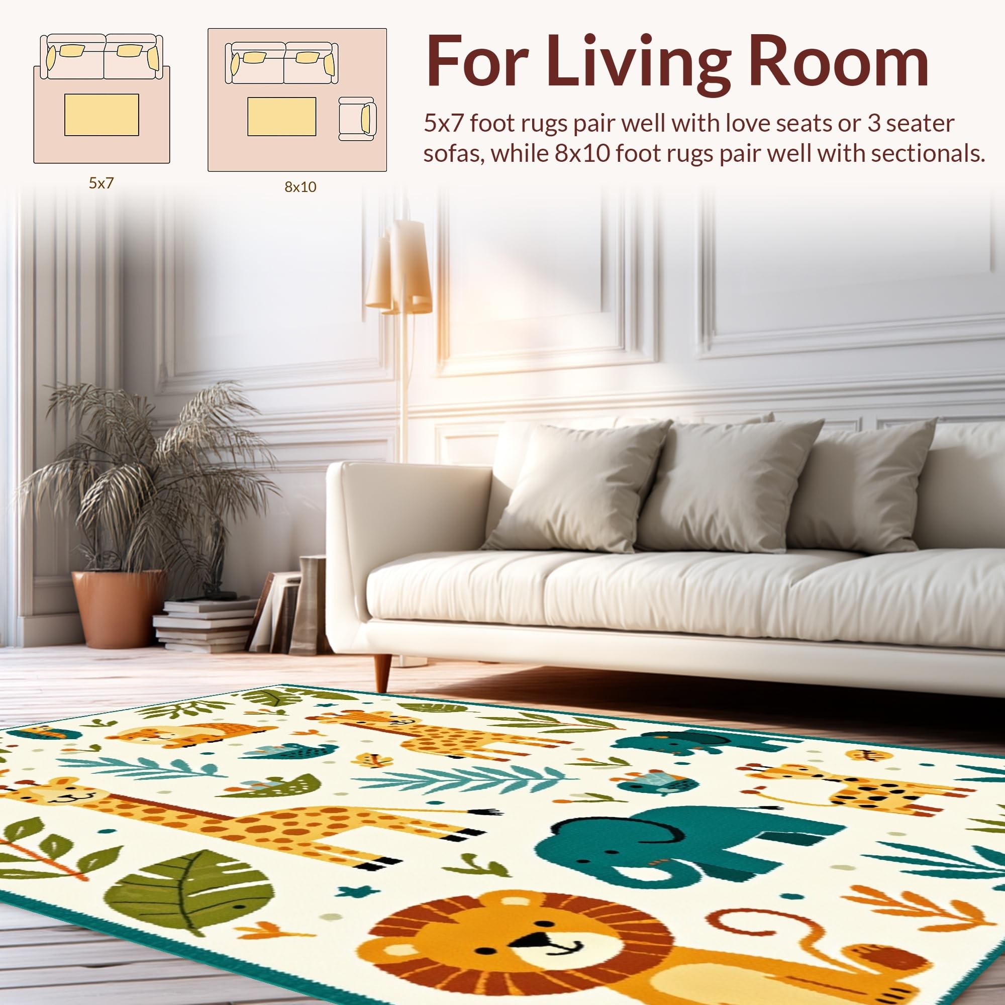 Ultra Soft Area Rug, Non Slip, Stain Resistant, Washable Area Rugs for Living Room, Bedroom, Bright Nature Motifs with Warm Hues(Beige) Overview: