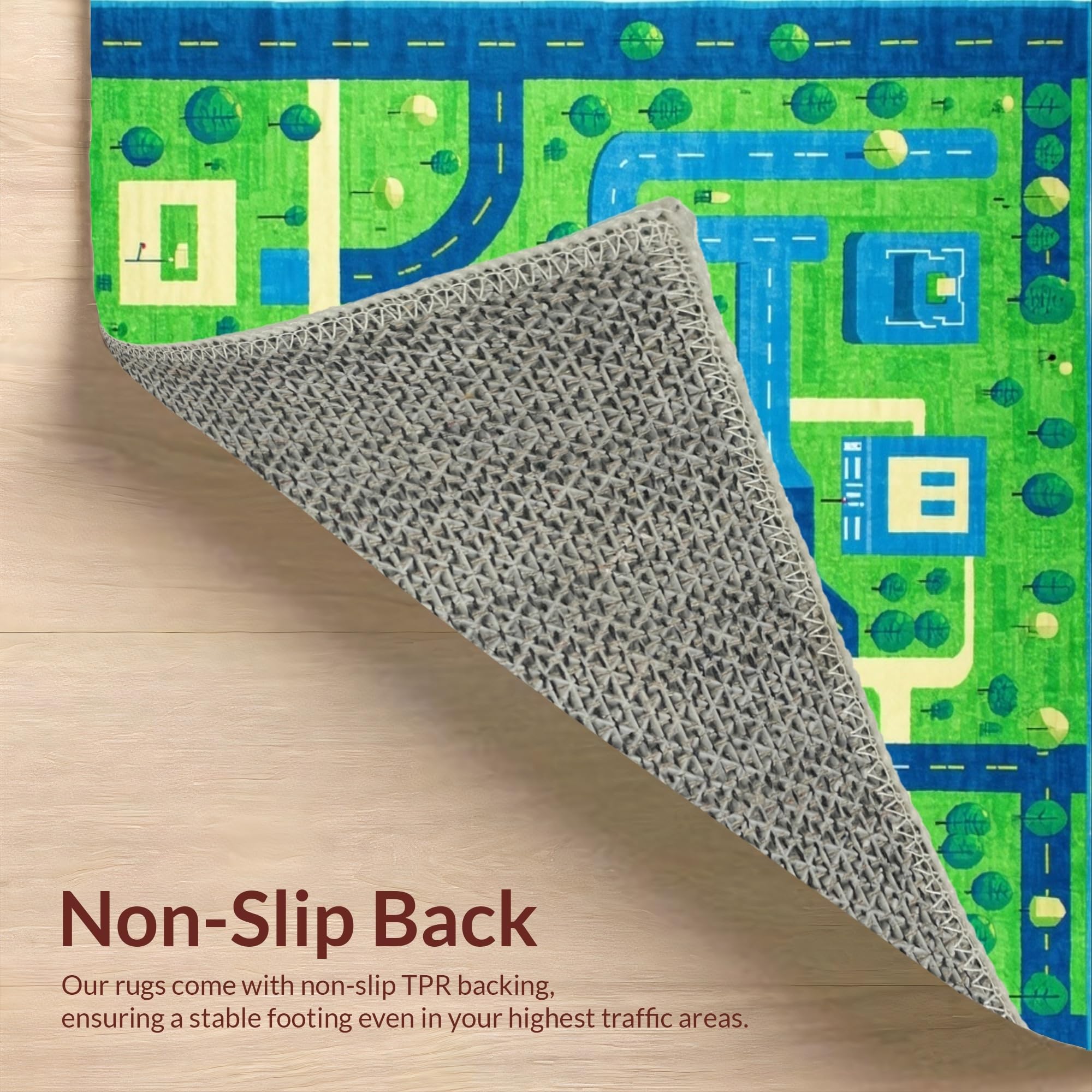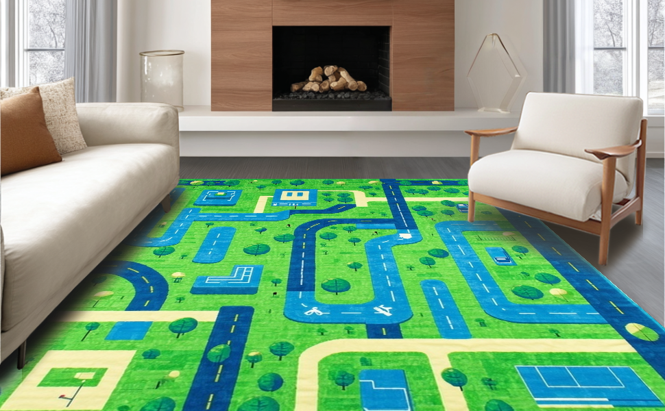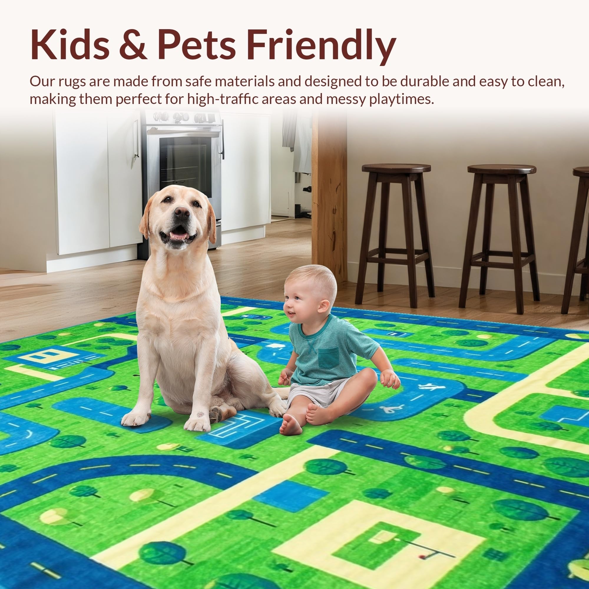 Ultra Soft Area Rug, Non Slip, Stain Resistant, Washable Area Rugs for Living Room, Bedroom, Bright Playful Interactive City Map(Green) Overview: