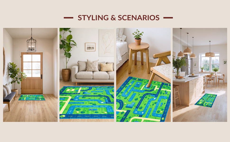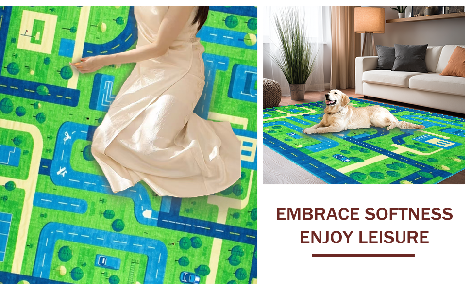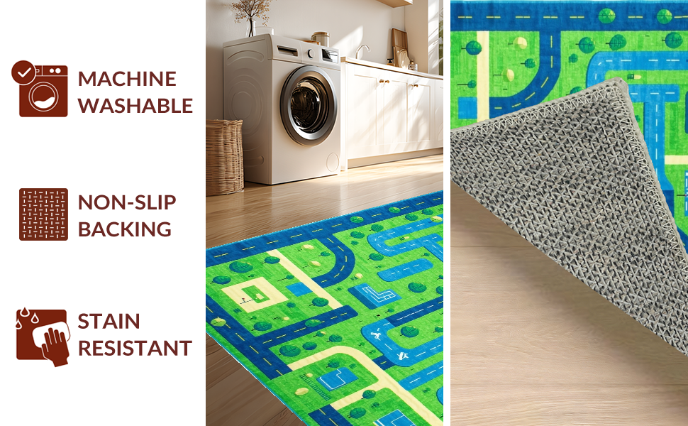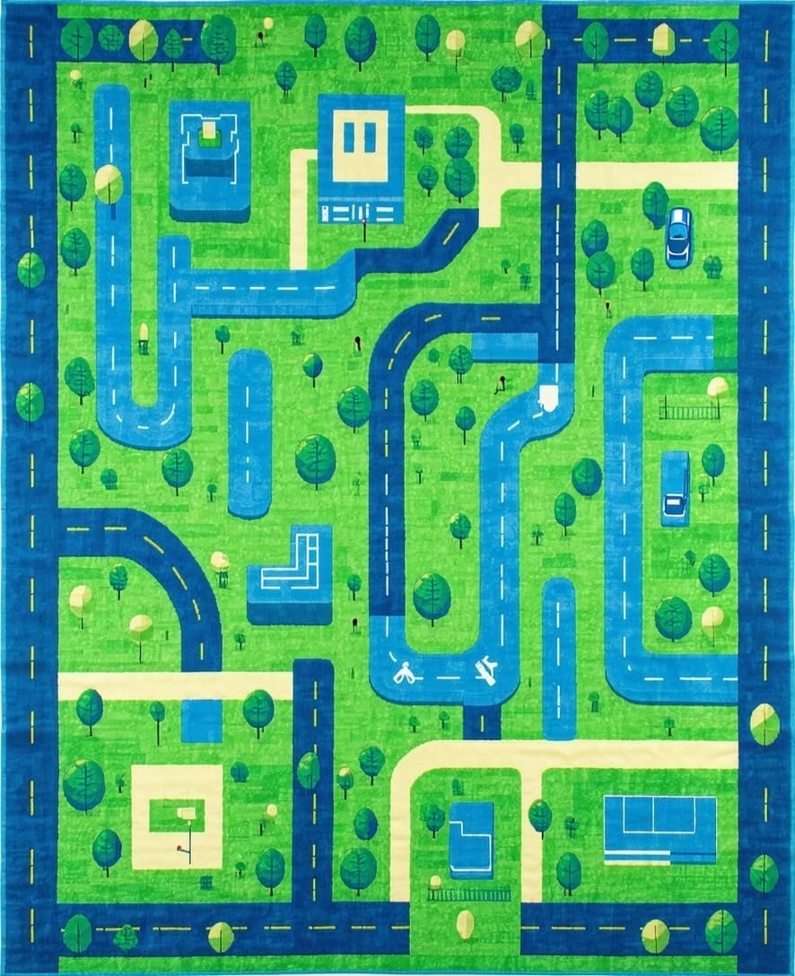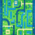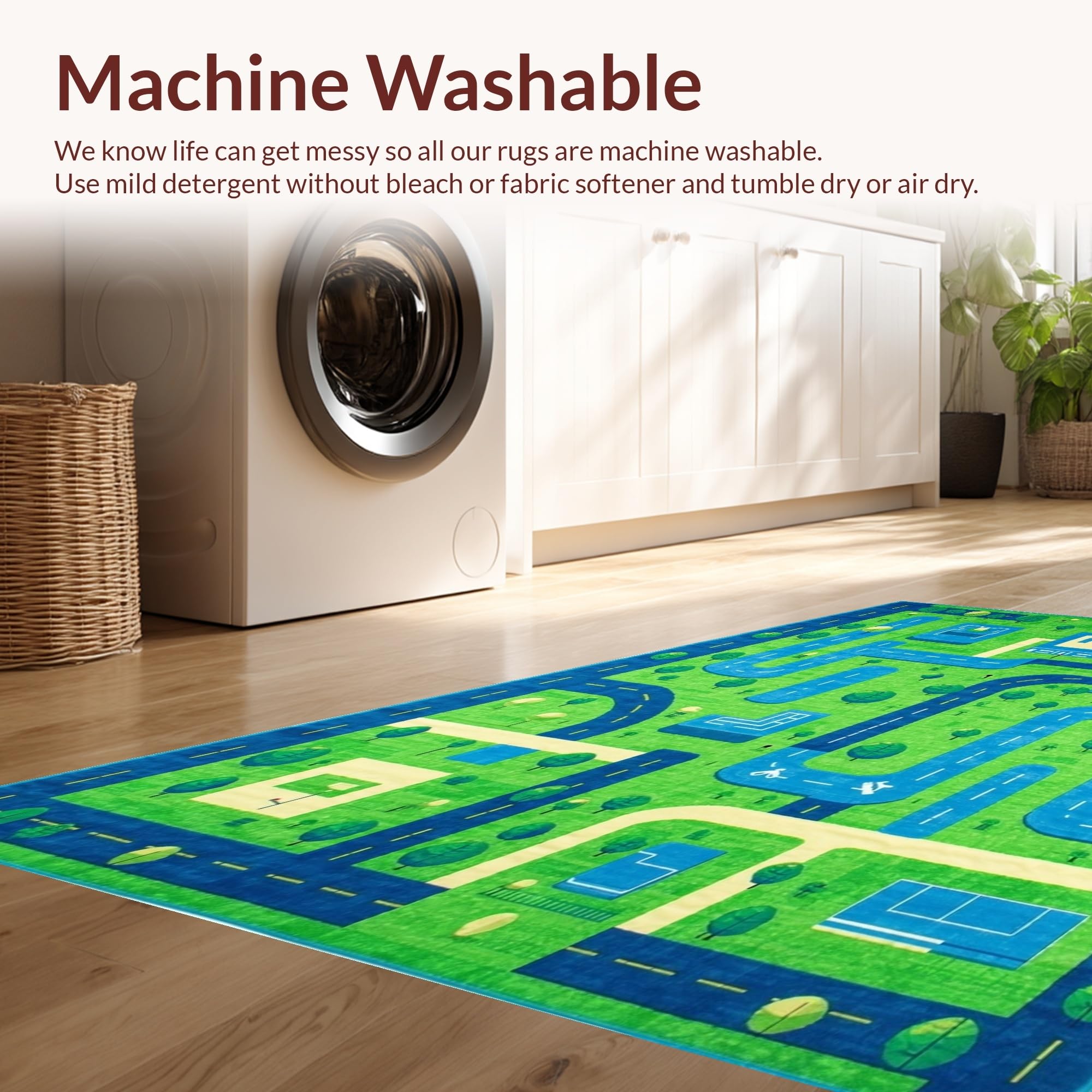 Ultra Soft Area Rug, Non Slip, Stain Resistant, Washable Area Rugs for Living Room, Bedroom, Bright Playful Interactive City Map(Green) Overview: