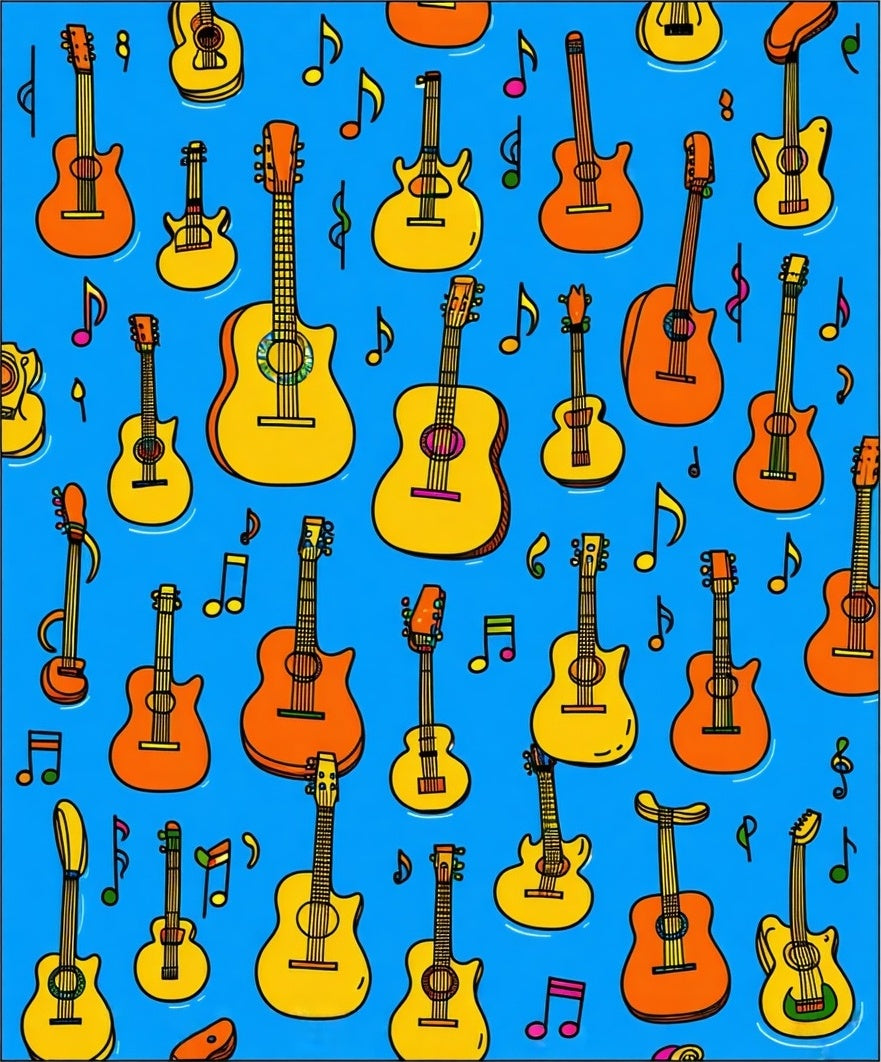 Flatwoven High Traffic Area Rug, Bright Playroom Guitar Illustration, Non Slip, Stain Resistant, Washable Area Rugs for Living Room, Bedroom (Blue) Overview: