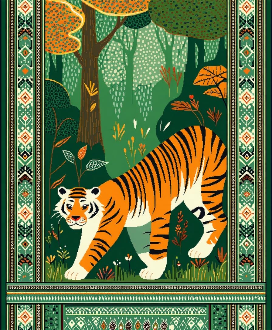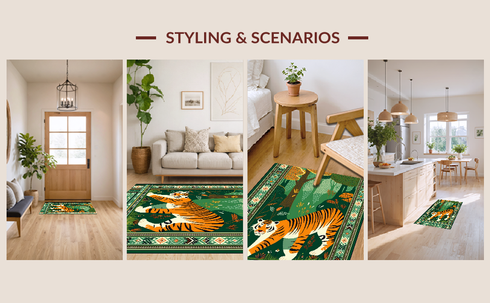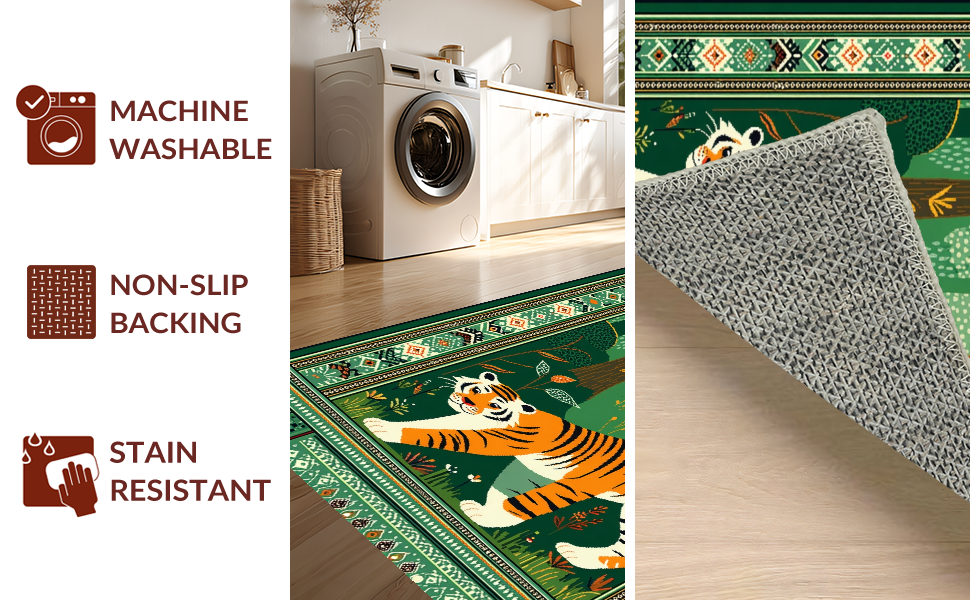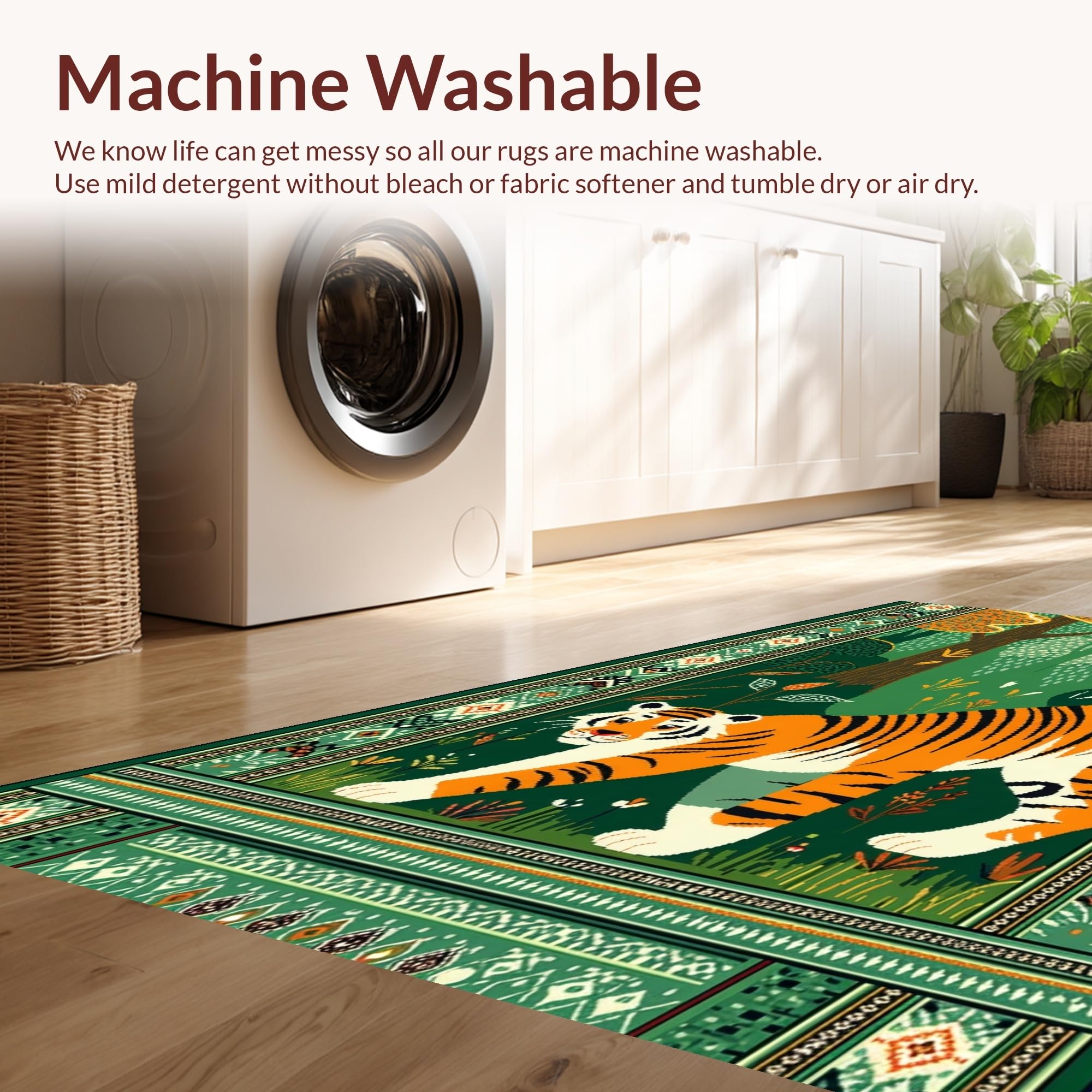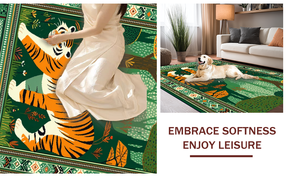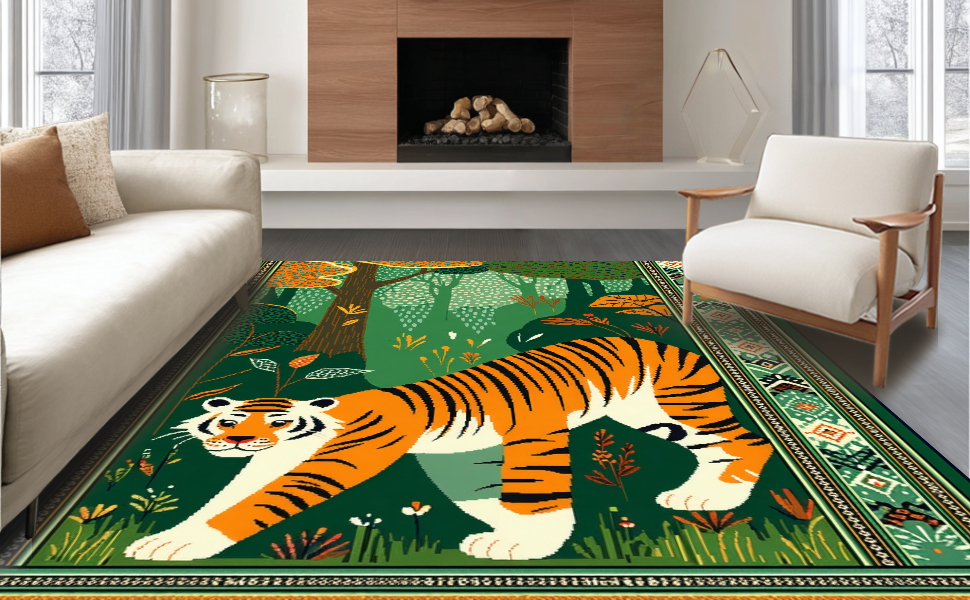 Ultra Soft Area Rug, Non Slip, Stain Resistant, Washable Area Rugs for Living Room, Bedroom, Bright Quirky Tiger Graphic(Green) Overview: