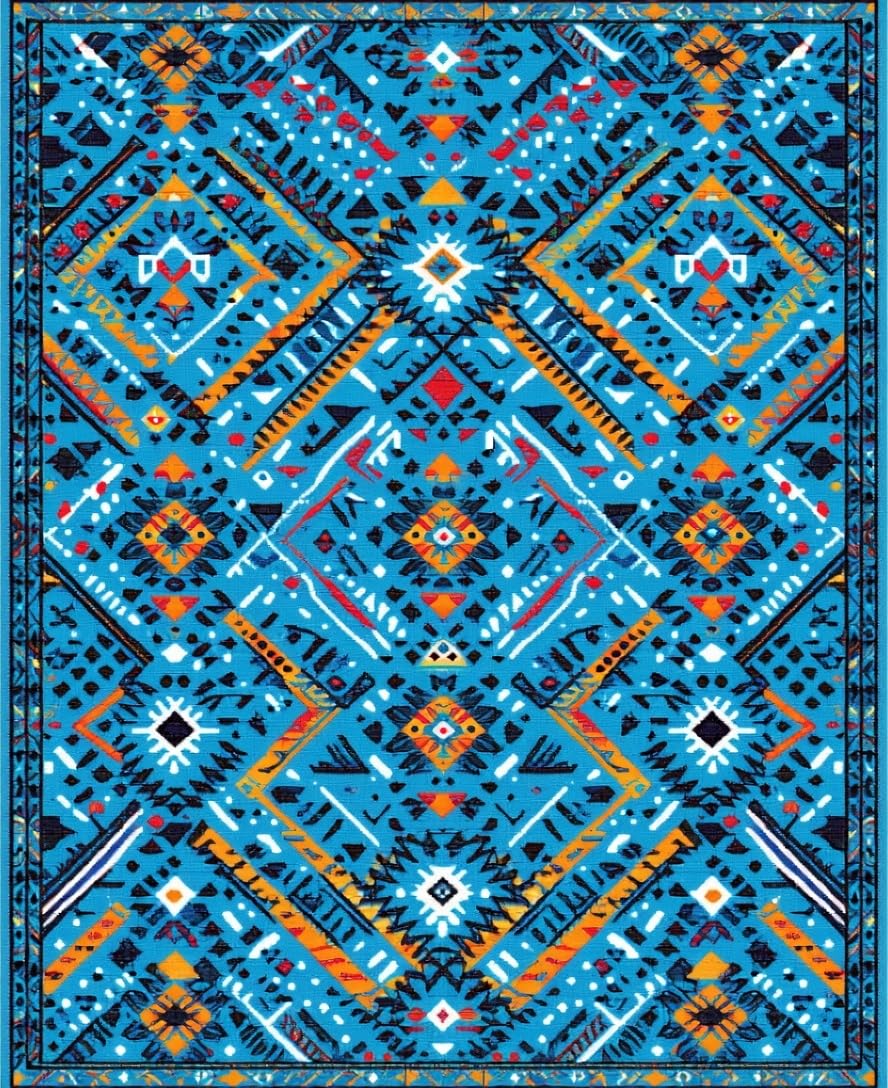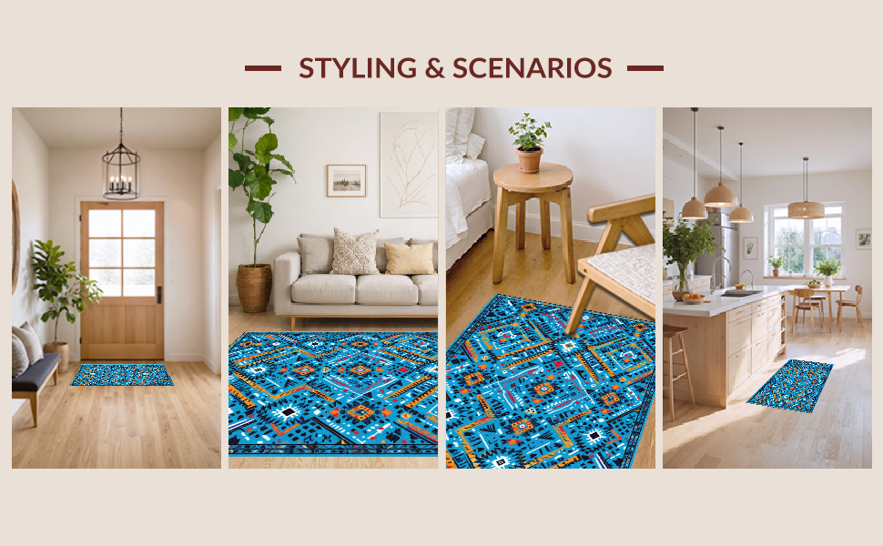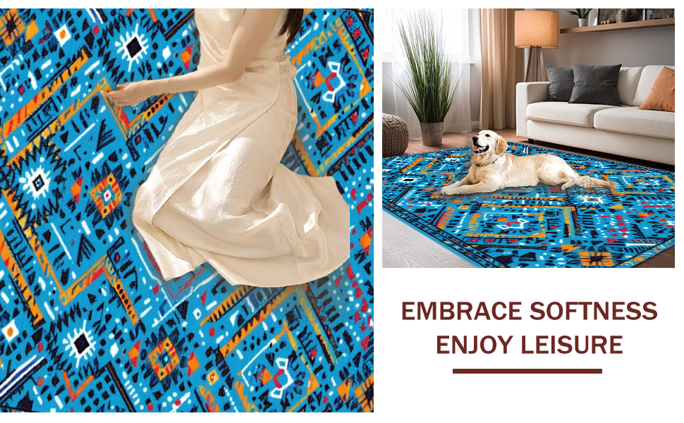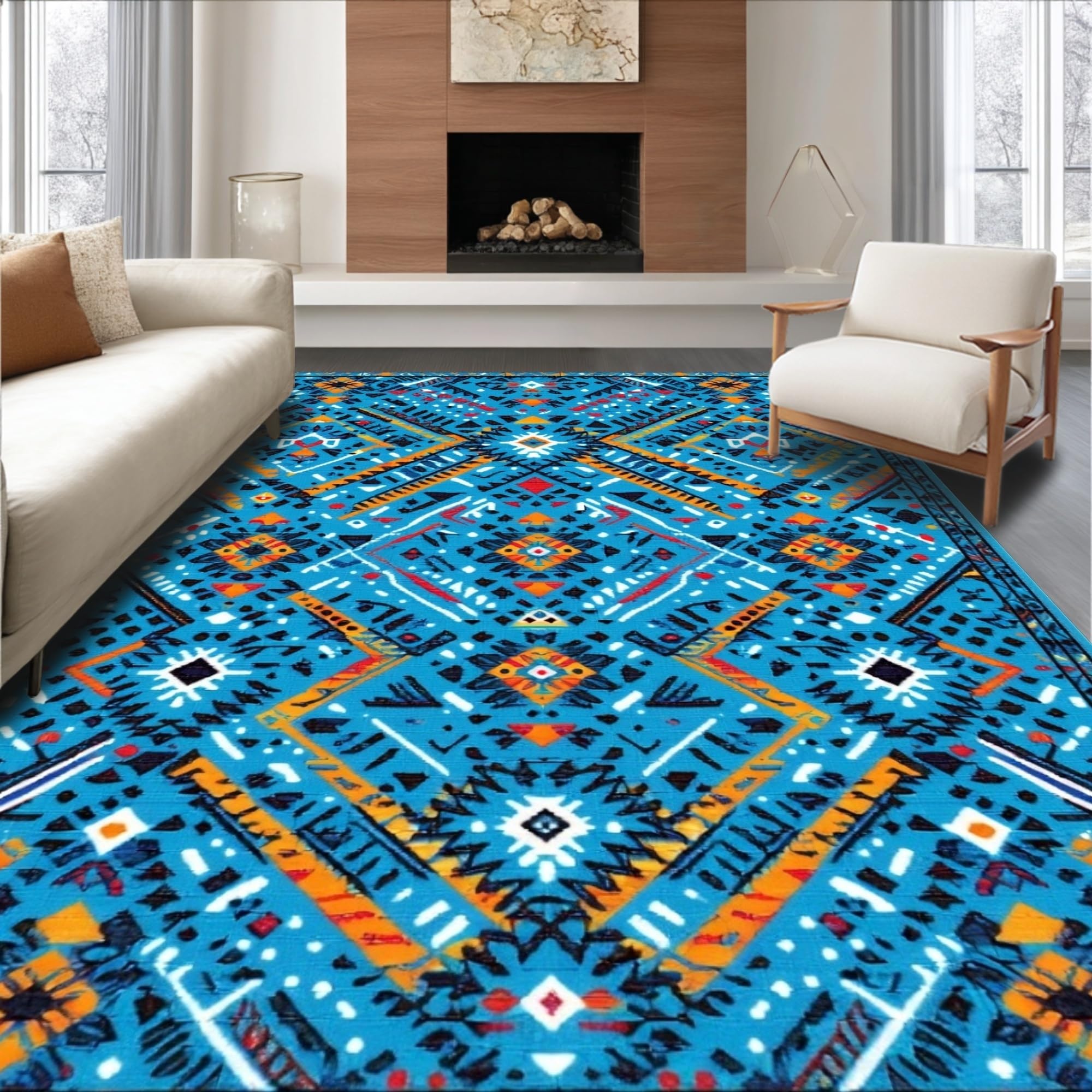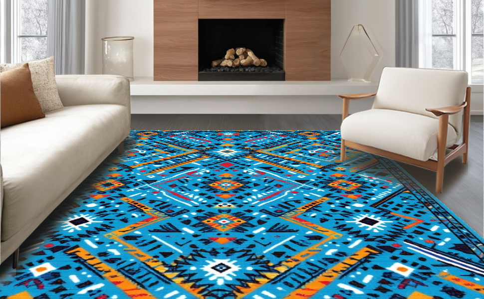Ultra Soft Area Rug, Non Slip, Stain Resistant, Washable Area Rugs for Living Room, Bedroom, Bright Retro Lattice Composition(Blue) Overview: