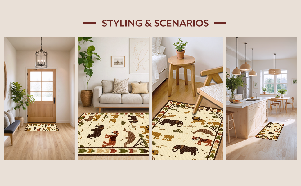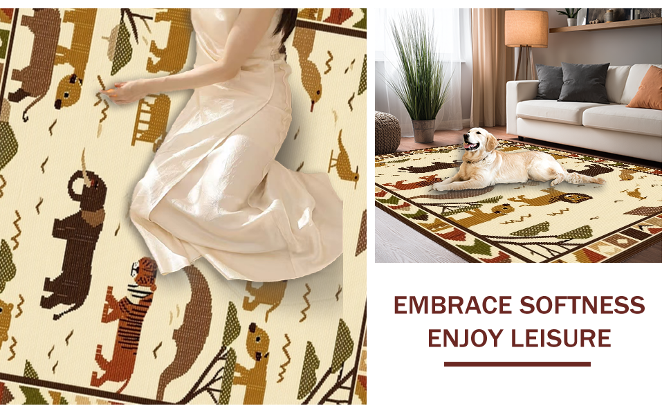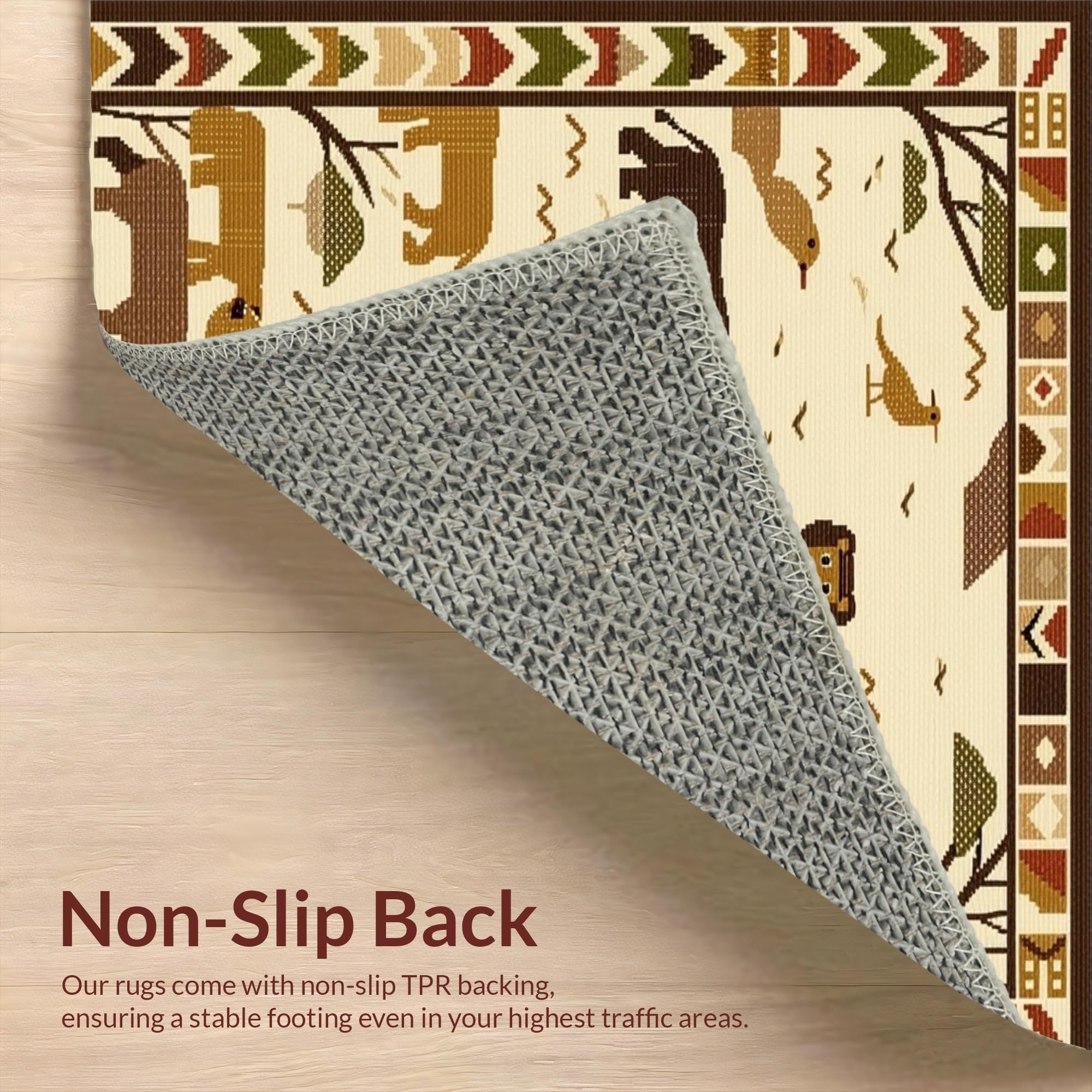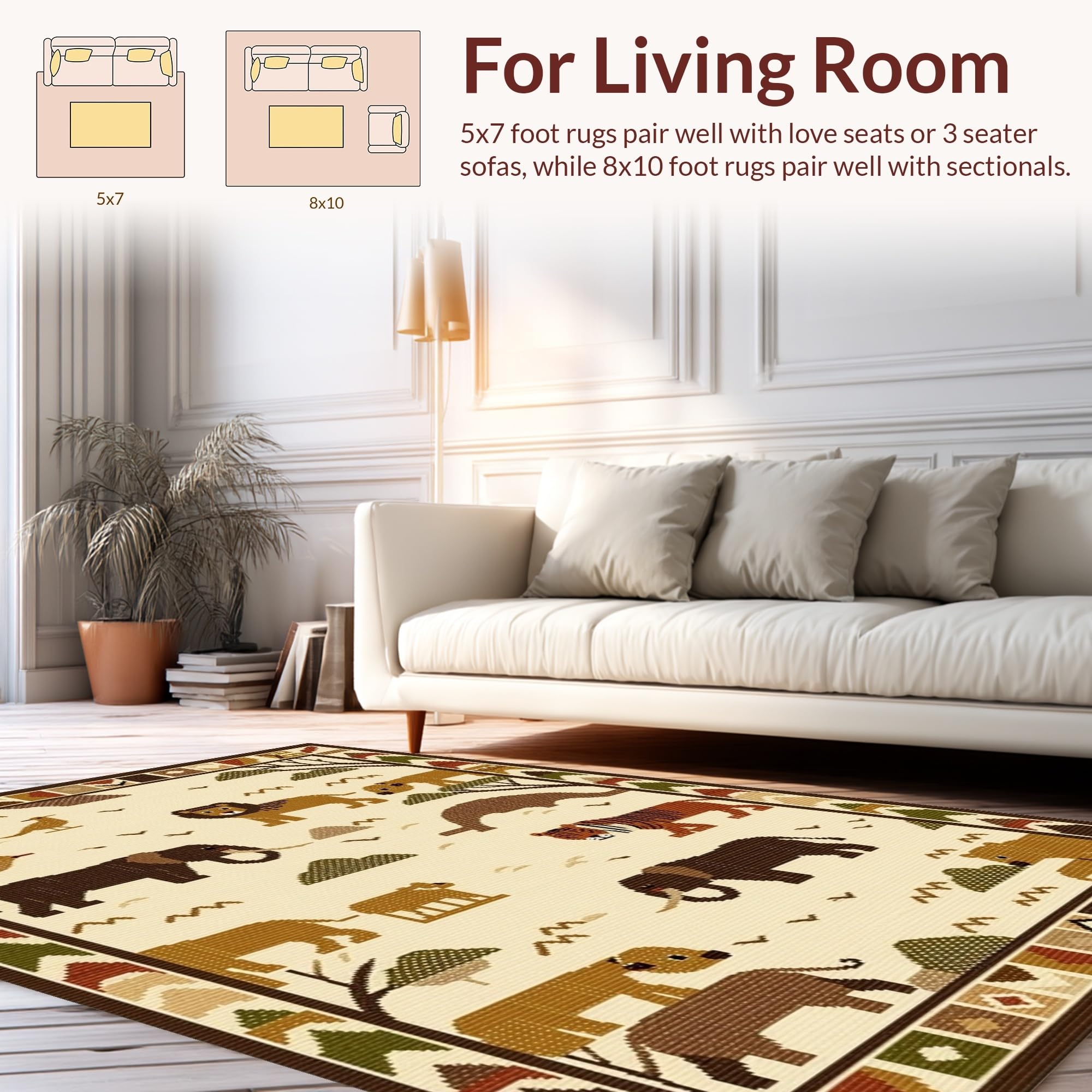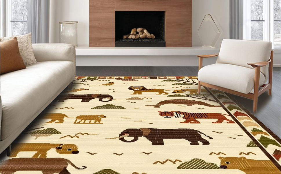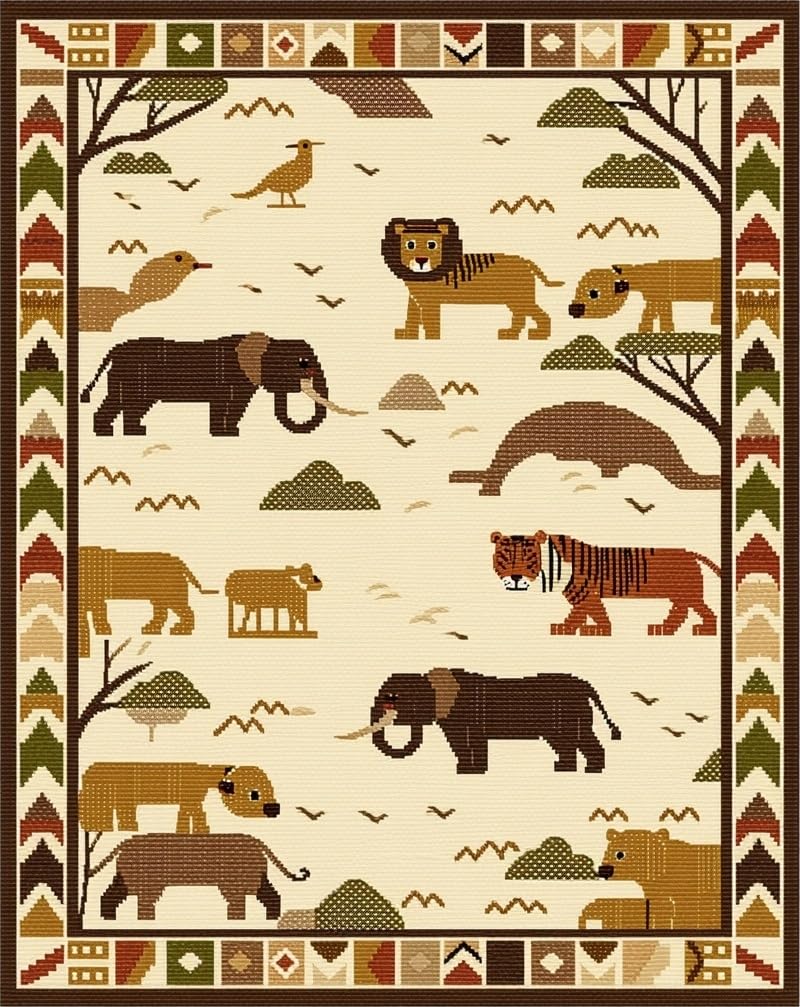 Ultra Soft Area Rug, Non Slip, Stain Resistant, Washable Area Rugs for Living Room, Bedroom, Bright Safari Creatures Fun Design(Beige) Overview: