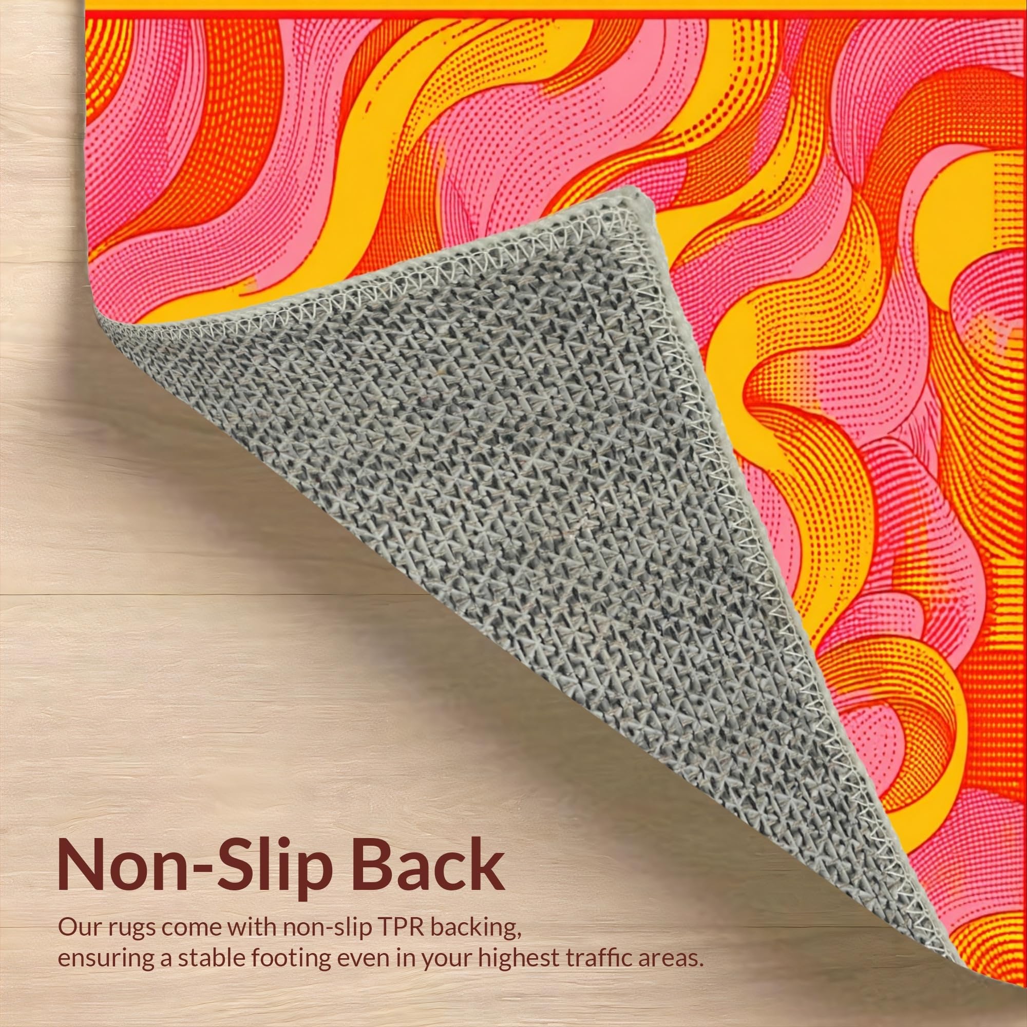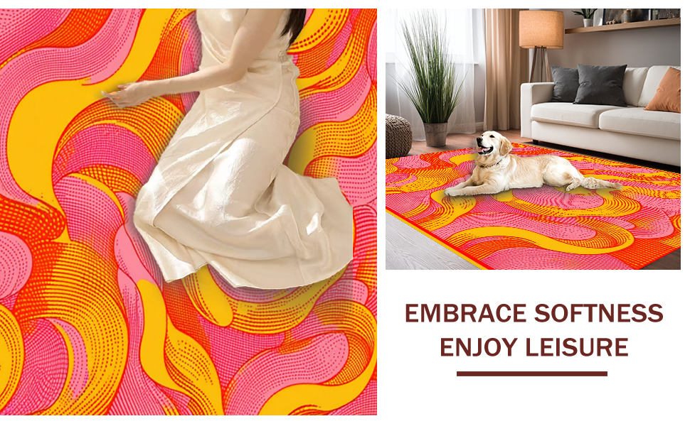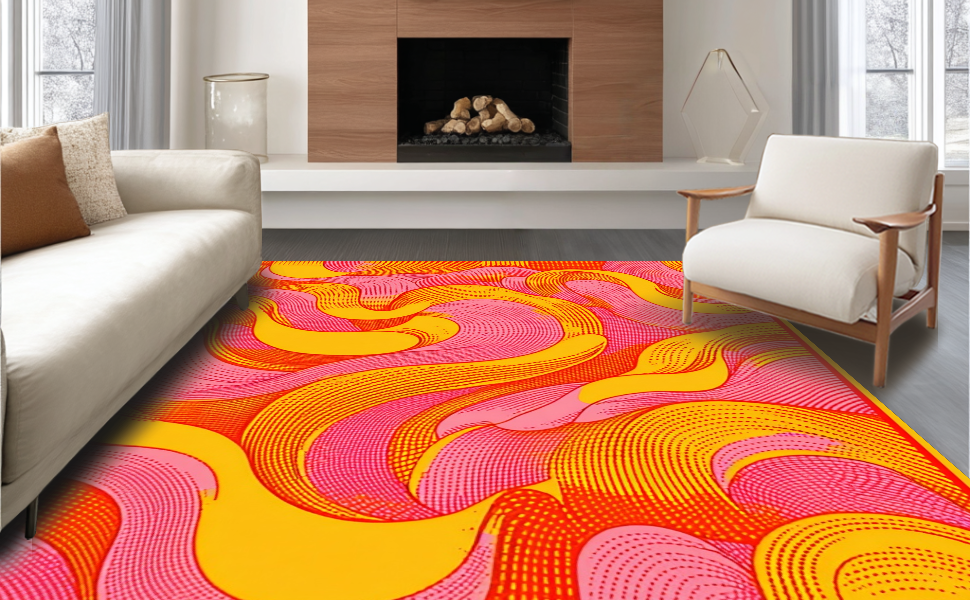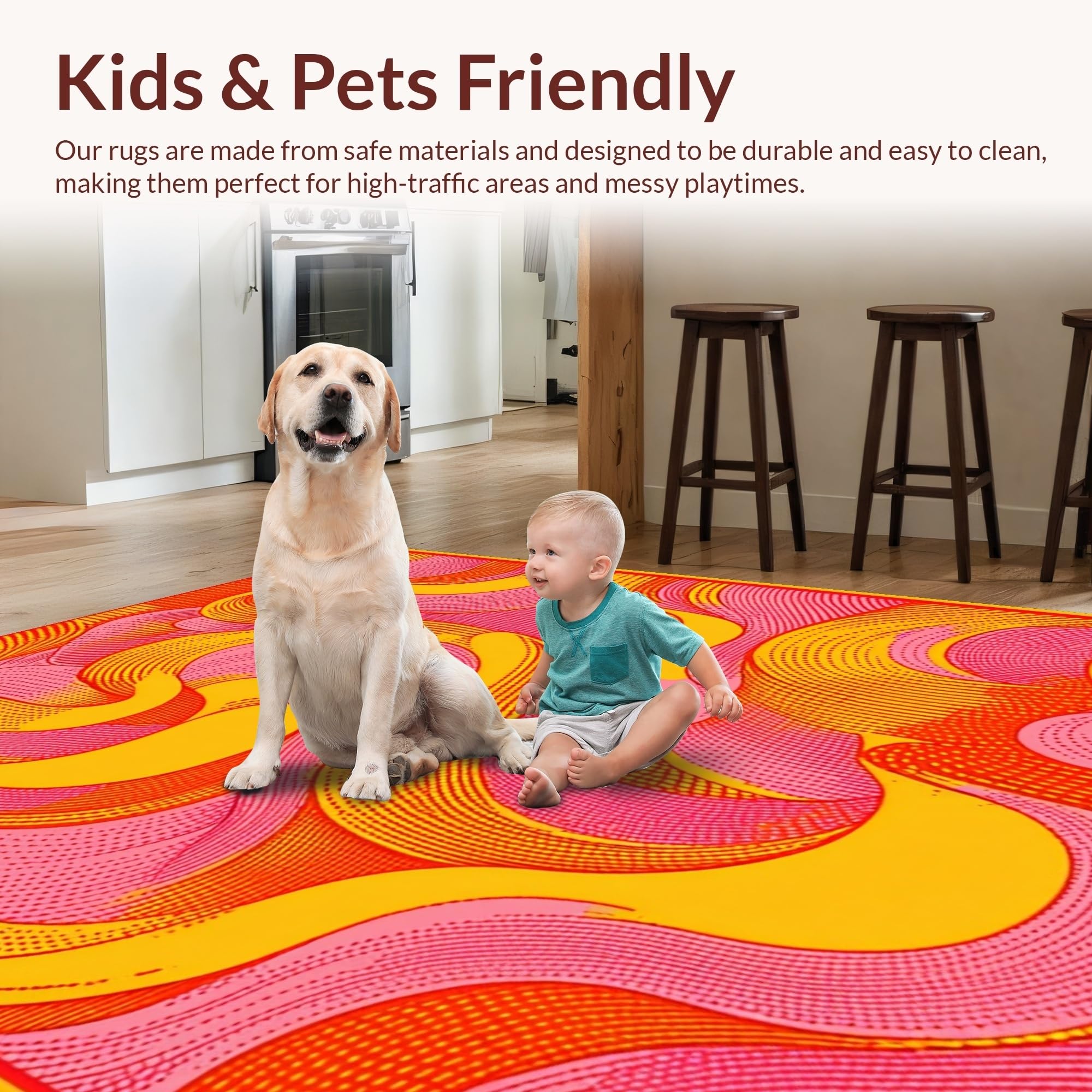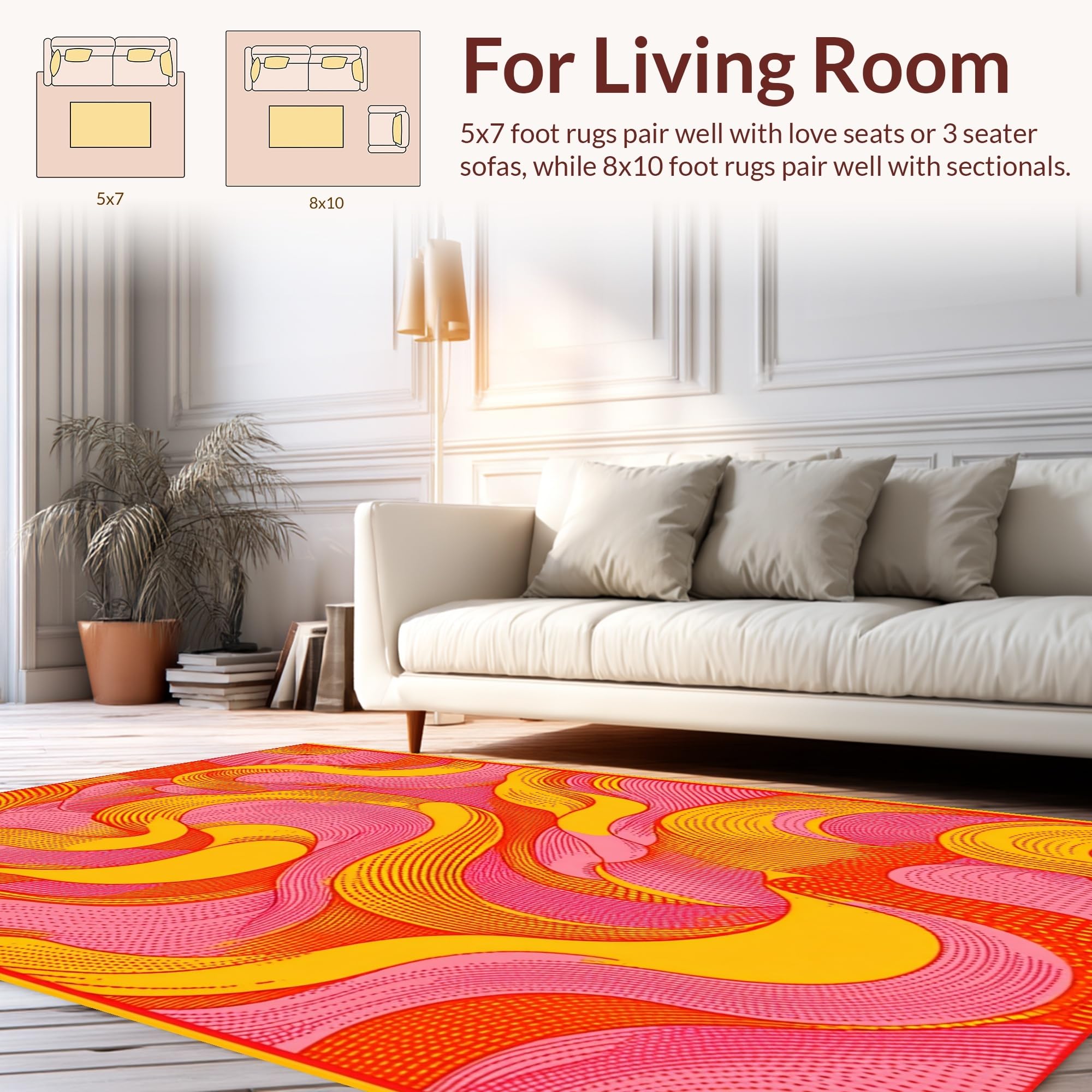 Ultra Soft Area Rug, Non Slip, Stain Resistant, Washable Area Rugs for Living Room, Bedroom, Bright Seventies Era Vibes(Pink) Overview: