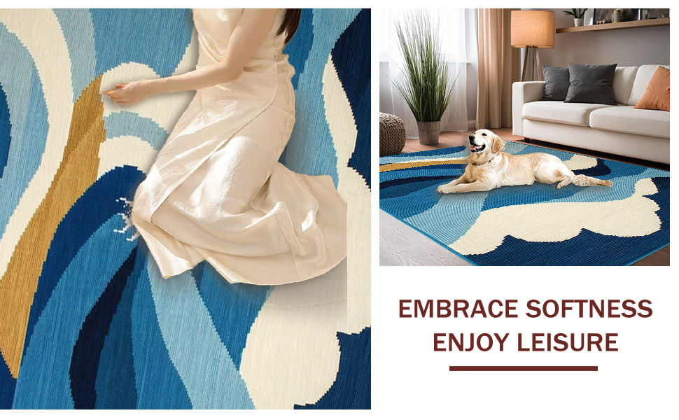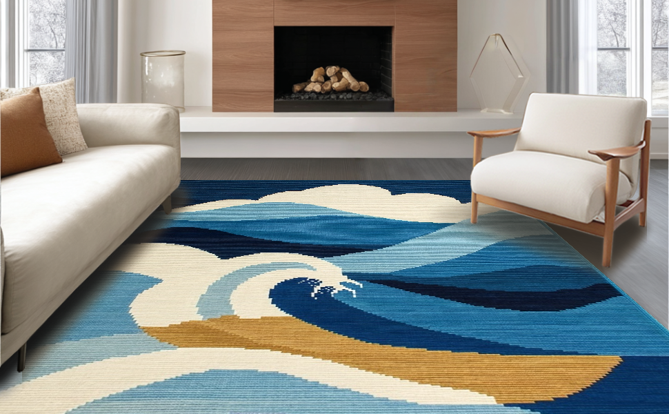 Ultra Soft Area Rug, Non Slip, Stain Resistant, Washable Area Rugs for Living Room, Bedroom, Bright Summer Nautical Style Mat(Blue) Overview: