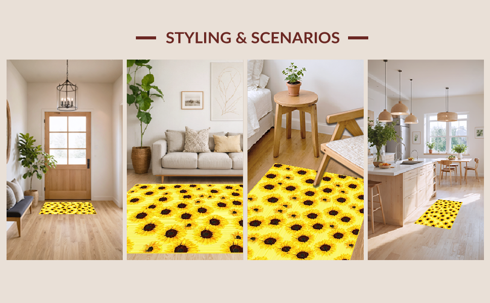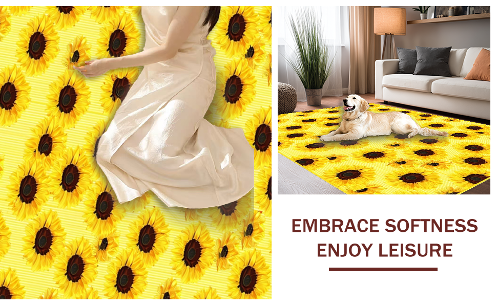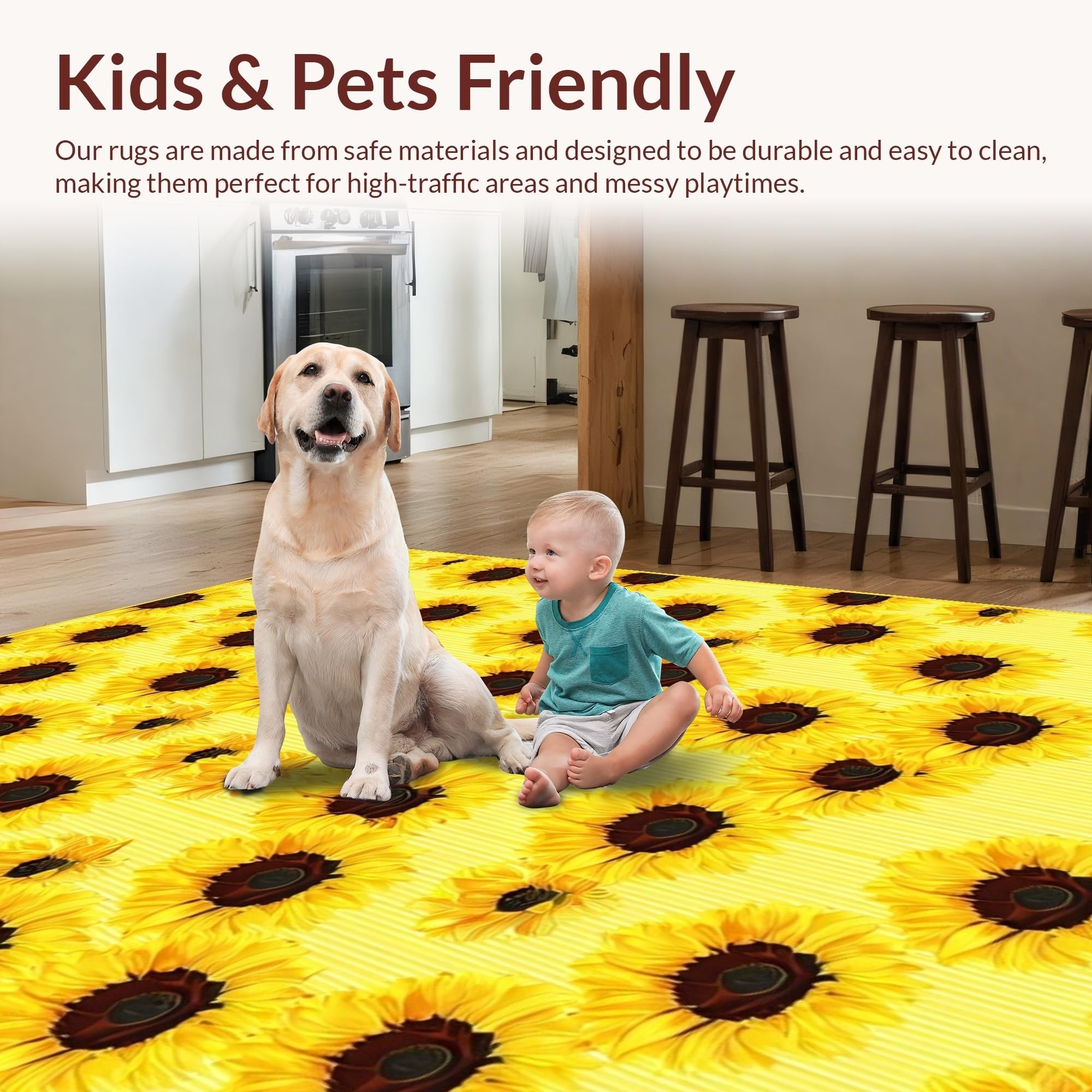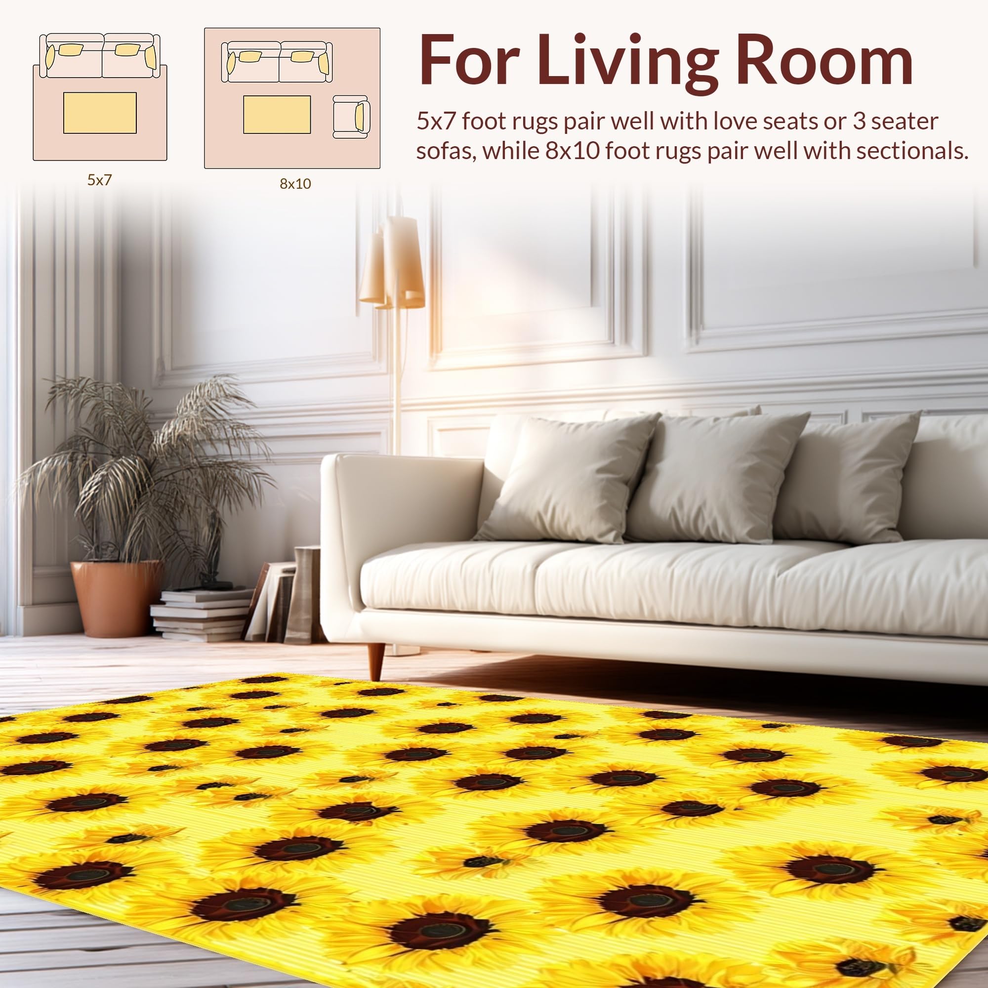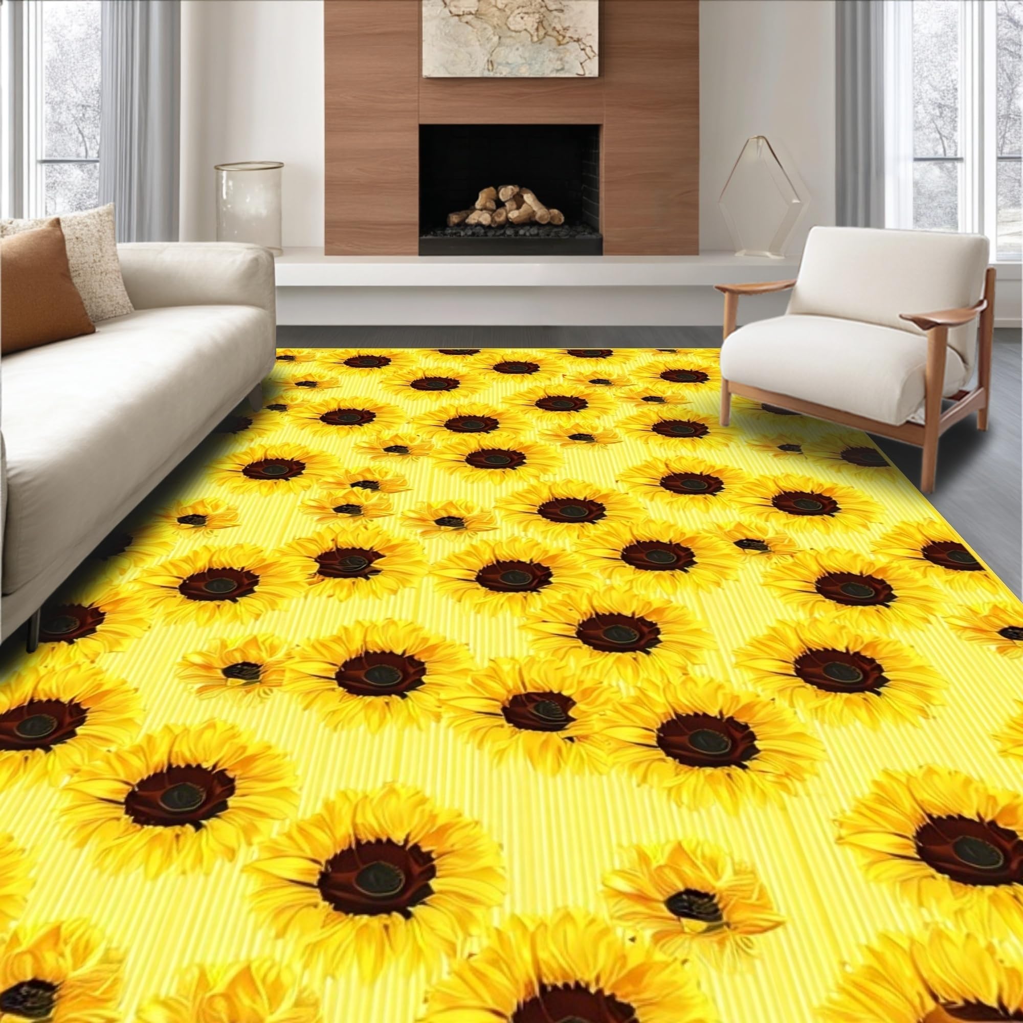 Ultra Soft Area Rug, Non Slip, Stain Resistant, Washable Area Rugs for Living Room, Bedroom, Bright Sunflower Patterned Decor(Yellow) Overview: