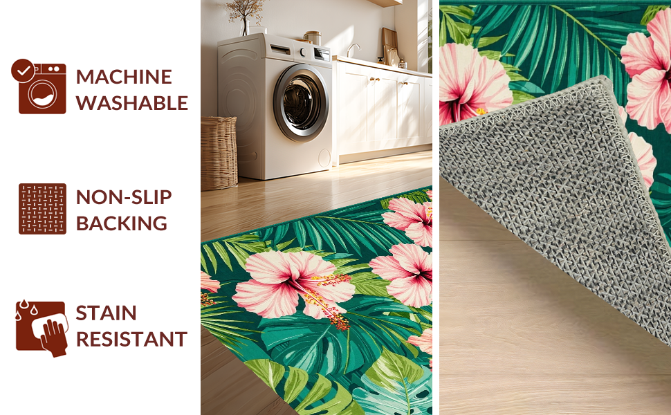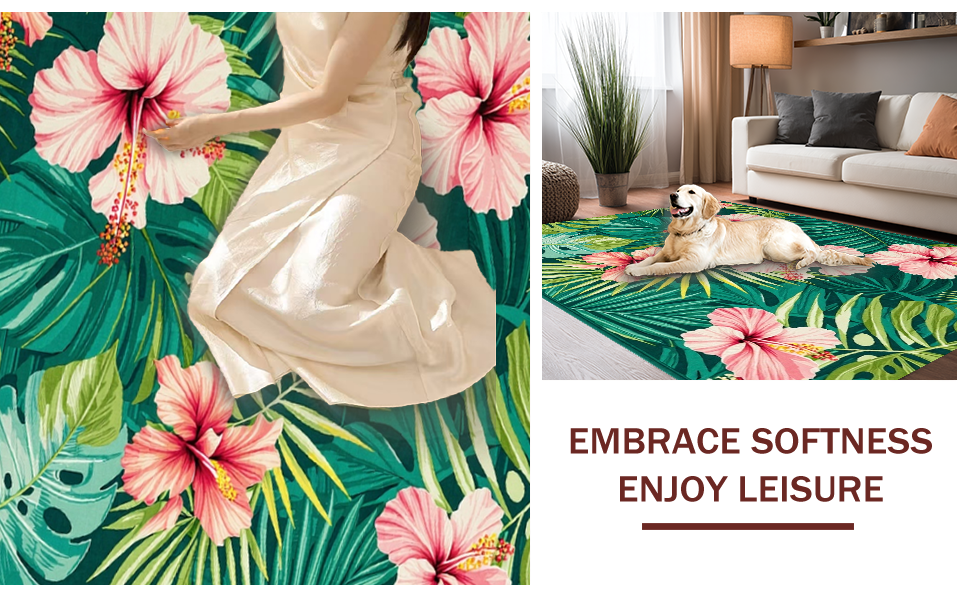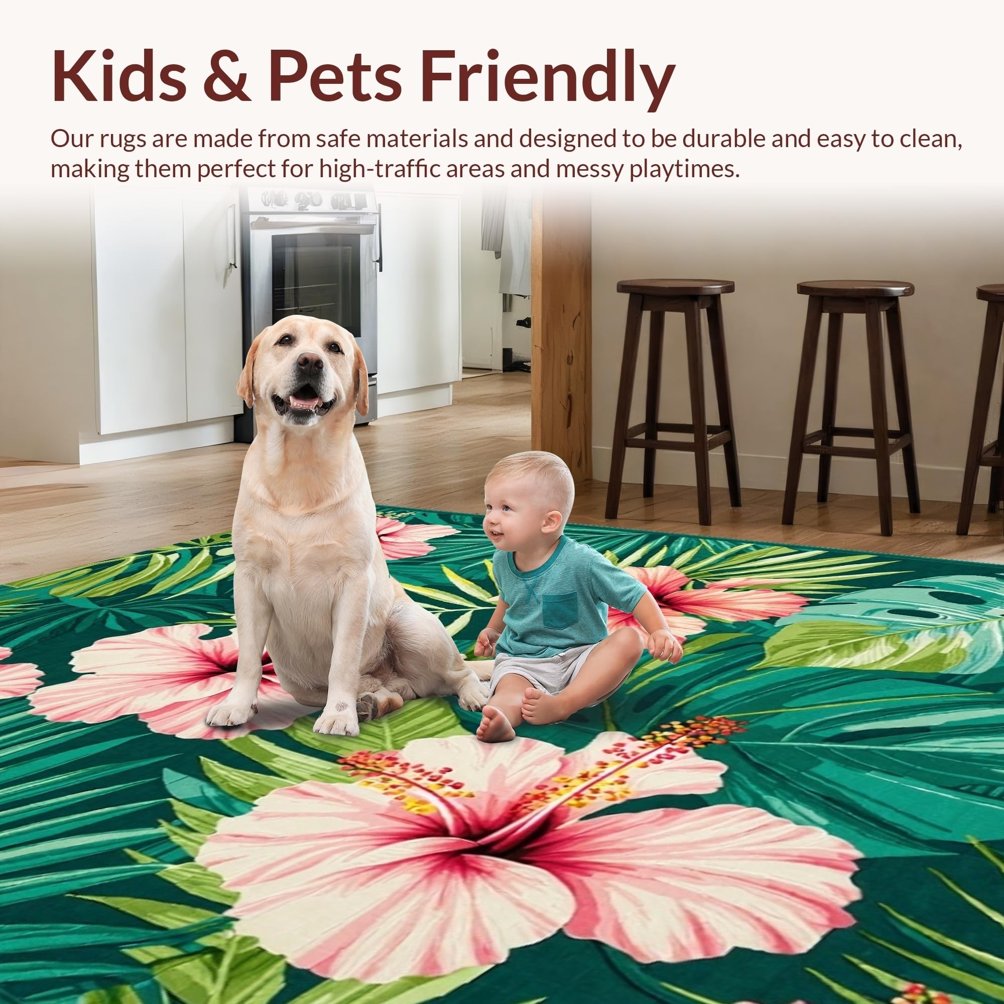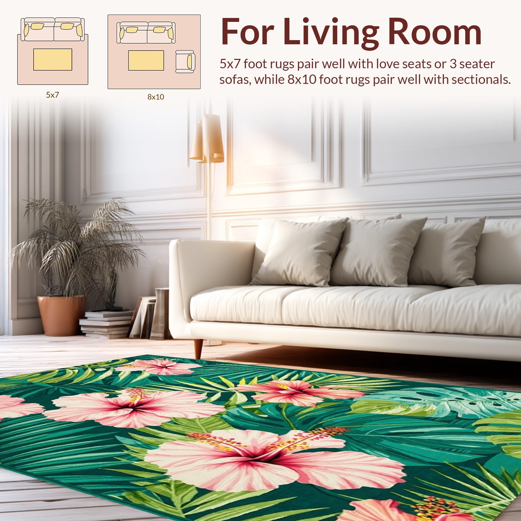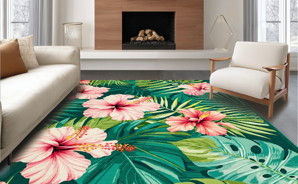 Ultra Soft Area Rug, Non Slip, Stain Resistant, Washable Area Rugs for Living Room, Bedroom, Bright Tropical Oasis Vibe(Green) Overview: