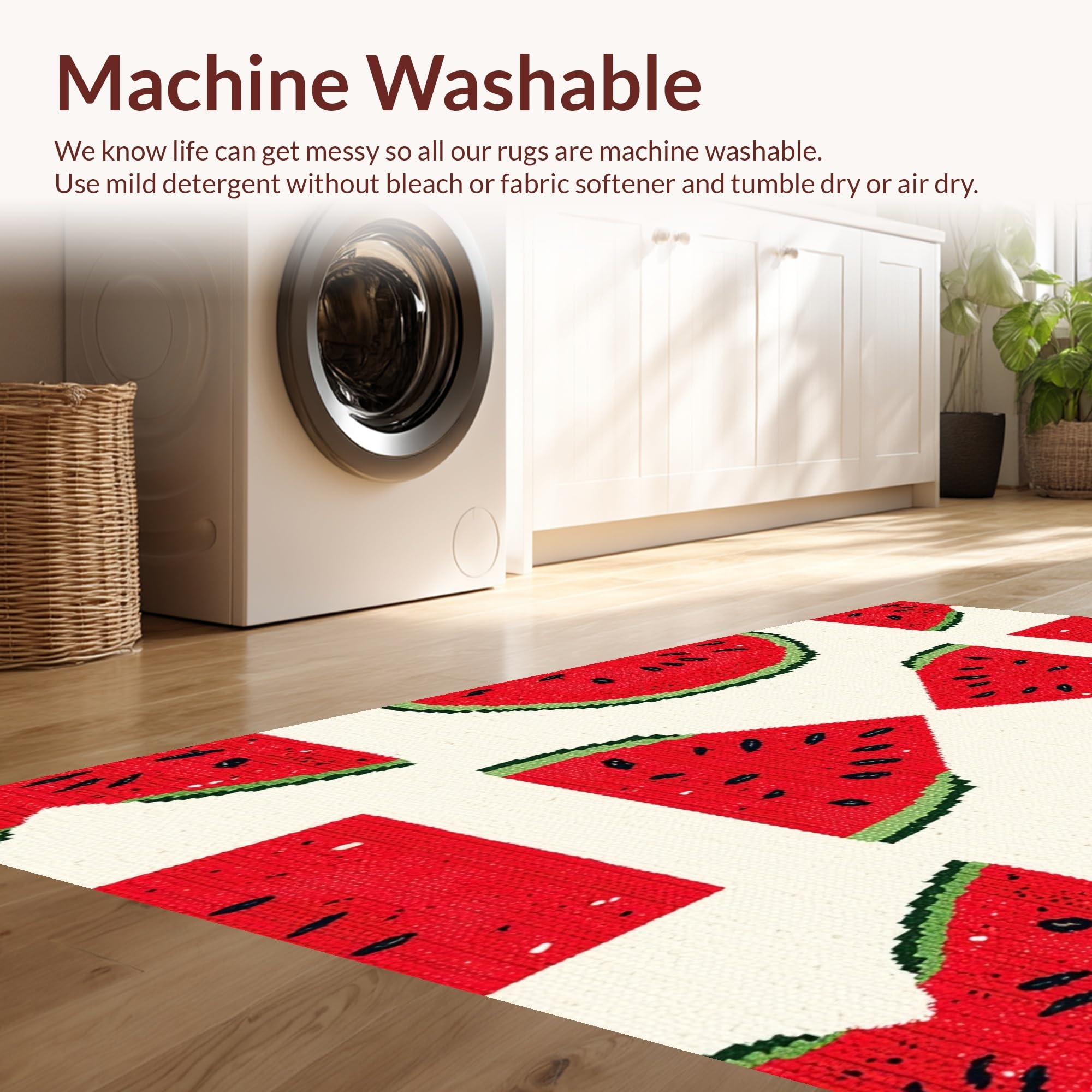 - Machine Washable: Our rugs can be easily thrown in the wash machine.