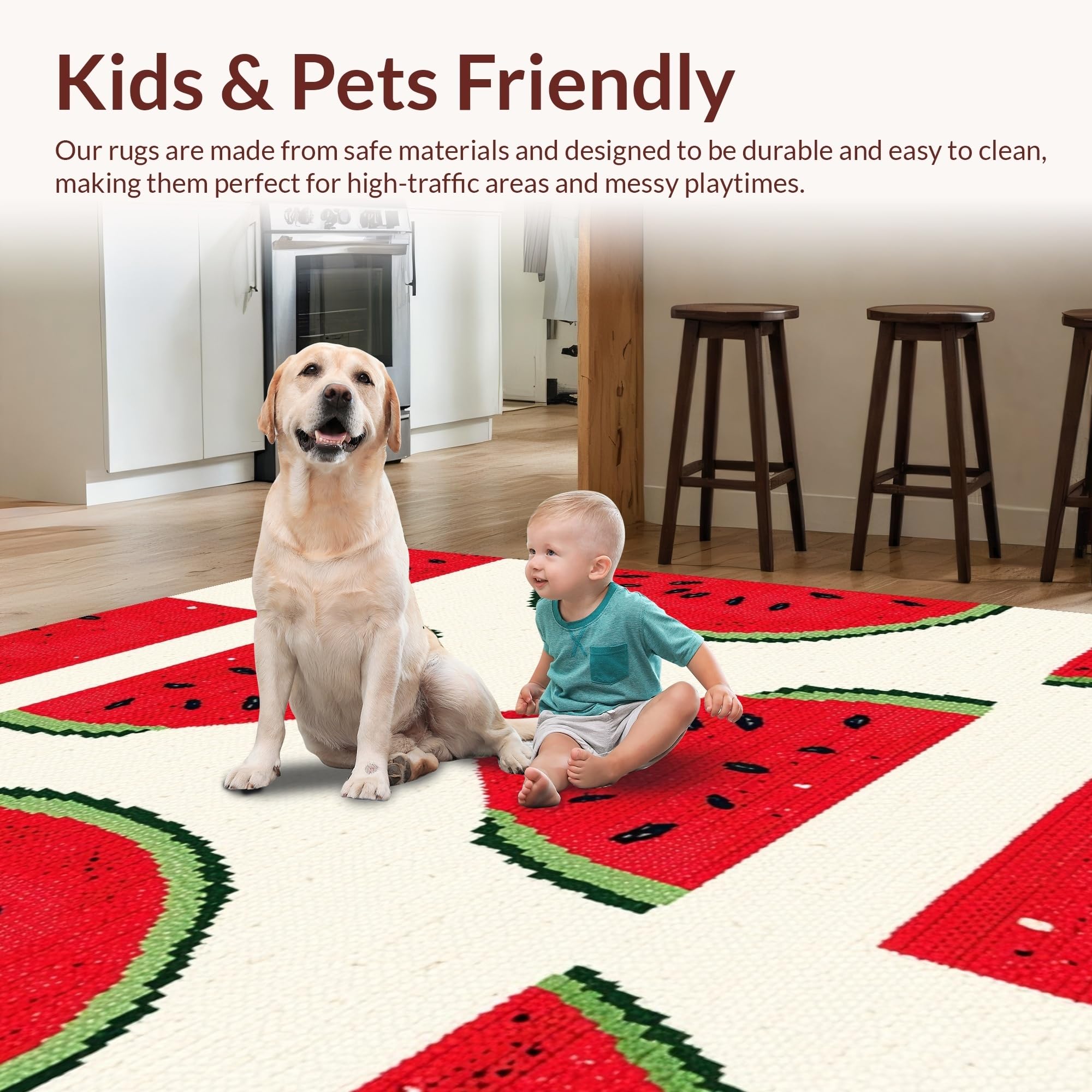 Ultra Soft Area Rug, Non Slip, Stain Resistant, Washable Area Rugs for Living Room, Bedroom, Bright Whimsical Design Element(Red) Overview: