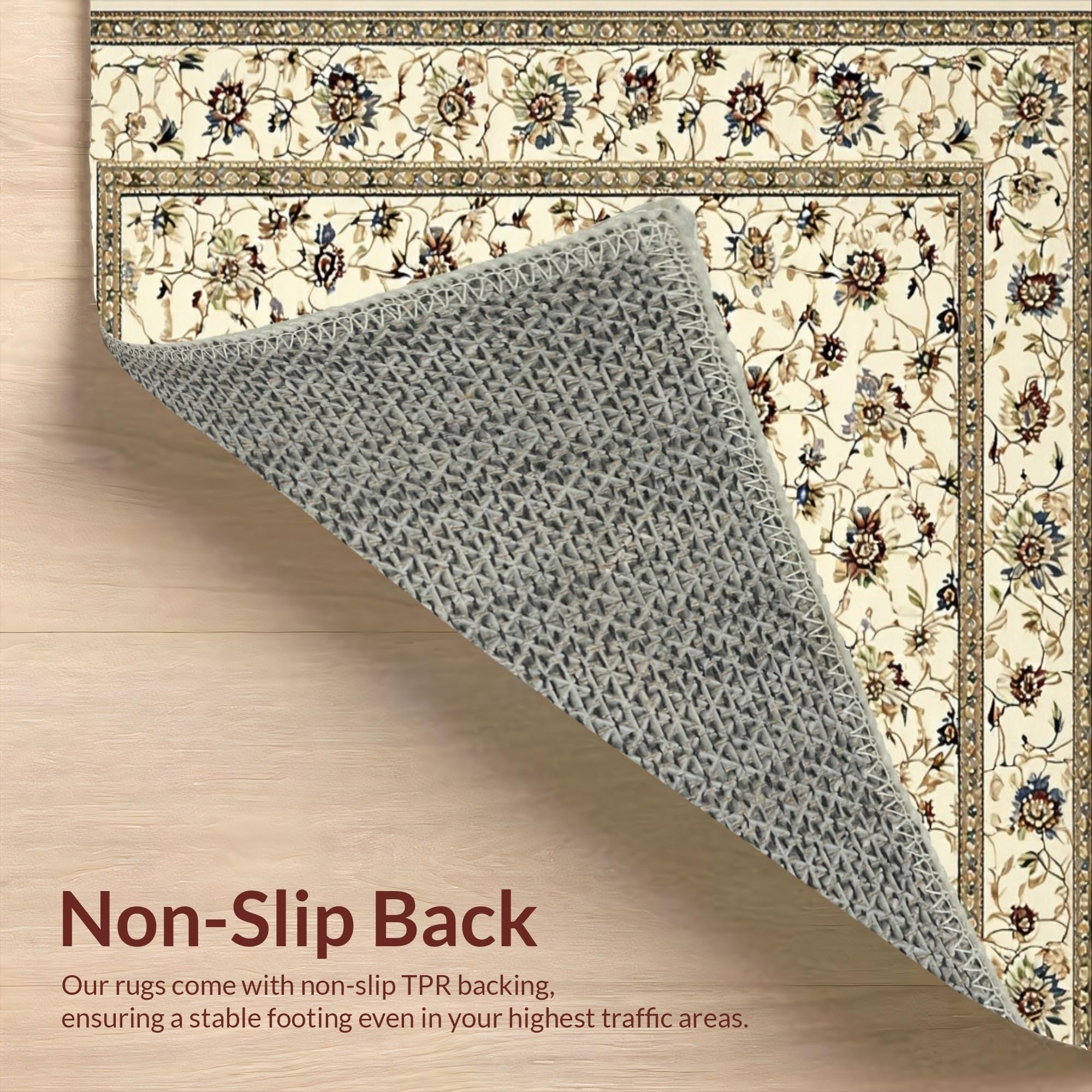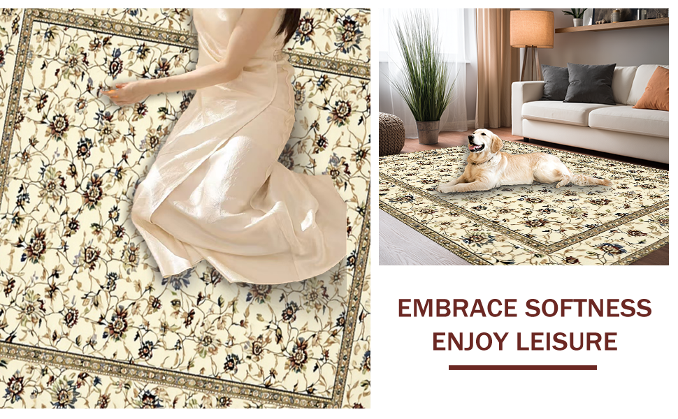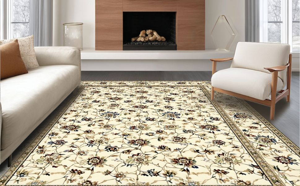 Ultra Soft Area Rug, Non Slip, Stain Resistant, Washable Area Rugs for Living Room, Bedroom, Bright White Petal Accents(Beige) Overview: