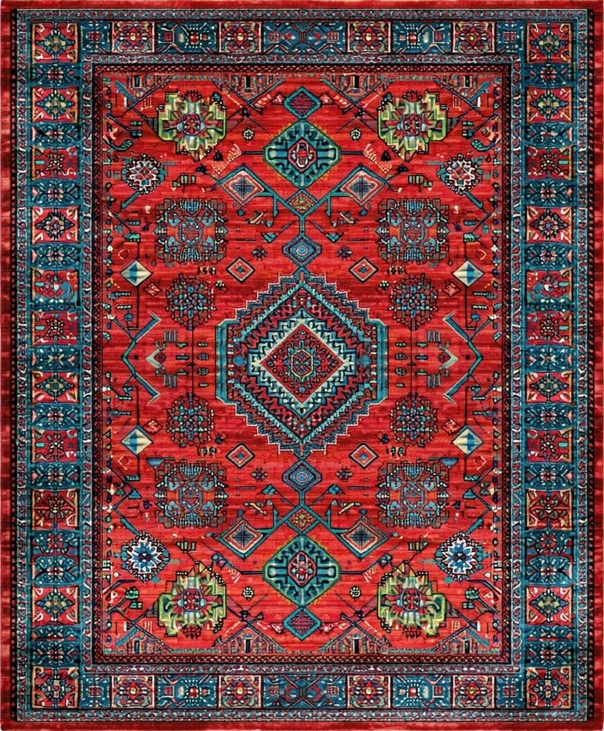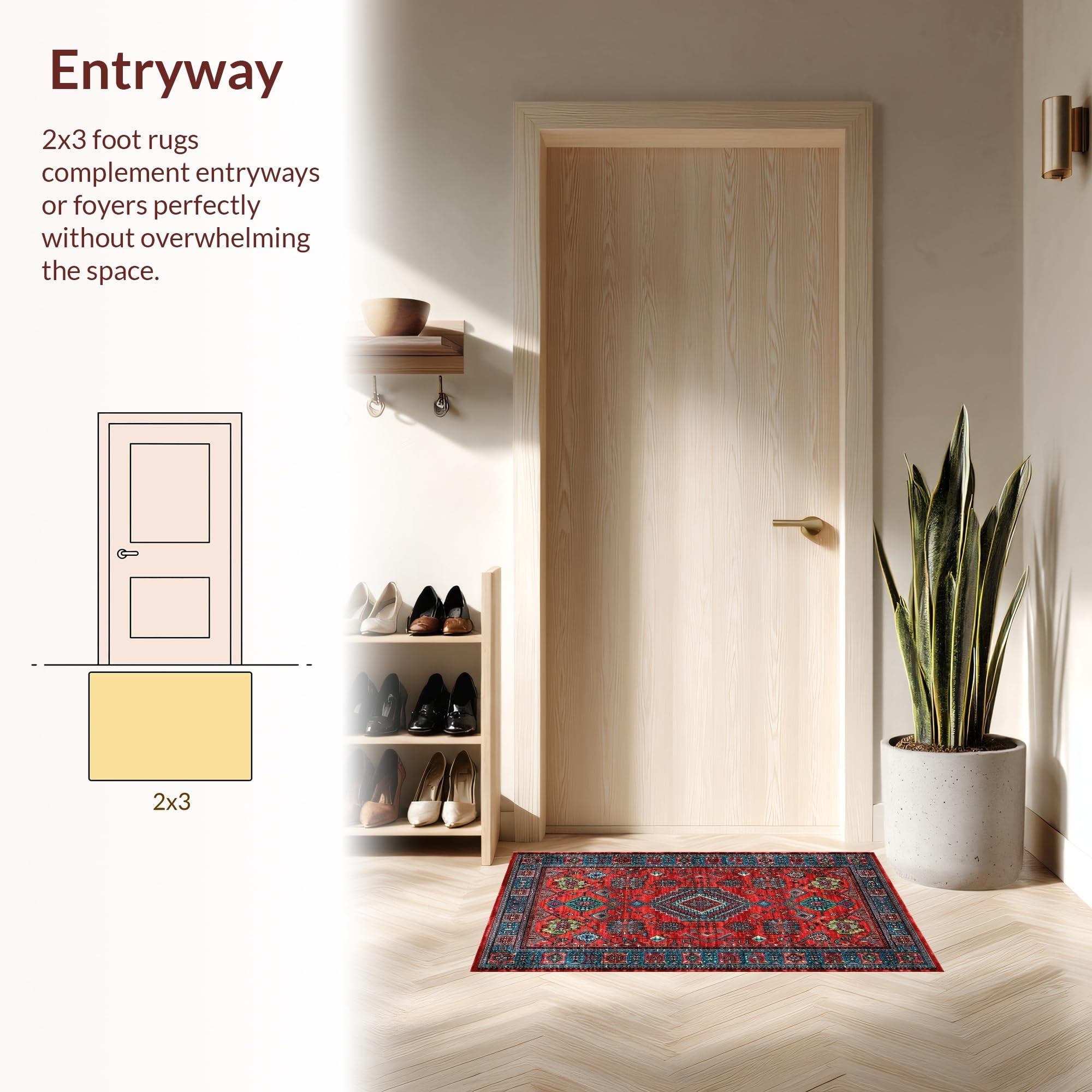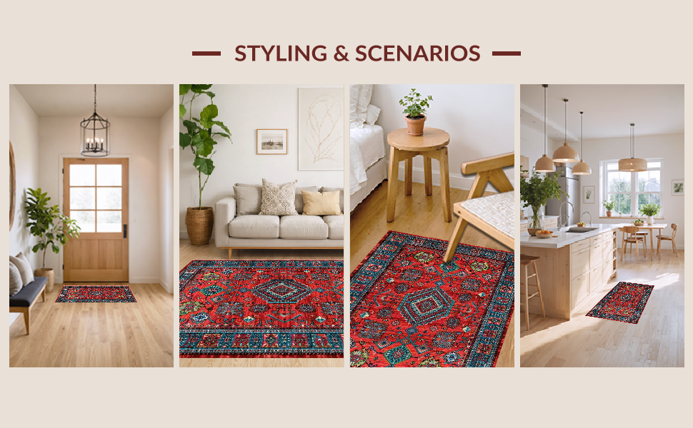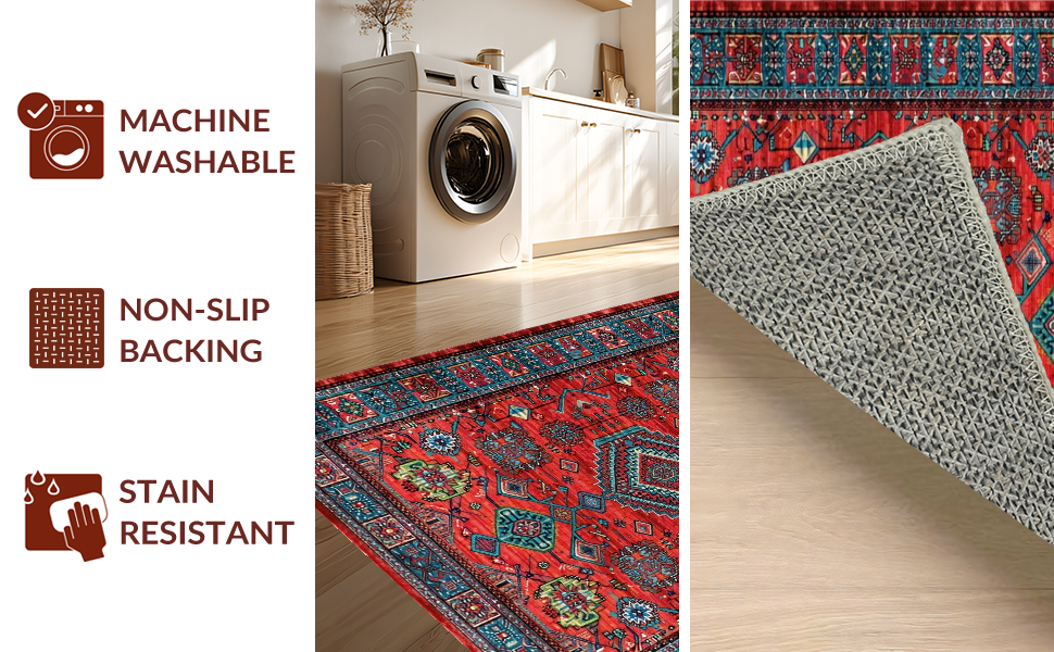 Ultra Soft Area Rug, Non Slip, Stain Resistant, Washable Area Rugs for Living Room, Bedroom, Brightly Colored Folk-Inspired Design(Red) Overview: