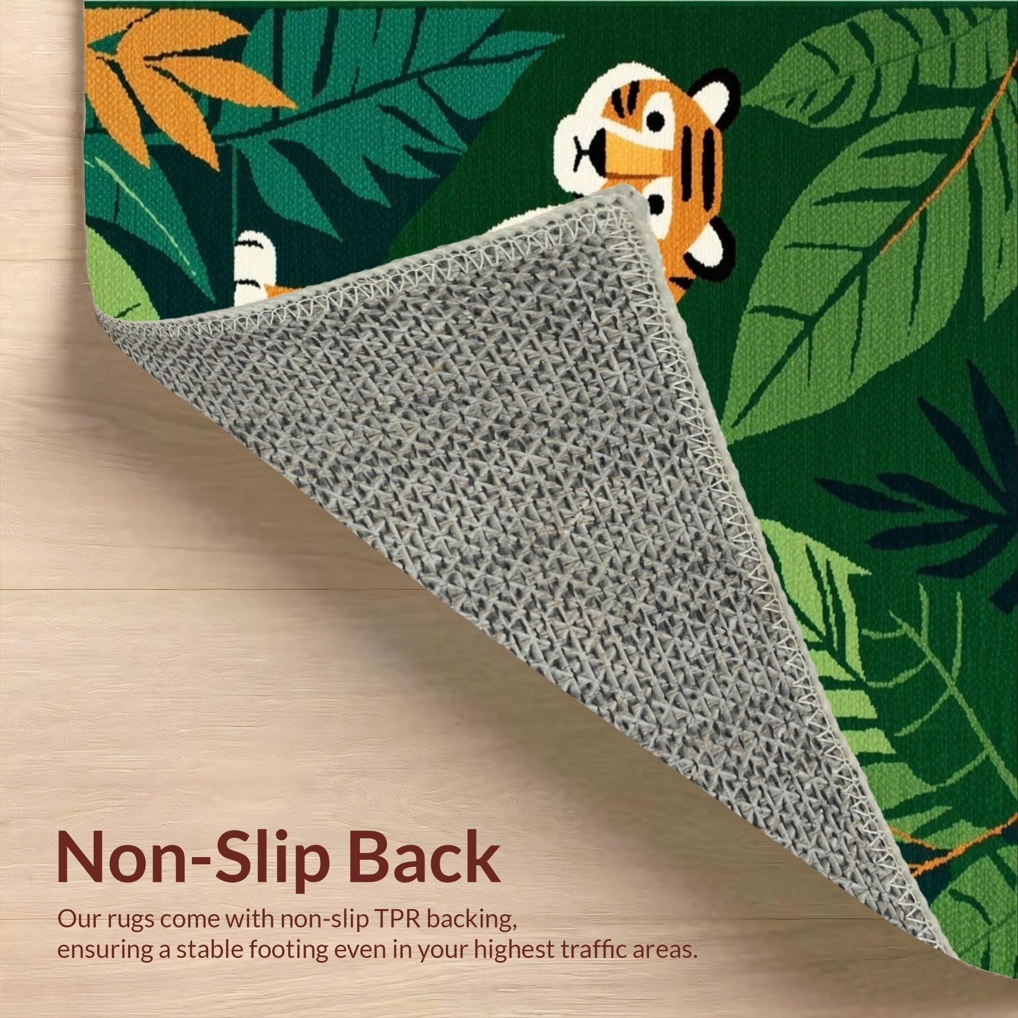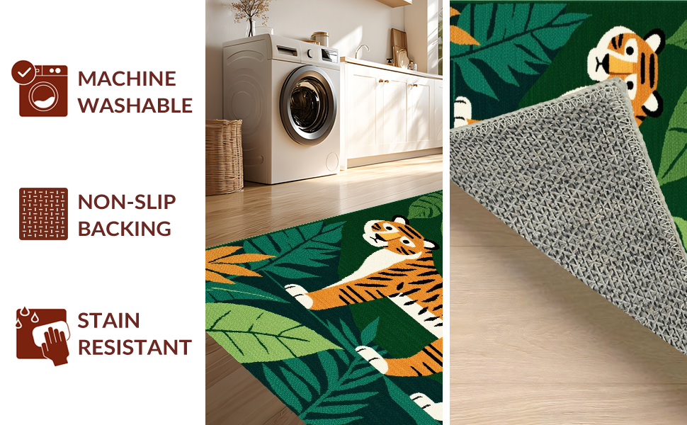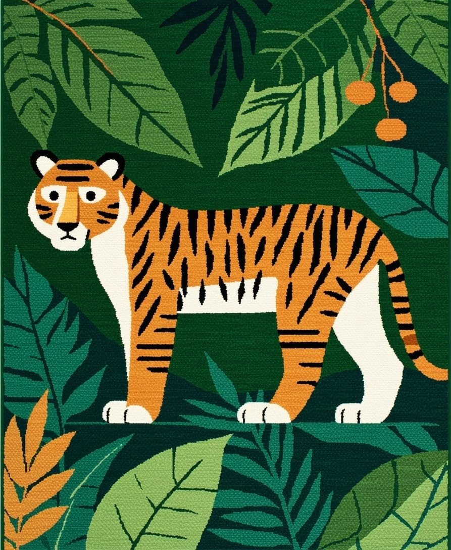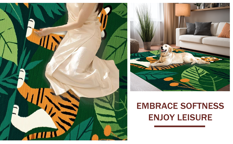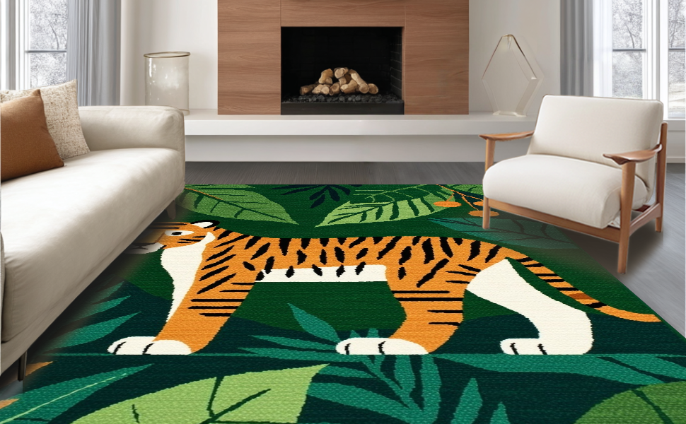Ultra Soft Area Rug, Non Slip, Stain Resistant, Washable Area Rugs for Living Room, Bedroom, Brightly Colored Jungle Adventure Theme(Green) Overview:
