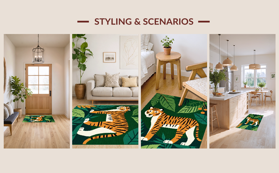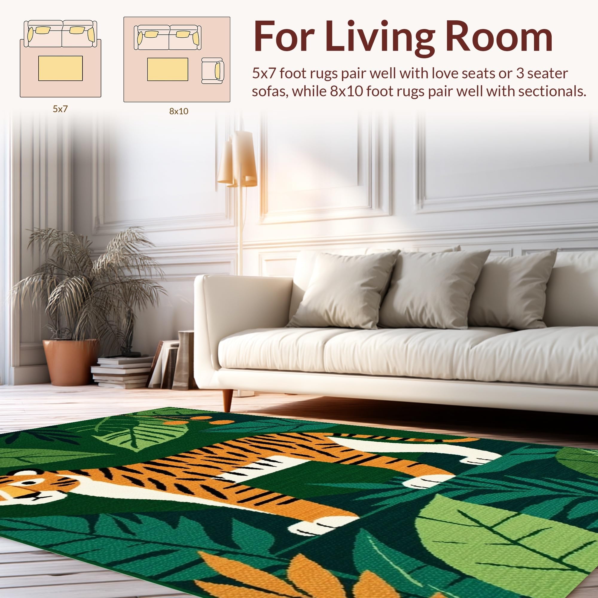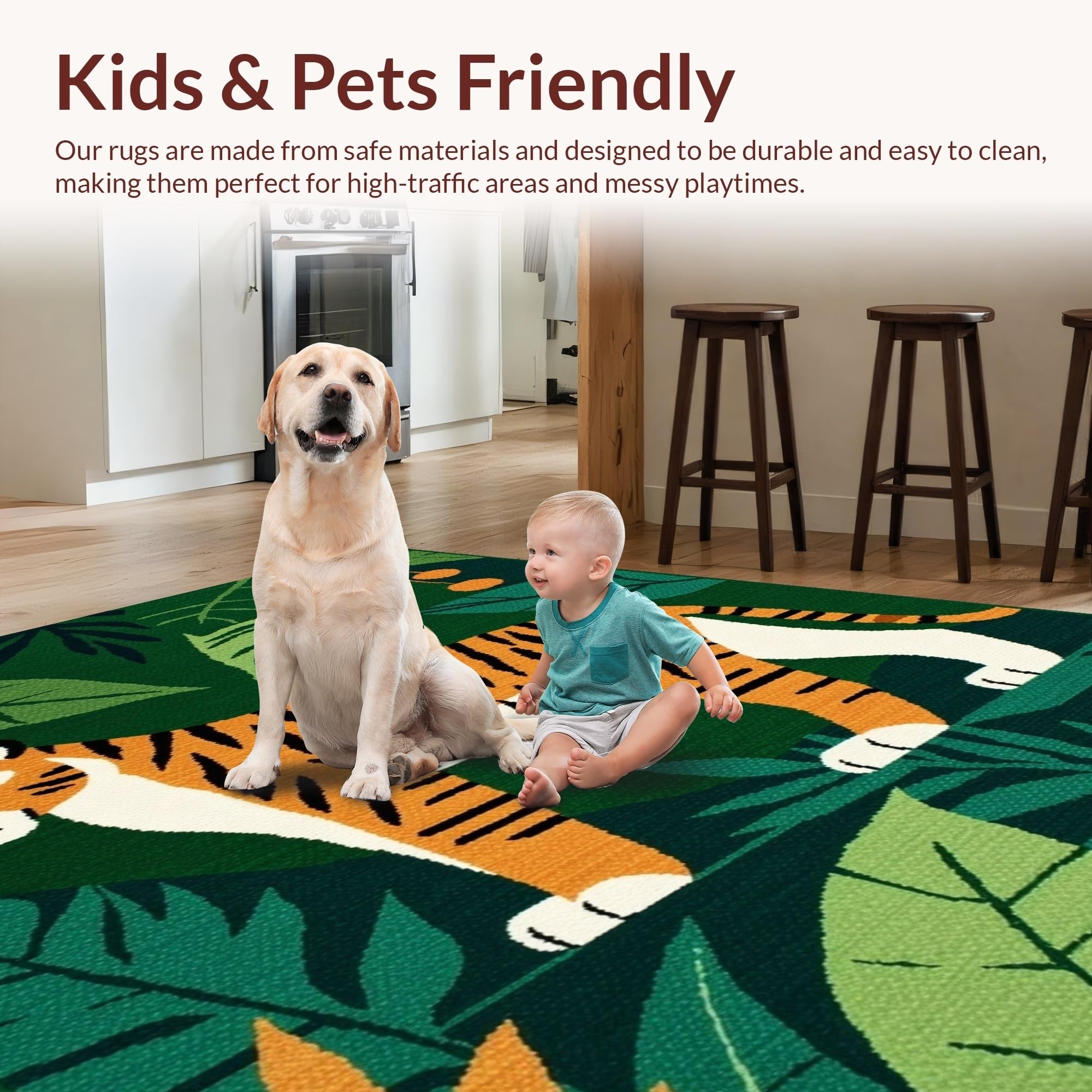 Ultra Soft Area Rug, Non Slip, Stain Resistant, Washable Area Rugs for Living Room, Bedroom, Brightly Colored Jungle Adventure Theme(Green) Overview: