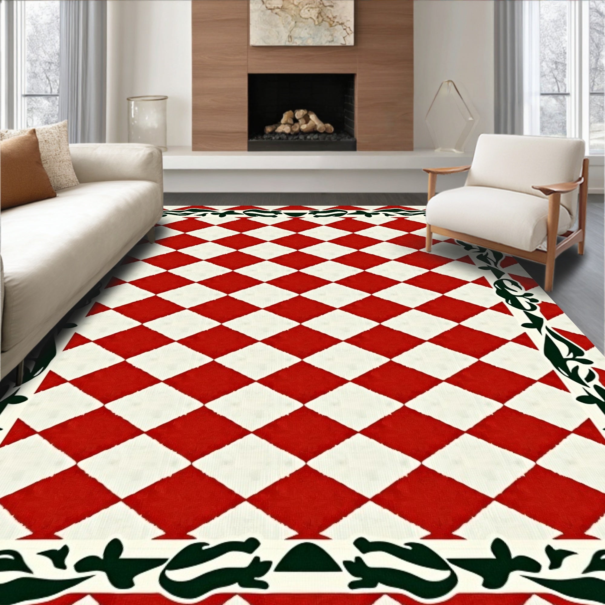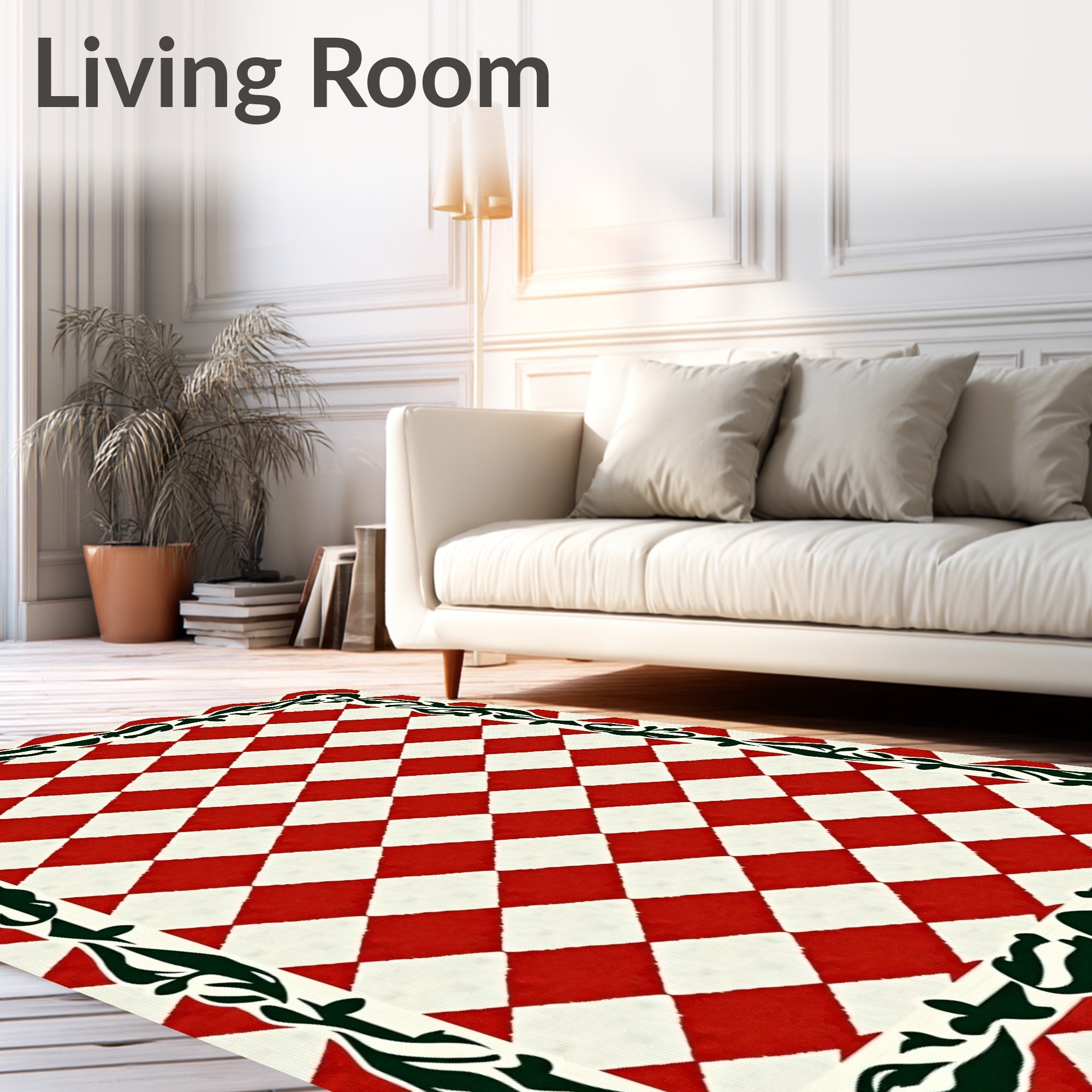 Ultra Soft Area Rug, Non Slip, Stain Resistant, Washable Area Rugs for Living Room, Bedroom, Buffalo Check Accent with Seasonal Fall Design(Red) Overview: