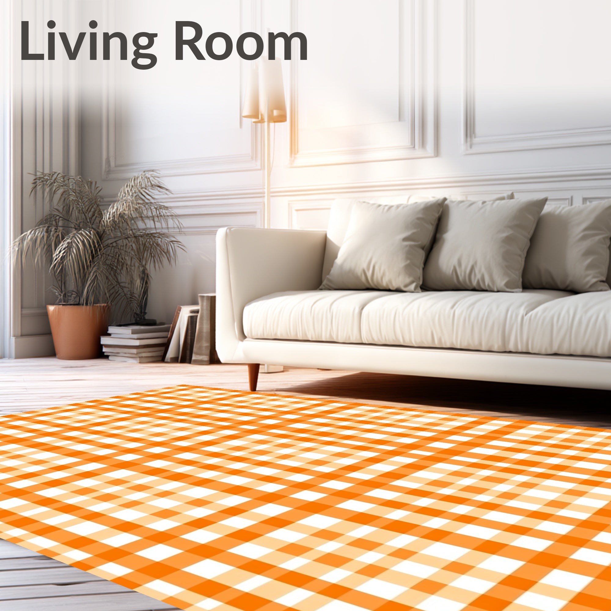 Ultra Soft Area Rug, Non Slip, Stain Resistant, Washable Area Rugs for Living Room, Bedroom, Buffalo Check with Traditional Gingham Style(Orange) Overview: