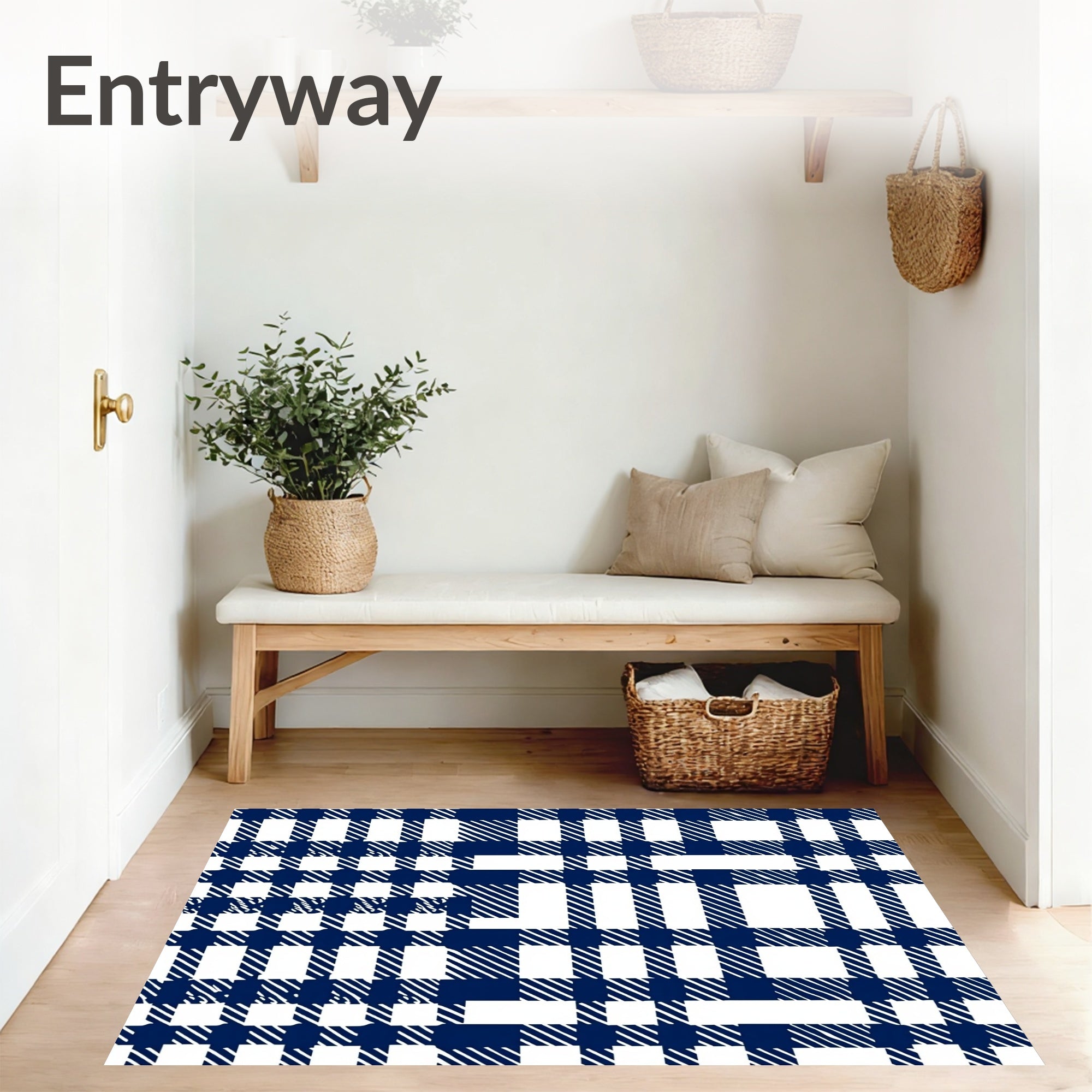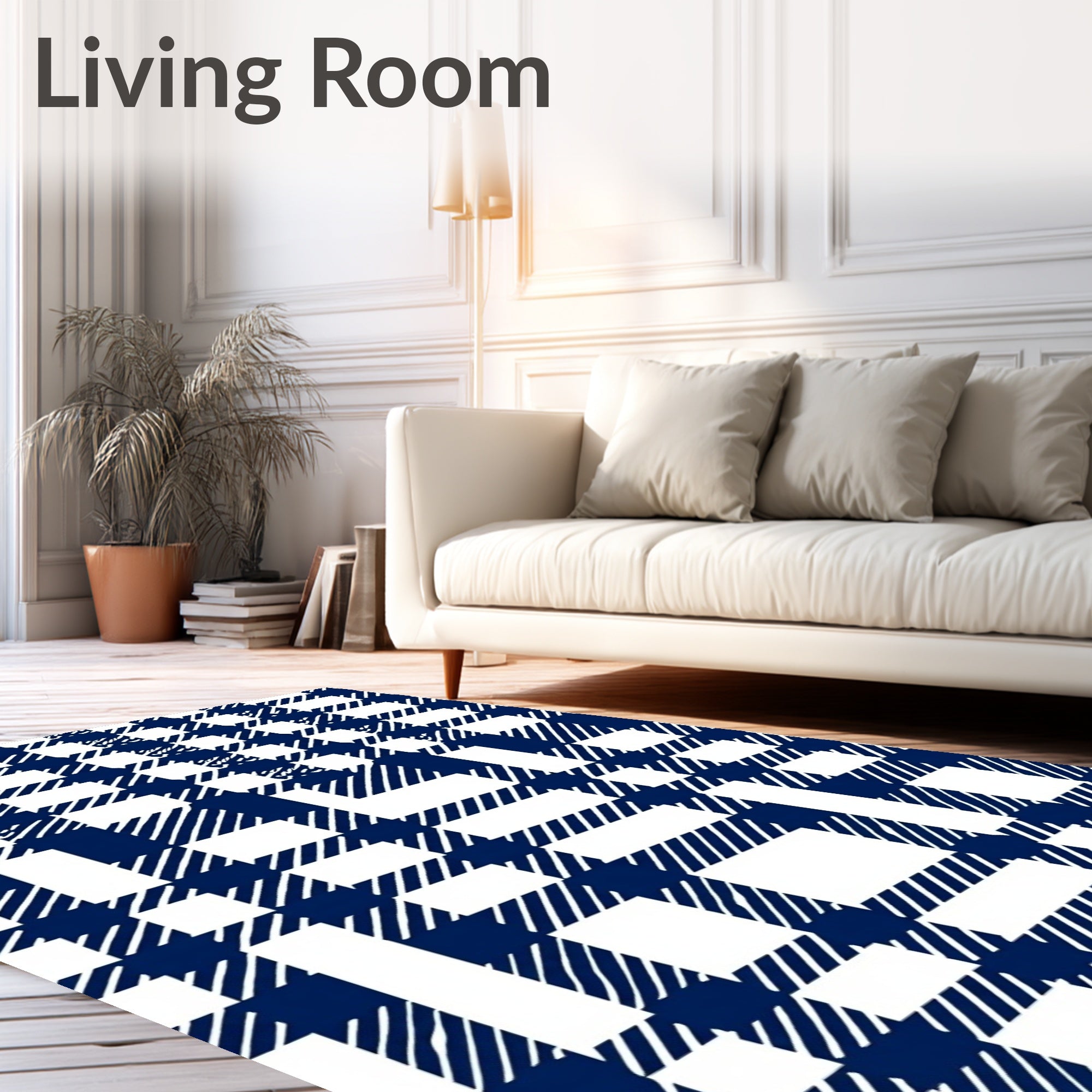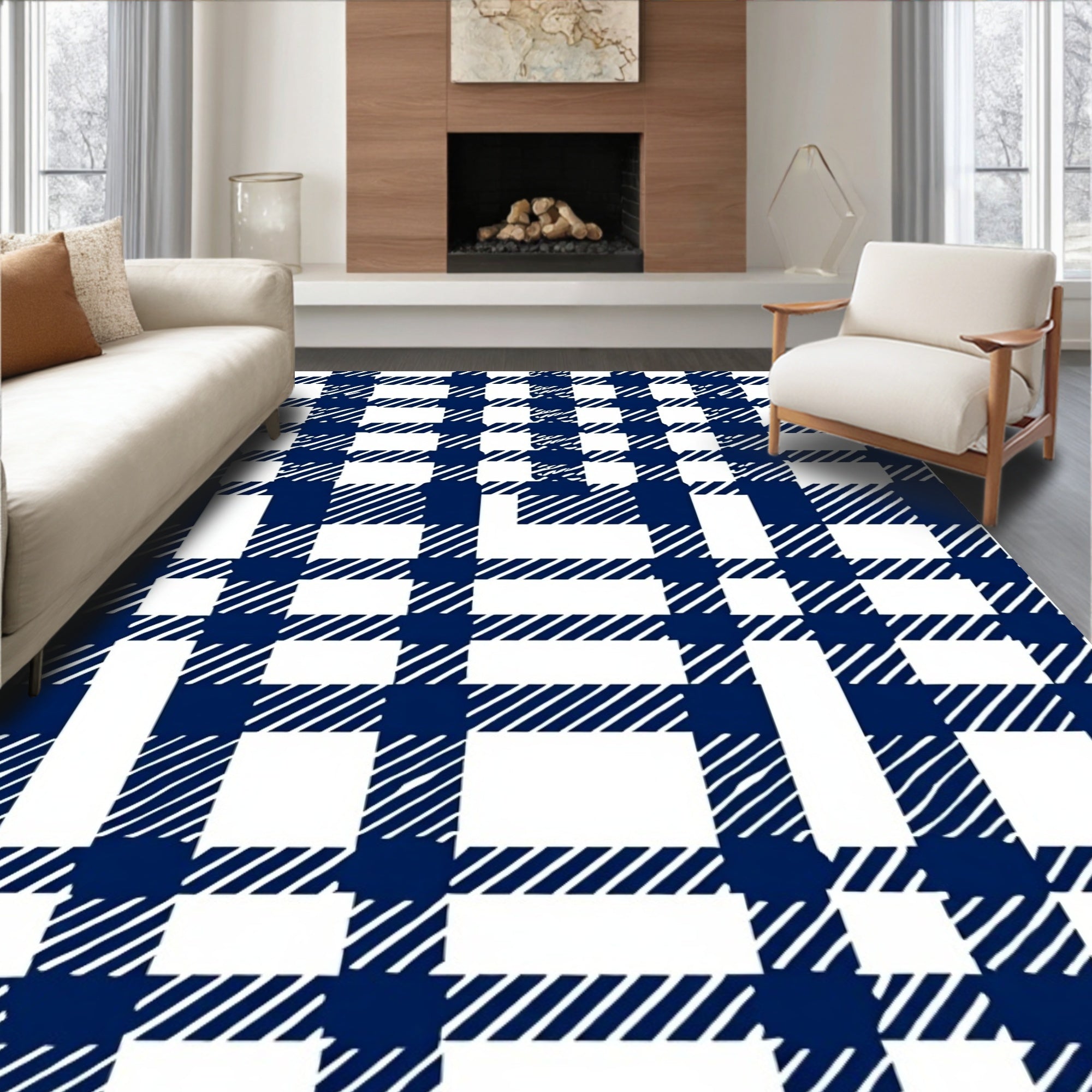 Ultra Soft Area Rug, Non Slip, Stain Resistant, Washable Area Rugs for Living Room, Bedroom, Buffalo Farmhouse Checkered Entrance Welcome(Navy Blue) Overview: