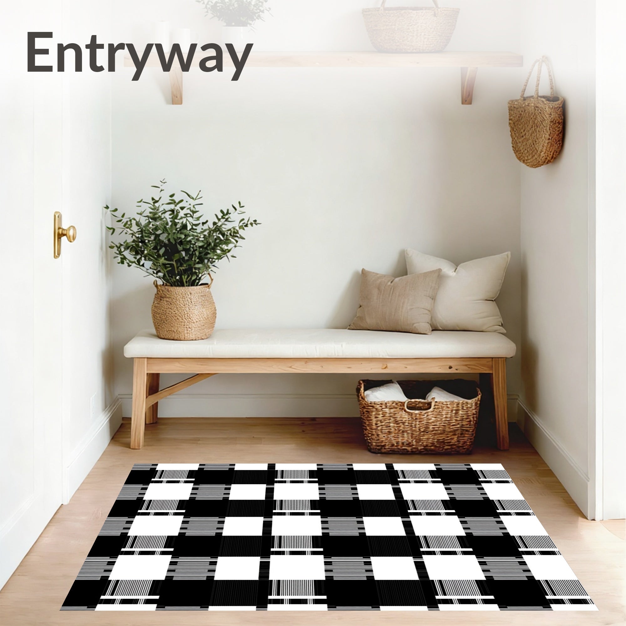 Ultra Soft Area Rug, Non Slip, Stain Resistant, Washable Area Rugs for Living Room, Bedroom, Buffalo Farmhouse Doormat Rustic Entrance Welcome(Black) Overview: