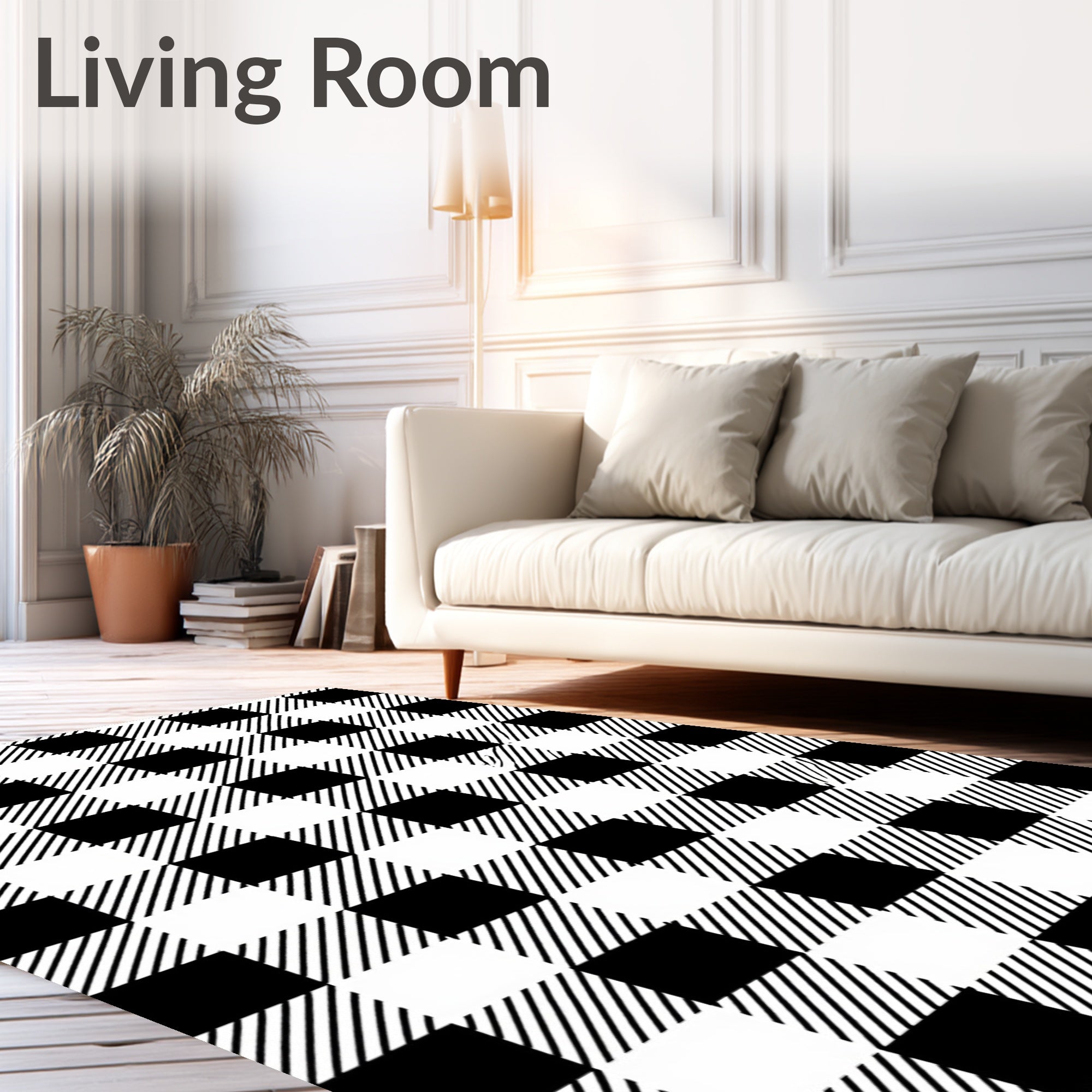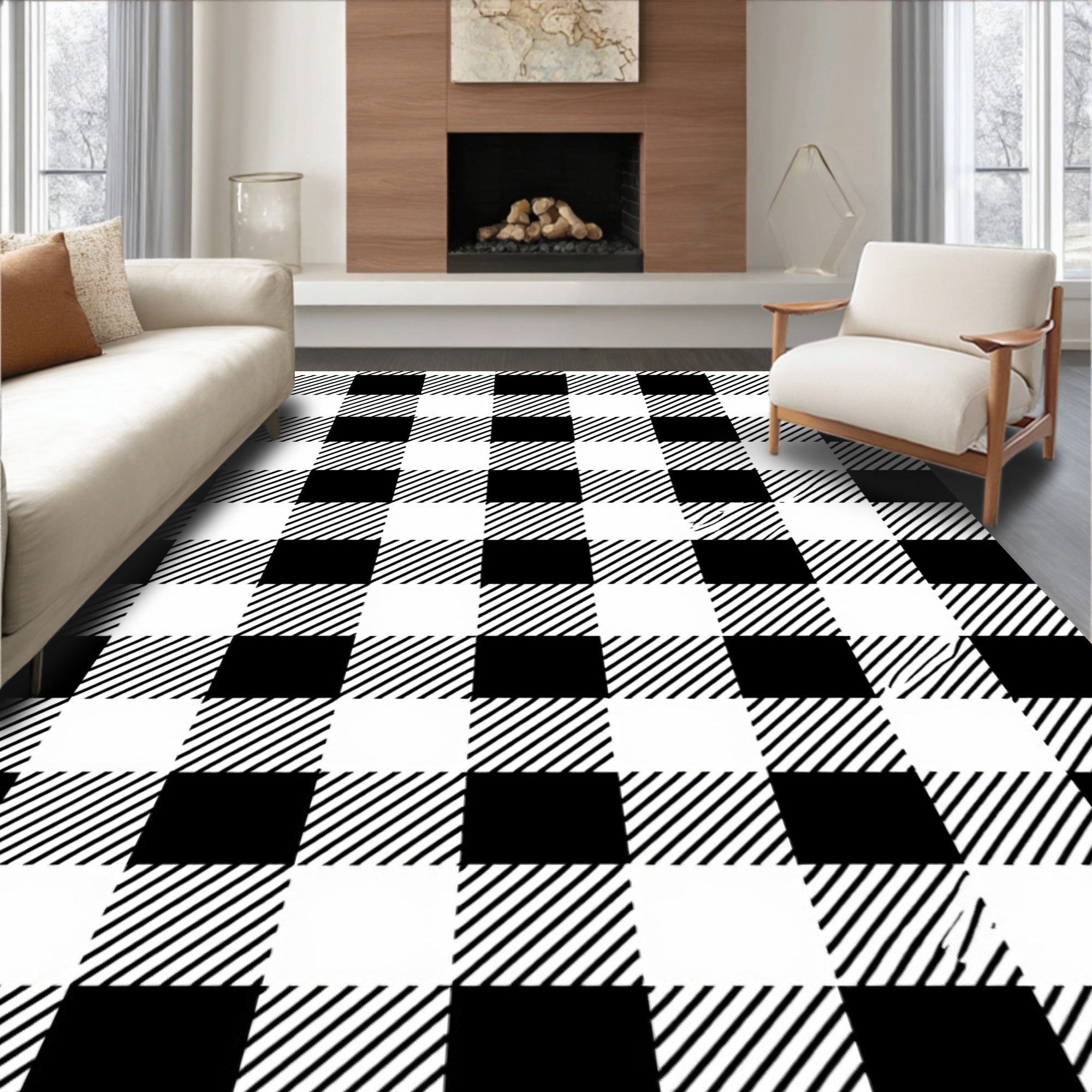Ultra Soft Area Rug, Non Slip, Stain Resistant, Washable Area Rugs for Living Room, Bedroom, Buffalo Plaid Grid with Bold Contrast and Crisp Lines(Black) Overview: