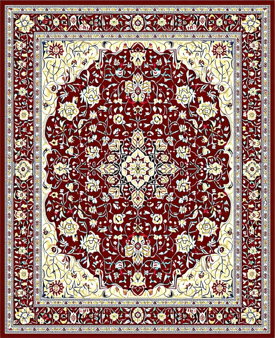 Burgundy and Cream Floral Medallion with Geometric Design(Red)