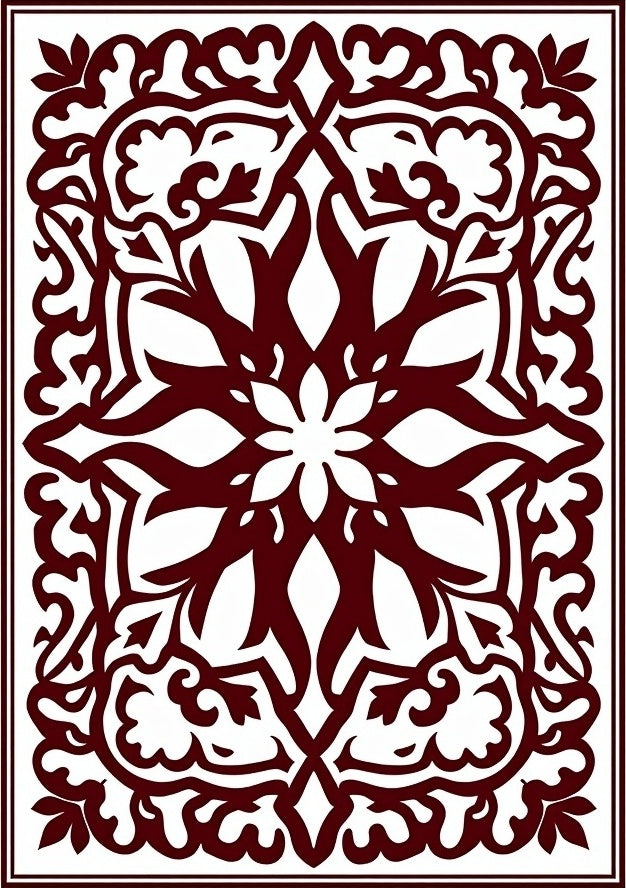 Burst Design with Intricate Petal Motifs and Symmetrical Flourishes(Red)