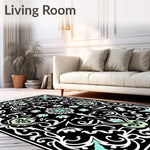 Flatwoven High Traffic Area Rug, Byzantine Palace Vinework with Inspired Floral Scrolls, Non Slip, Stain Resistant, Washable Area Rugs for Living Room, Bedroom (Black) Overview: