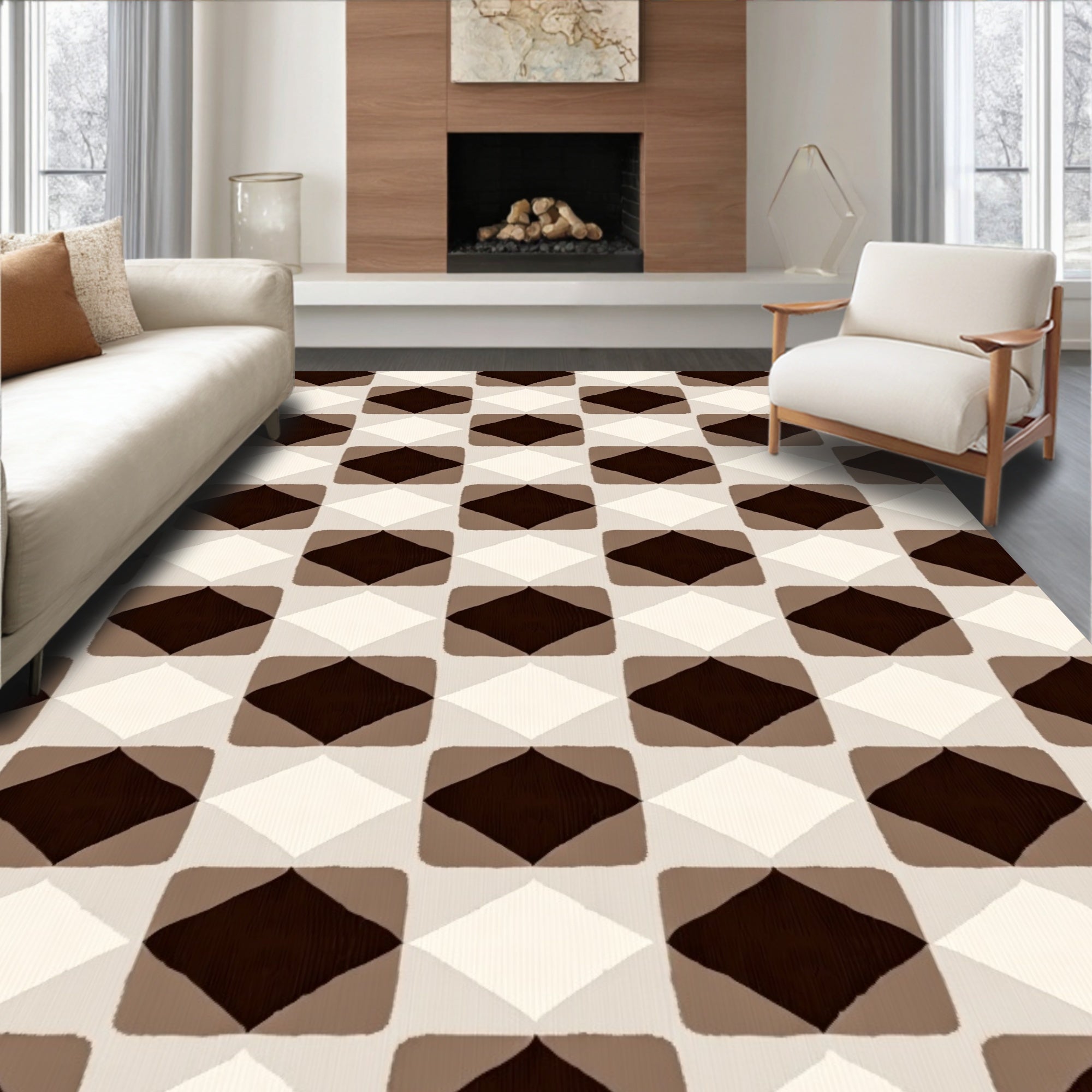 Ultra Soft Area Rug, Non Slip, Stain Resistant, Washable Area Rugs for Living Room, Bedroom, Cabin Lattice Festive Countryside Welcoming Accent(Brown) Overview: