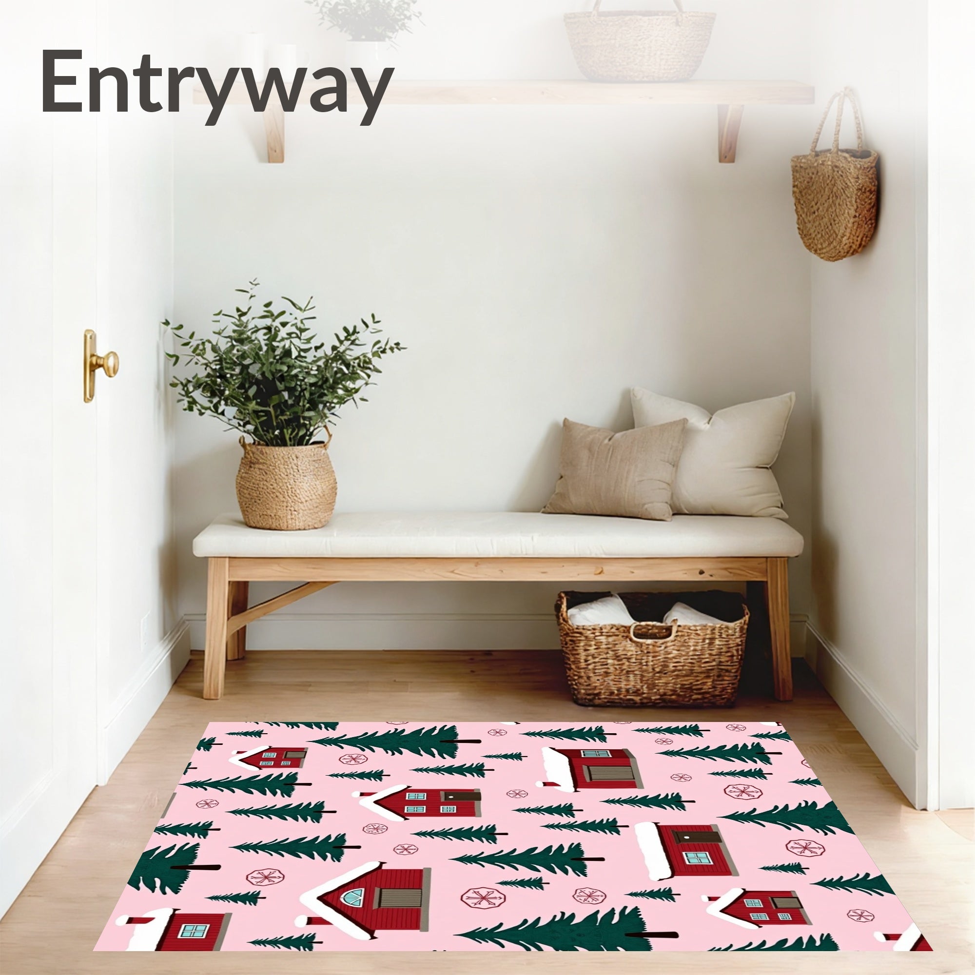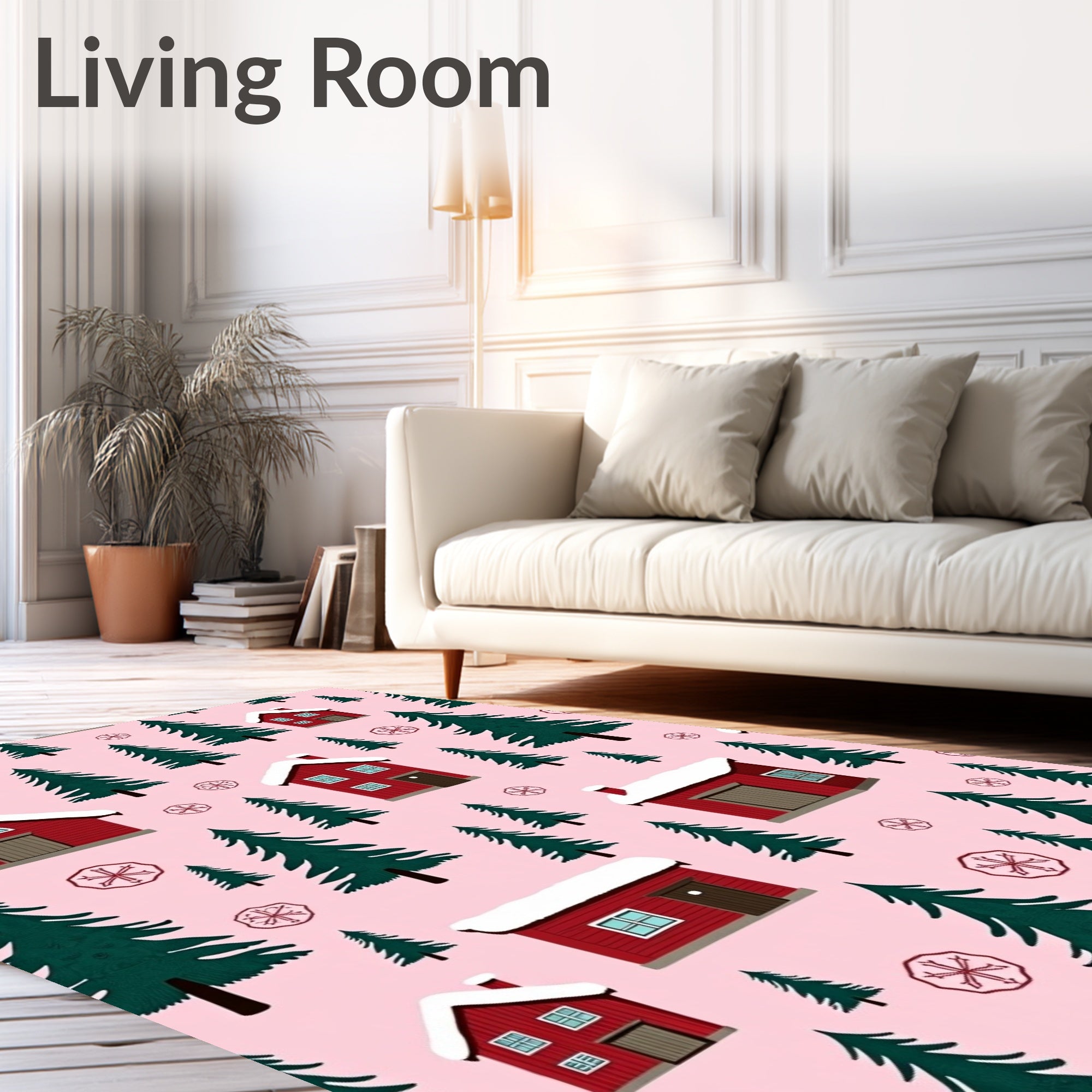 Ultra Soft Area Rug, Non Slip, Stain Resistant, Washable Area Rugs for Living Room, Bedroom, Cabin Pine Tree Landscape(Pink) Overview: