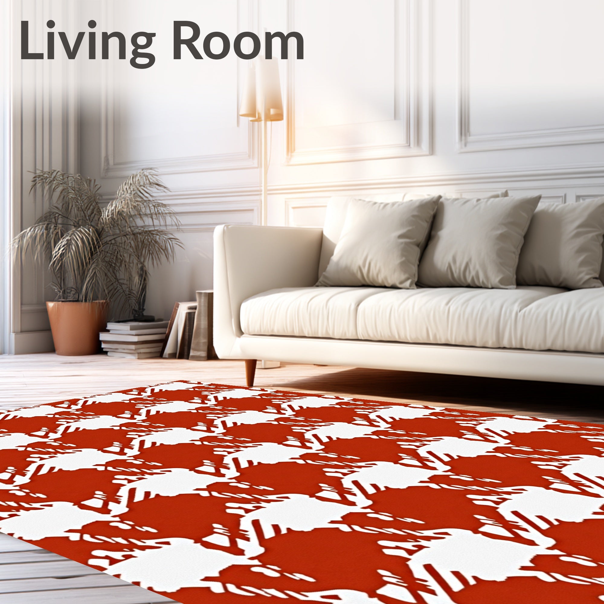 Ultra Soft Area Rug, Non Slip, Stain Resistant, Washable Area Rugs for Living Room, Bedroom, Cabin Tartan Crosshatch Maple Sunset(Red) Overview: