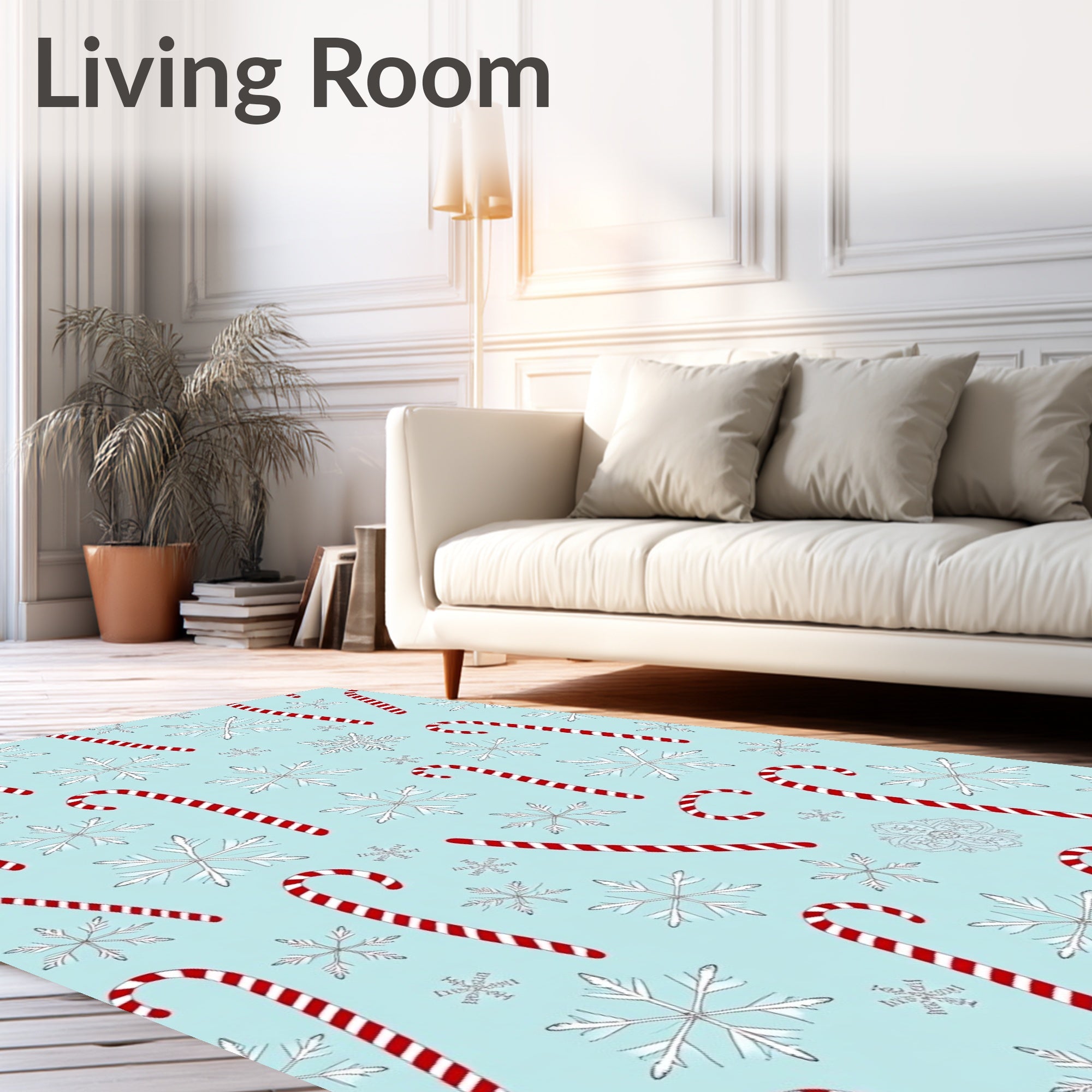 Ultra Soft Area Rug, Non Slip, Stain Resistant, Washable Area Rugs for Living Room, Bedroom, Cane Snowflake Winter Wonderland Motif(Blue) Overview: