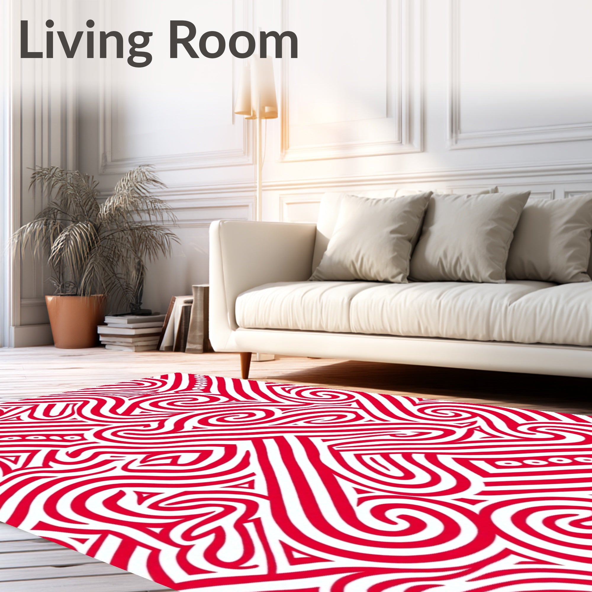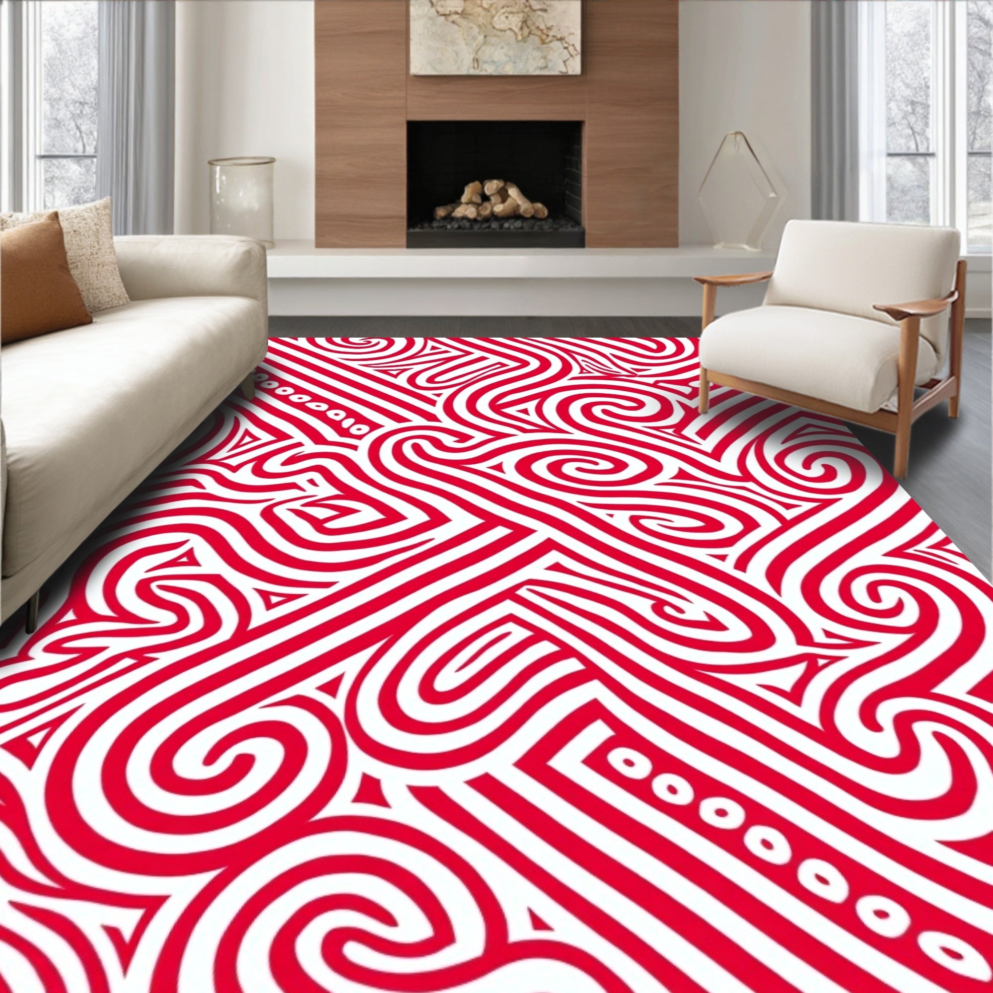 Flatwoven High Traffic Area Rug, Cane Stripe Swirl with Peppermint Twist, Non Slip, Stain Resistant, Washable Area Rugs for Living Room, Bedroom (Red) Overview: