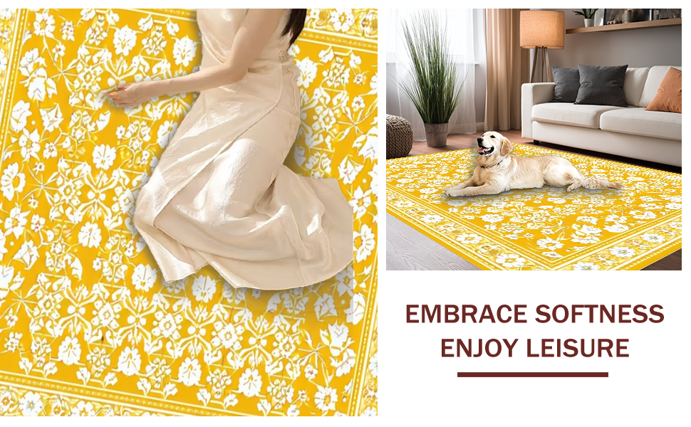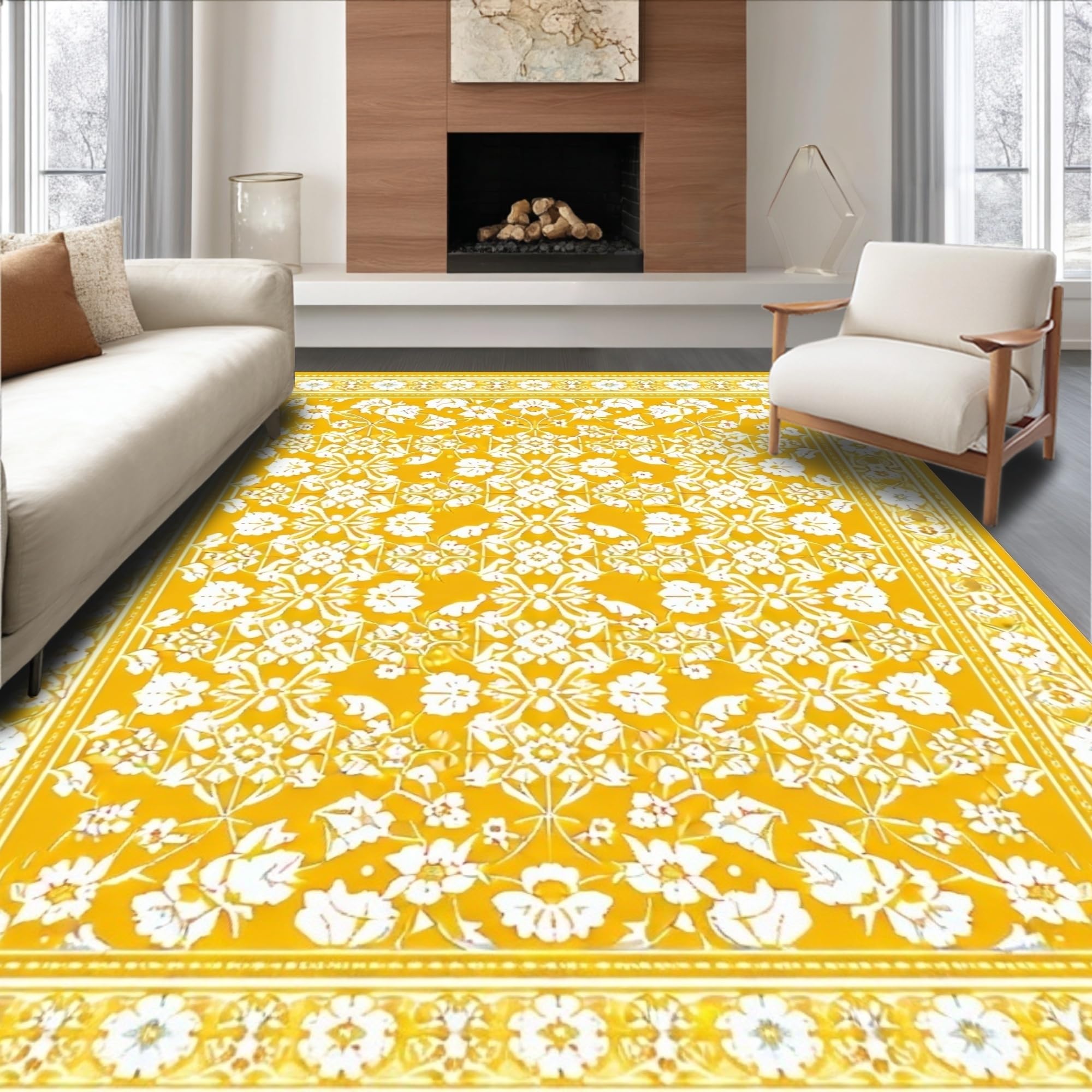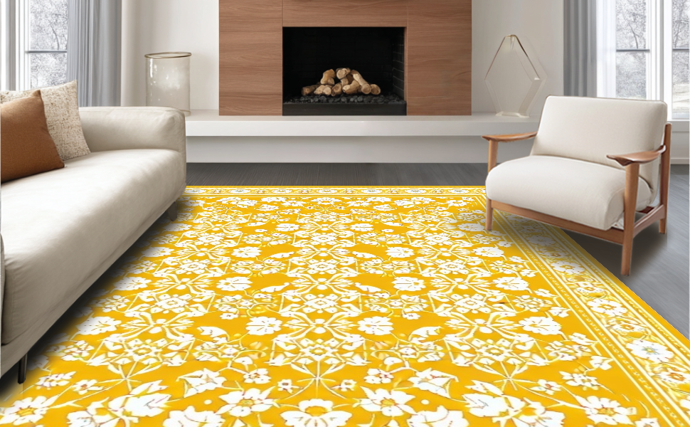 Ultra Soft Area Rug, Non Slip, Stain Resistant, Washable Area Rugs for Living Room, Bedroom, Captivating Elegant Patterned Surface(Yellow) Overview: