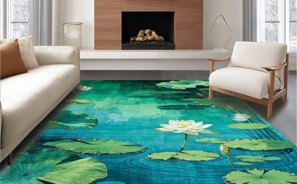 Ultra Soft Area Rug, Non Slip, Stain Resistant, Washable Area Rugs for Living Room, Bedroom, Captivating Natural Landscape Rug Design(Green) Overview: