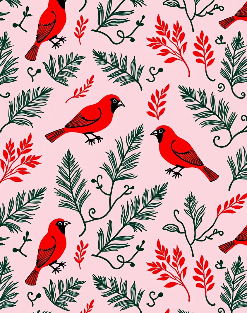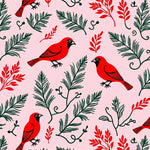 Cardinal Botanical Print with Vine Scroll Accents(Red)