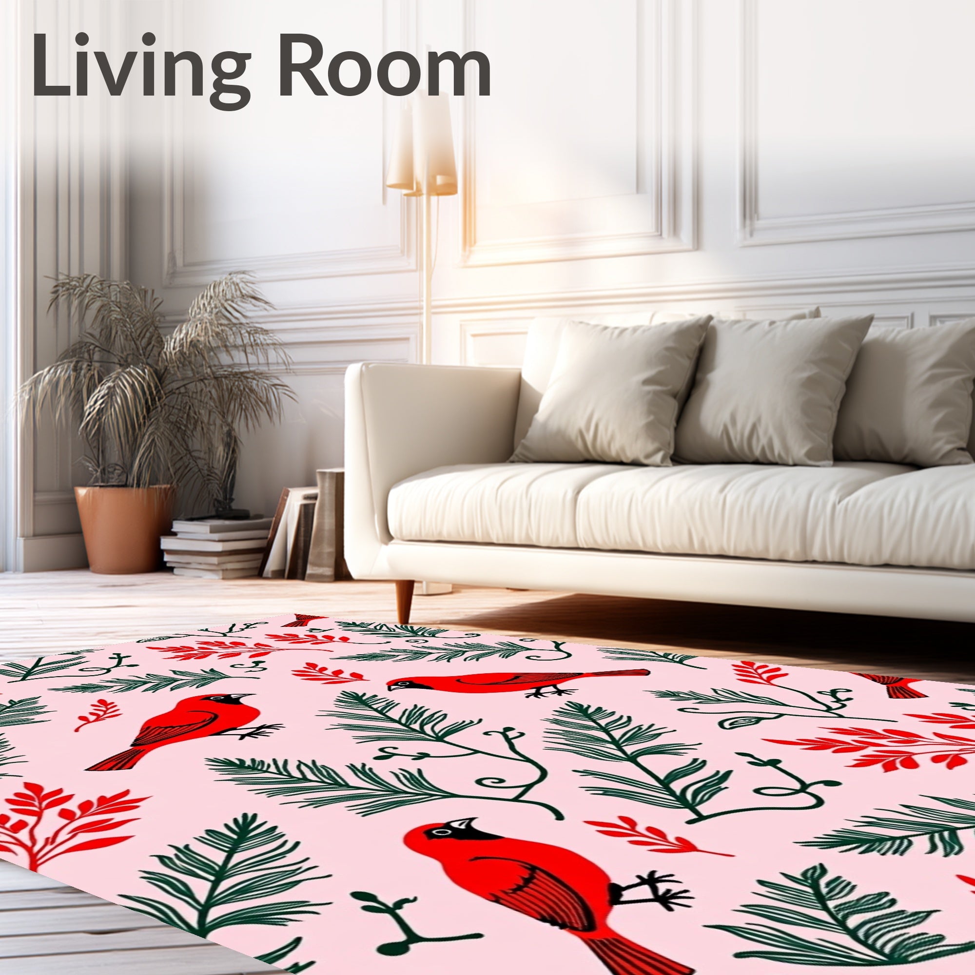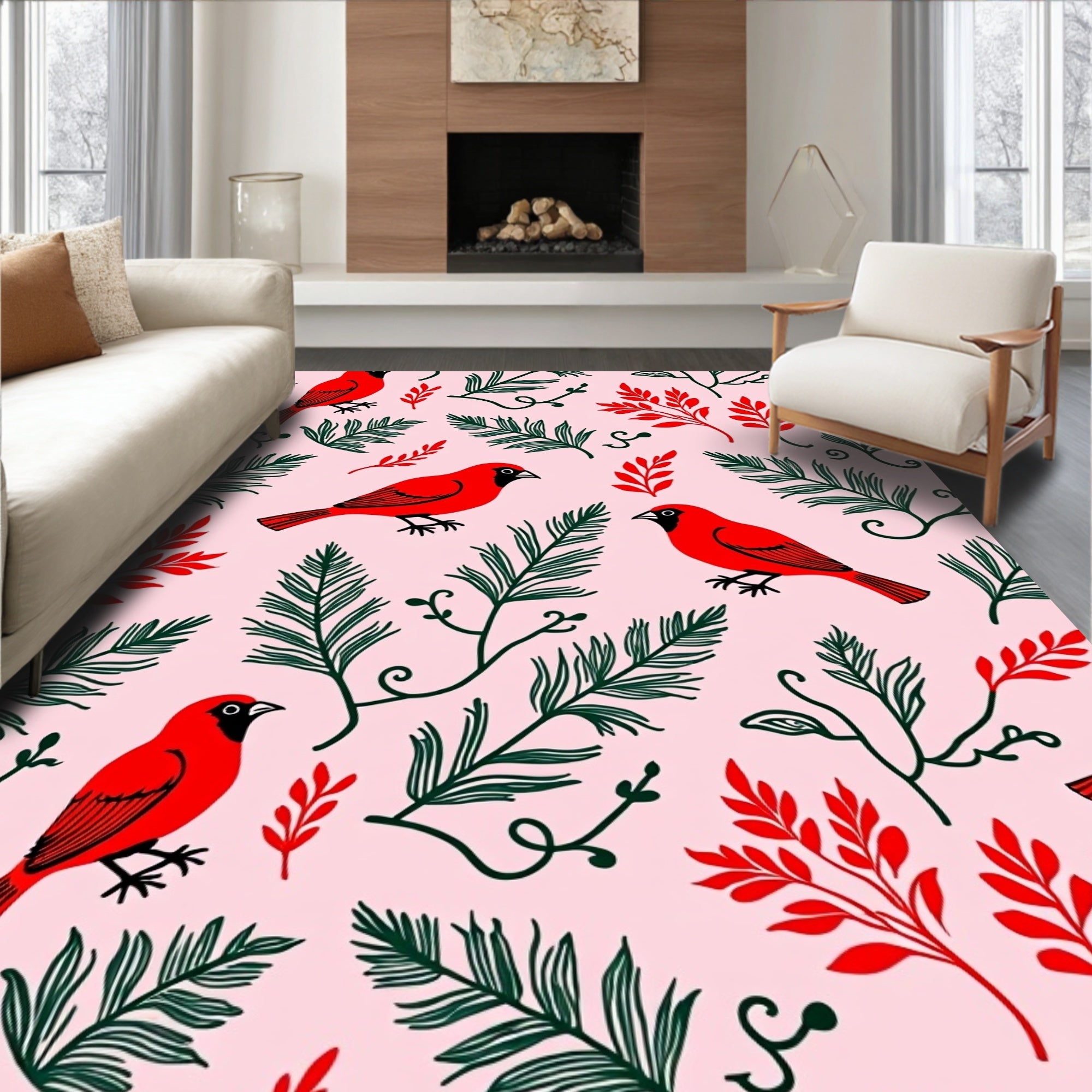 Flatwoven High Traffic Area Rug, Cardinal Botanical Print with Vine Scroll Accents, Non Slip, Stain Resistant, Washable Area Rugs for Living Room, Bedroom (Red) Overview: