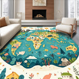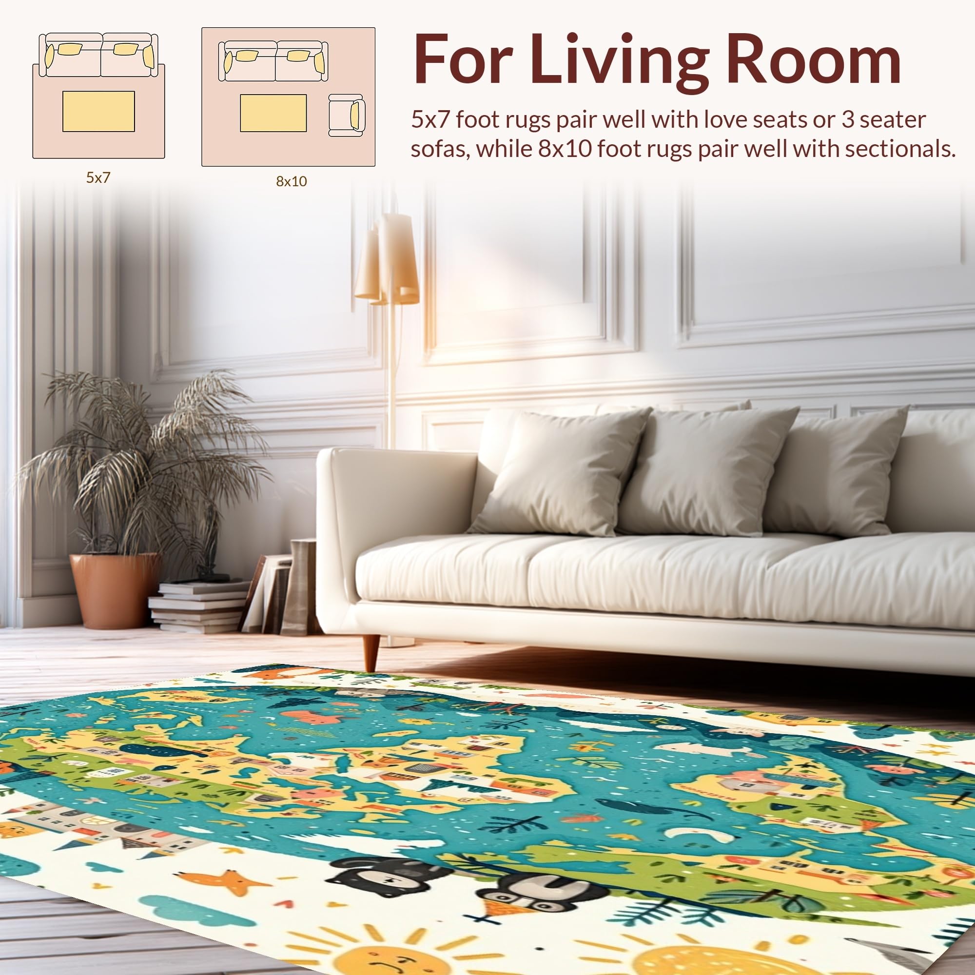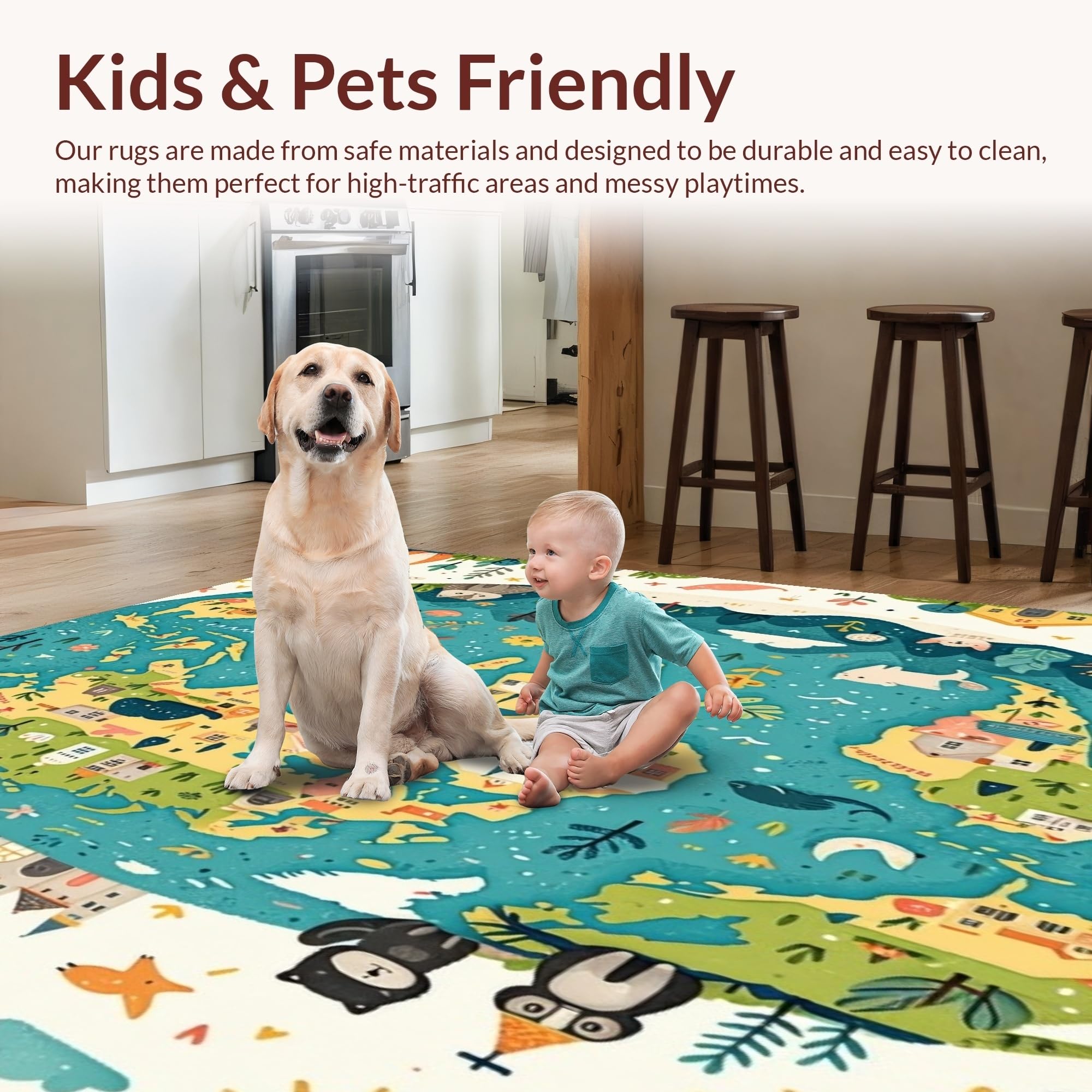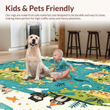 Ultra Soft Area Rug, Non Slip, Stain Resistant, Washable Area Rugs for Living Room, Bedroom, Cartoon Animals and Geographic Icons Round(Blue) Overview: