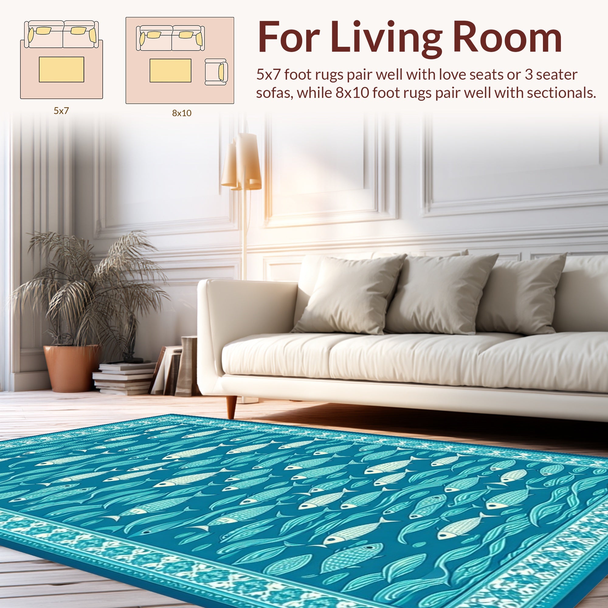Flatwoven High Traffic Area Rug, Casual Underwater Scene, Non Slip, Stain Resistant, Washable Area Rugs for Living Room, Bedroom (Blue) Overview: