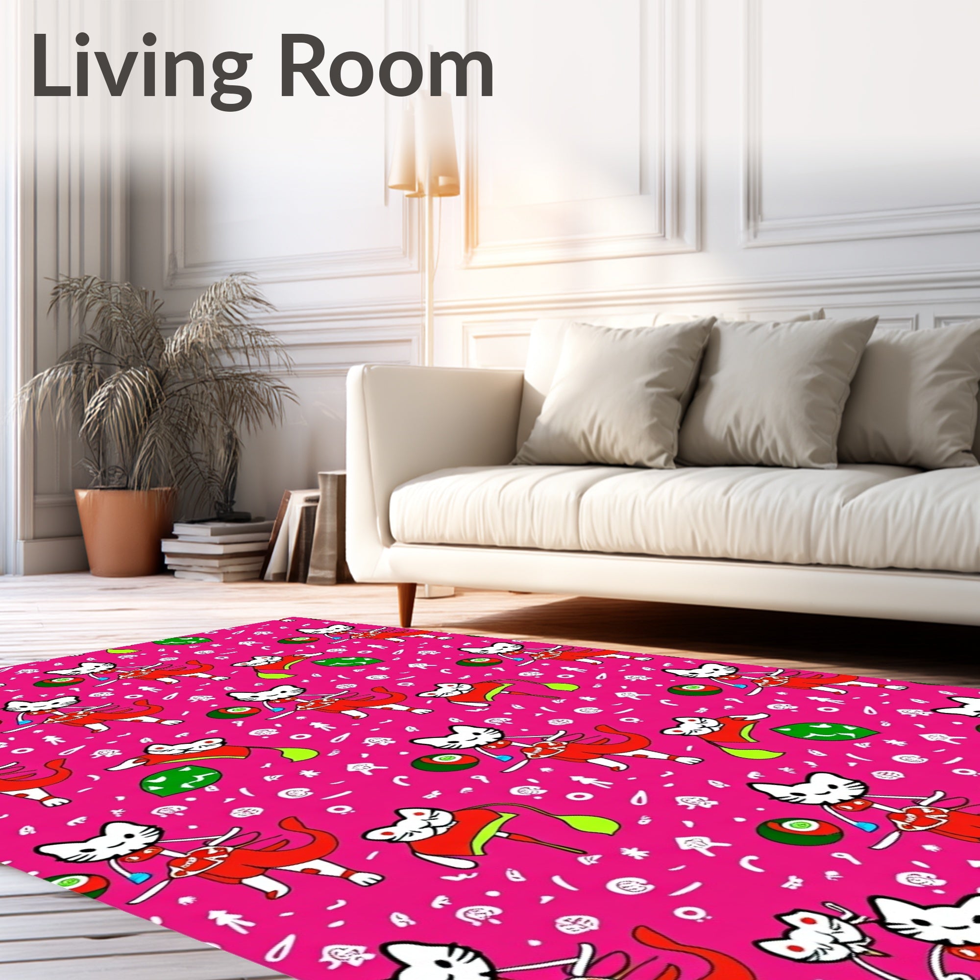 Ultra Soft Area Rug, Non Slip, Stain Resistant, Washable Area Rugs for Living Room, Bedroom, Cat Design with Twinkling Ornament Holiday Style(Pink) Overview: