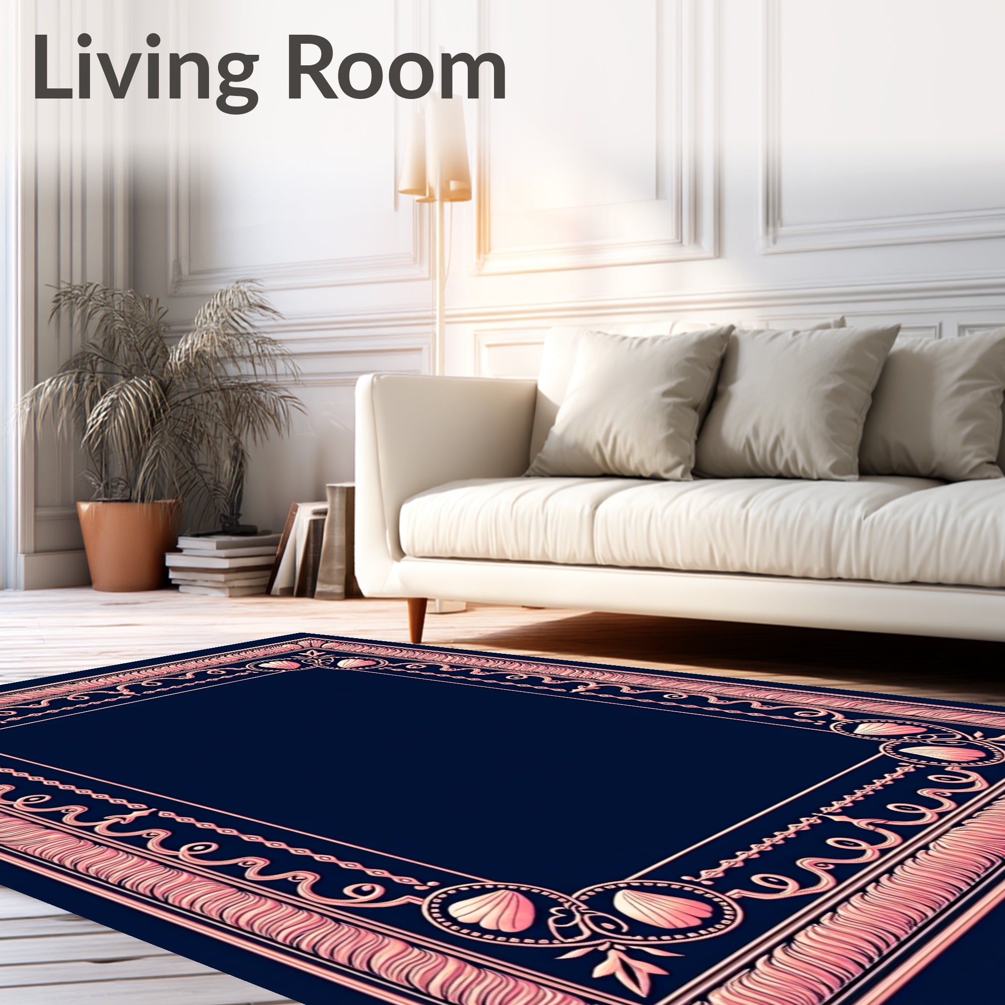 Ultra Soft Area Rug, Non Slip, Stain Resistant, Washable Area Rugs for Living Room, Bedroom, Celebration Nautical with Iridescent Shell Borders(Pink) Overview: