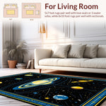 Flatwoven High Traffic Area Rug, Celestial Black Design, Non Slip, Stain Resistant, Washable Area Rugs for Living Room, Bedroom (Black) Overview: