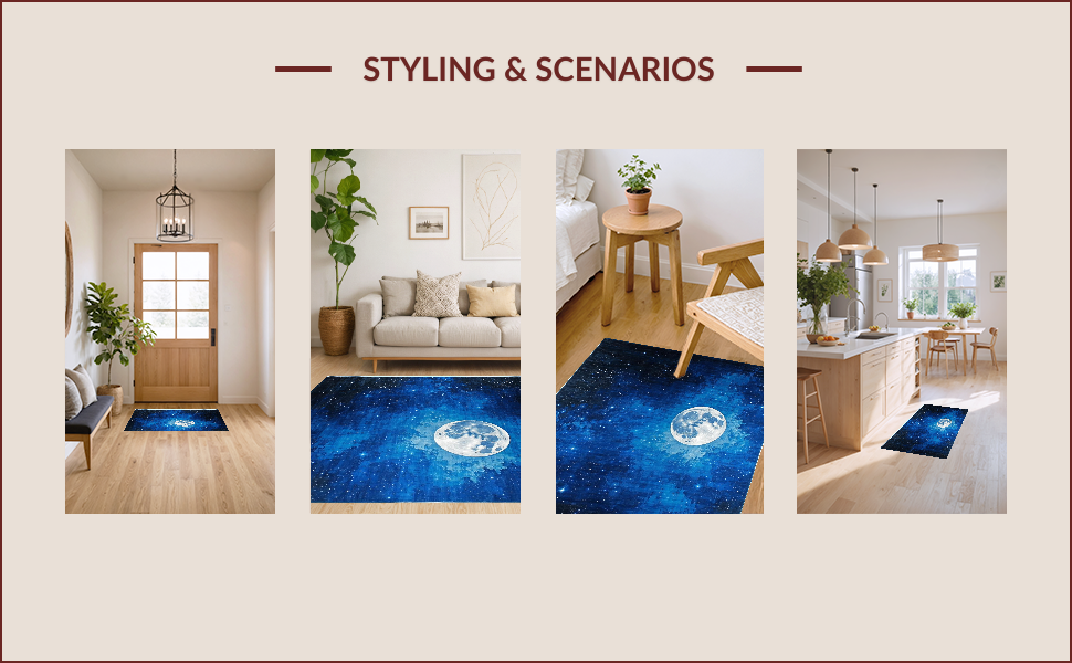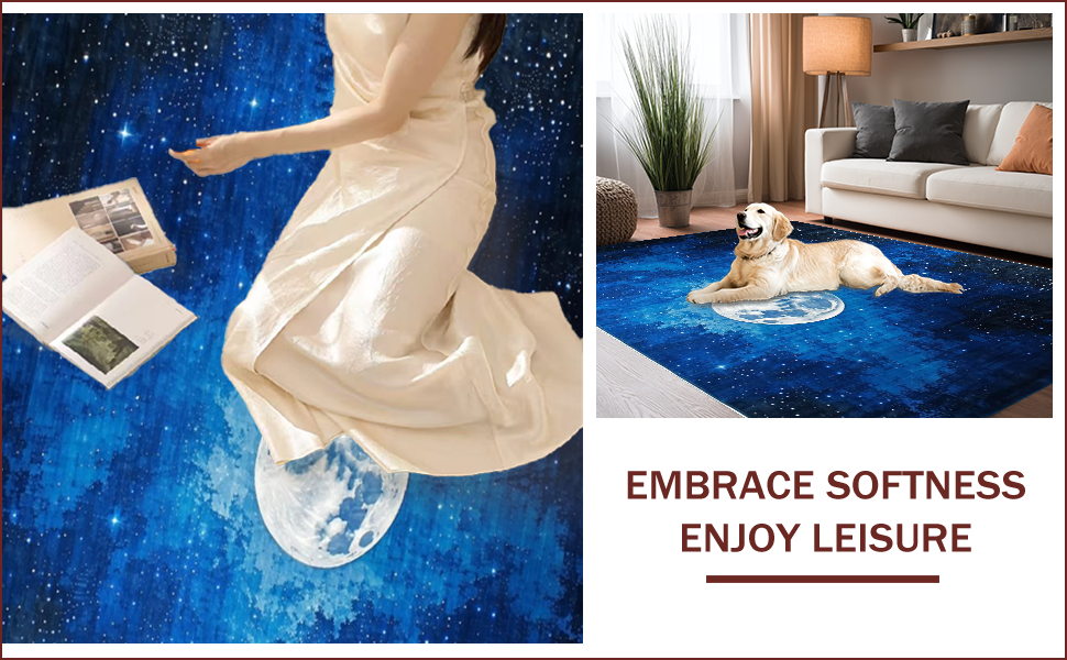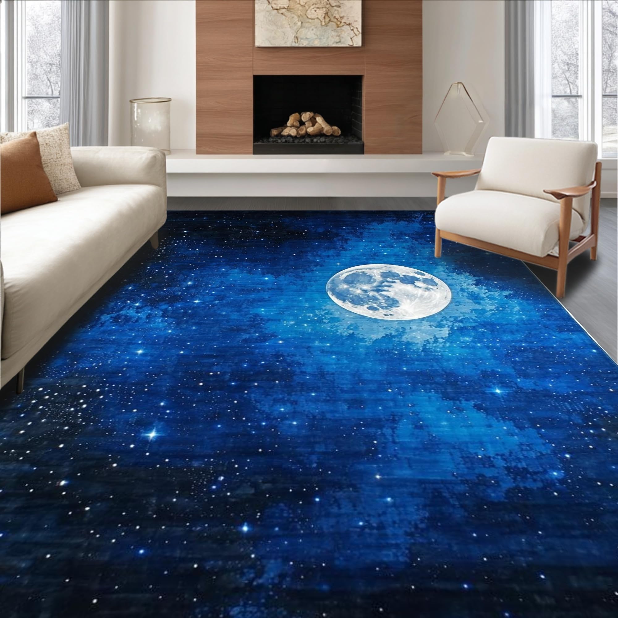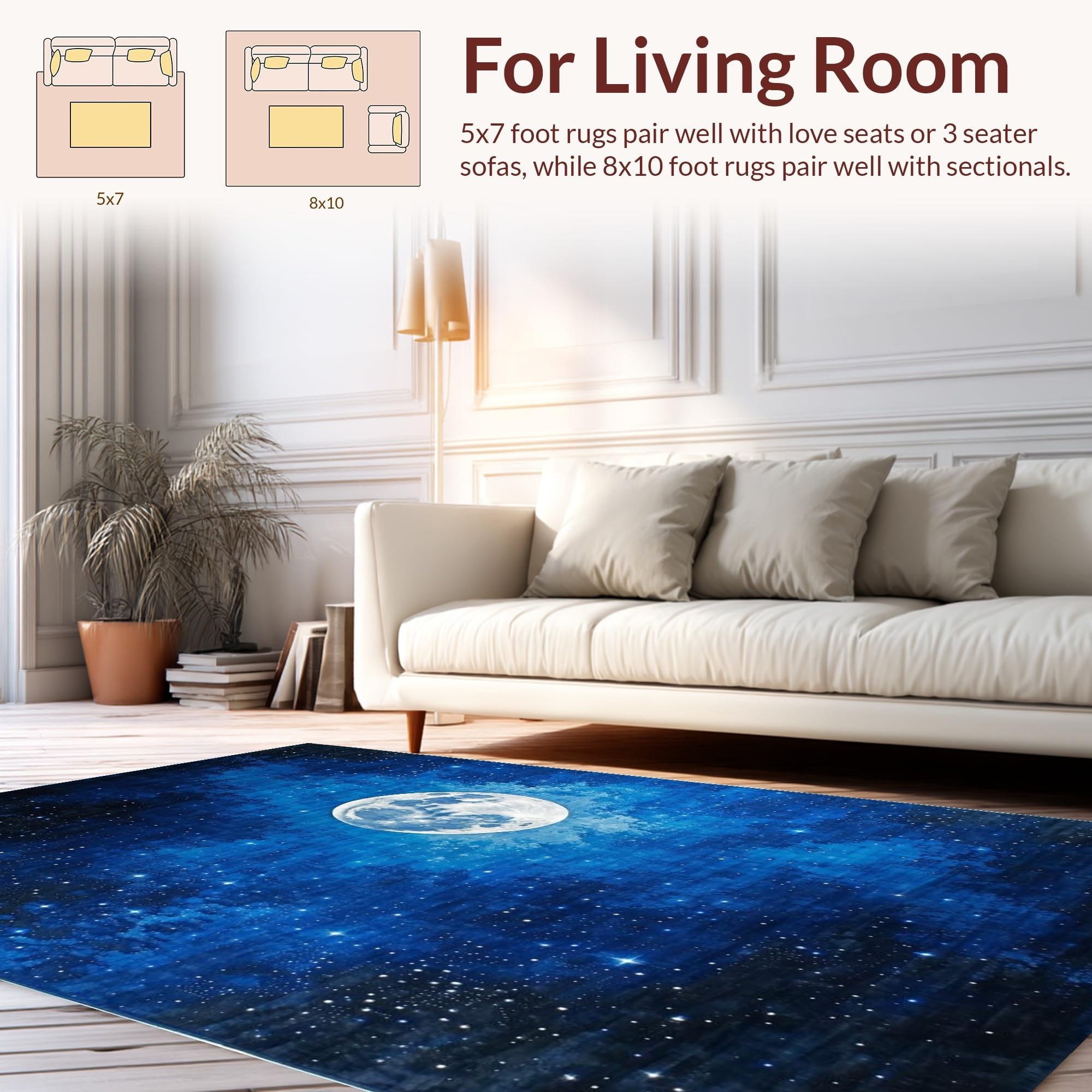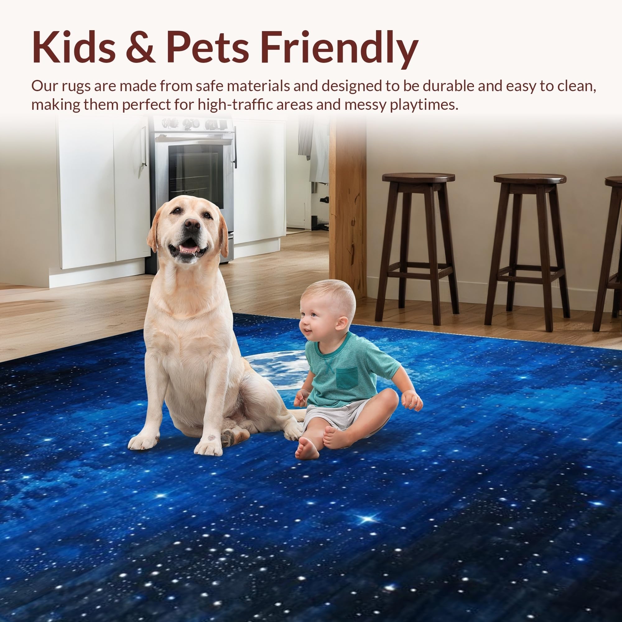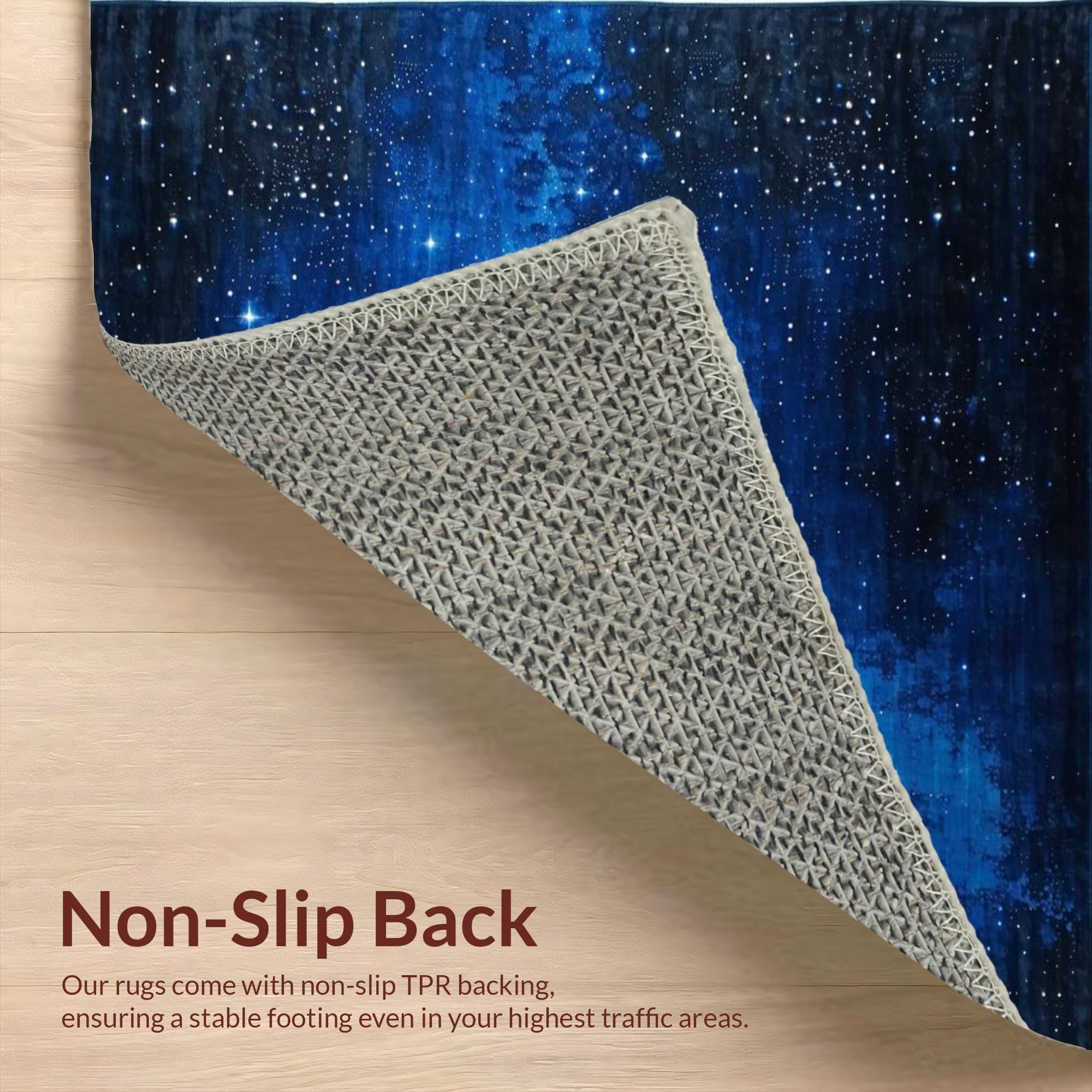 Ultra Soft Area Rug, Non Slip, Stain Resistant, Washable Area Rugs for Living Room, Bedroom, Celestial Blue Abstract Composition(Blue) Overview: