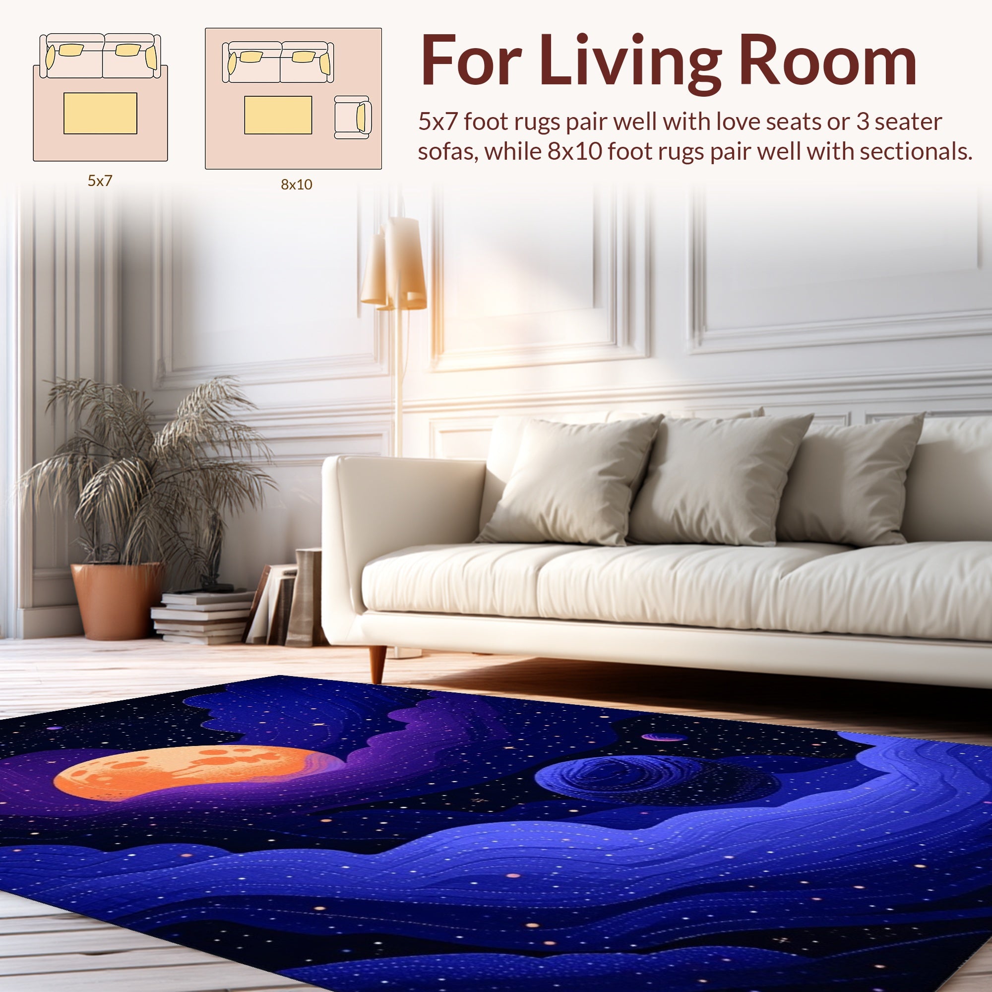 Flatwoven High Traffic Area Rug, Celestial Toned Galaxy Print, Non Slip, Stain Resistant, Washable Area Rugs for Living Room, Bedroom (Blue) Overview: