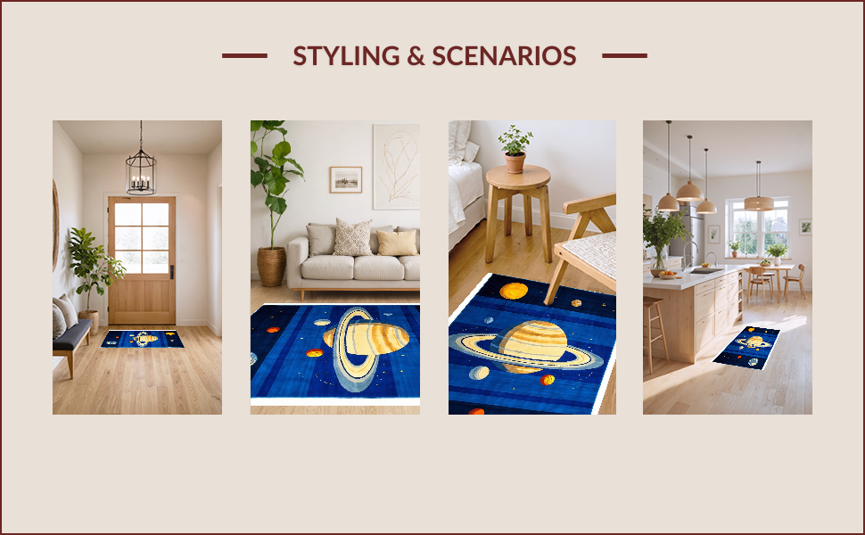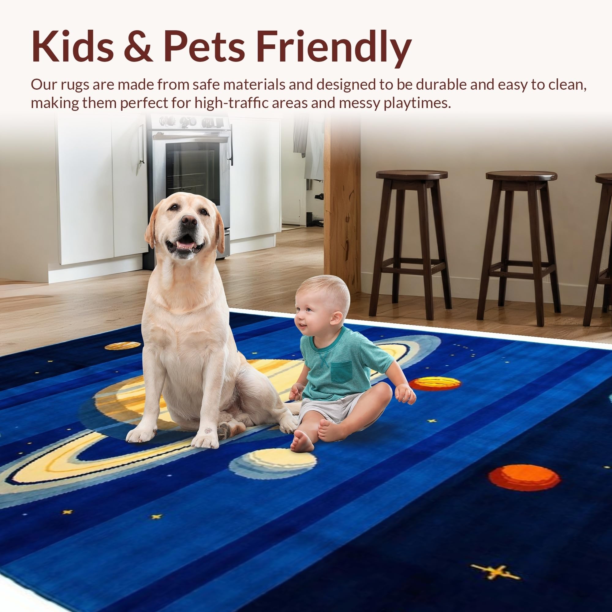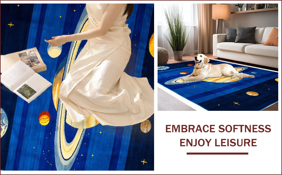 Ultra Soft Area Rug, Non Slip, Stain Resistant, Washable Area Rugs for Living Room, Bedroom, Celestial Colorful Cosmic Design(Blue) Overview: