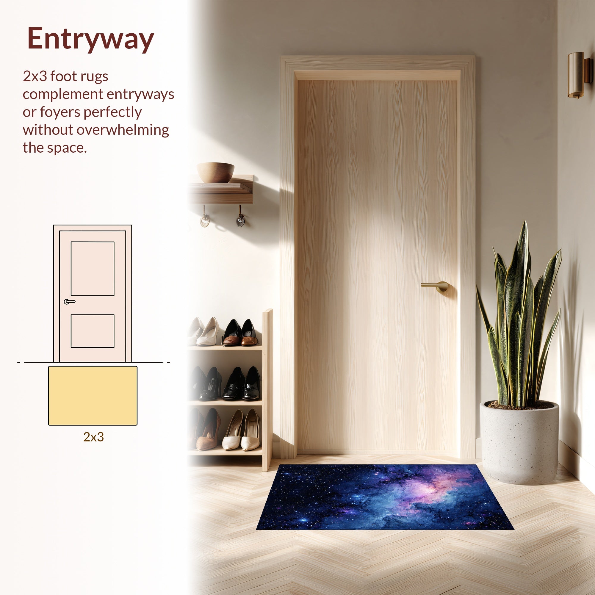 Flatwoven High Traffic Area Rug, Celestial Glittering Nightscape Motif, Non Slip, Stain Resistant, Washable Area Rugs for Living Room, Bedroom (Blue) Overview: