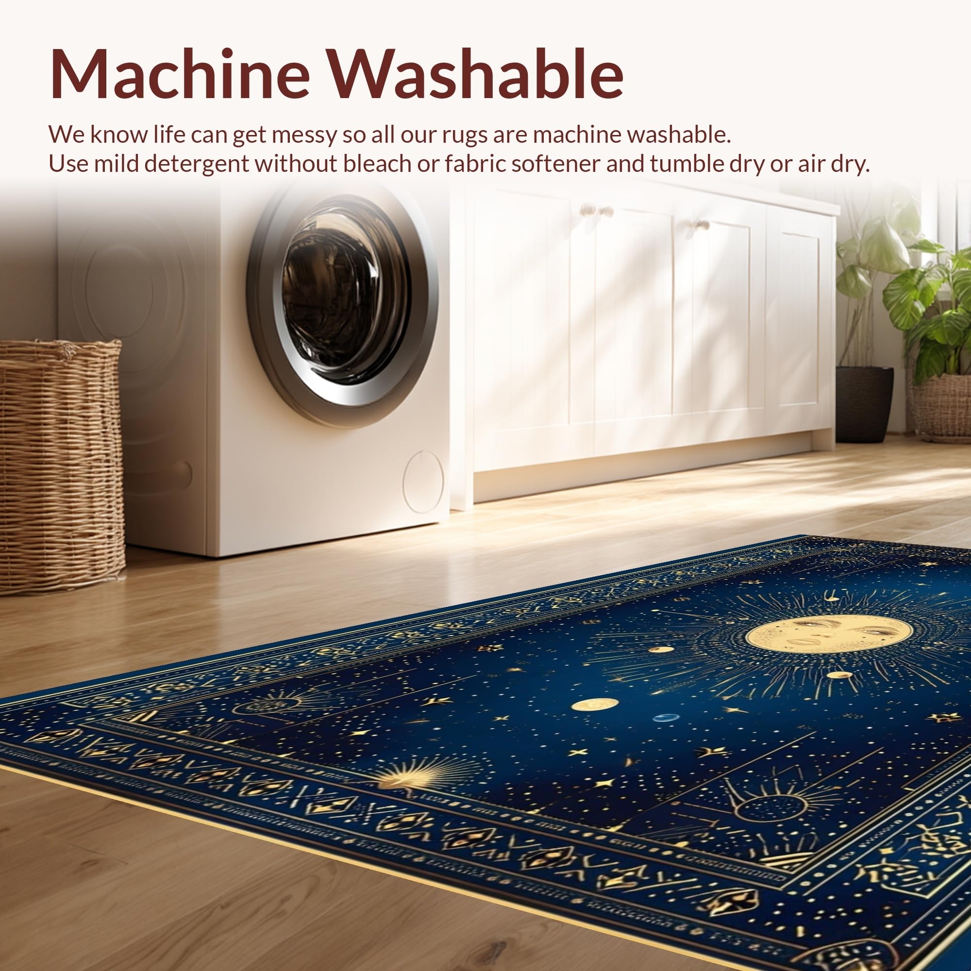 - Machine Washable: Our rugs can be easily thrown in the wash machine.