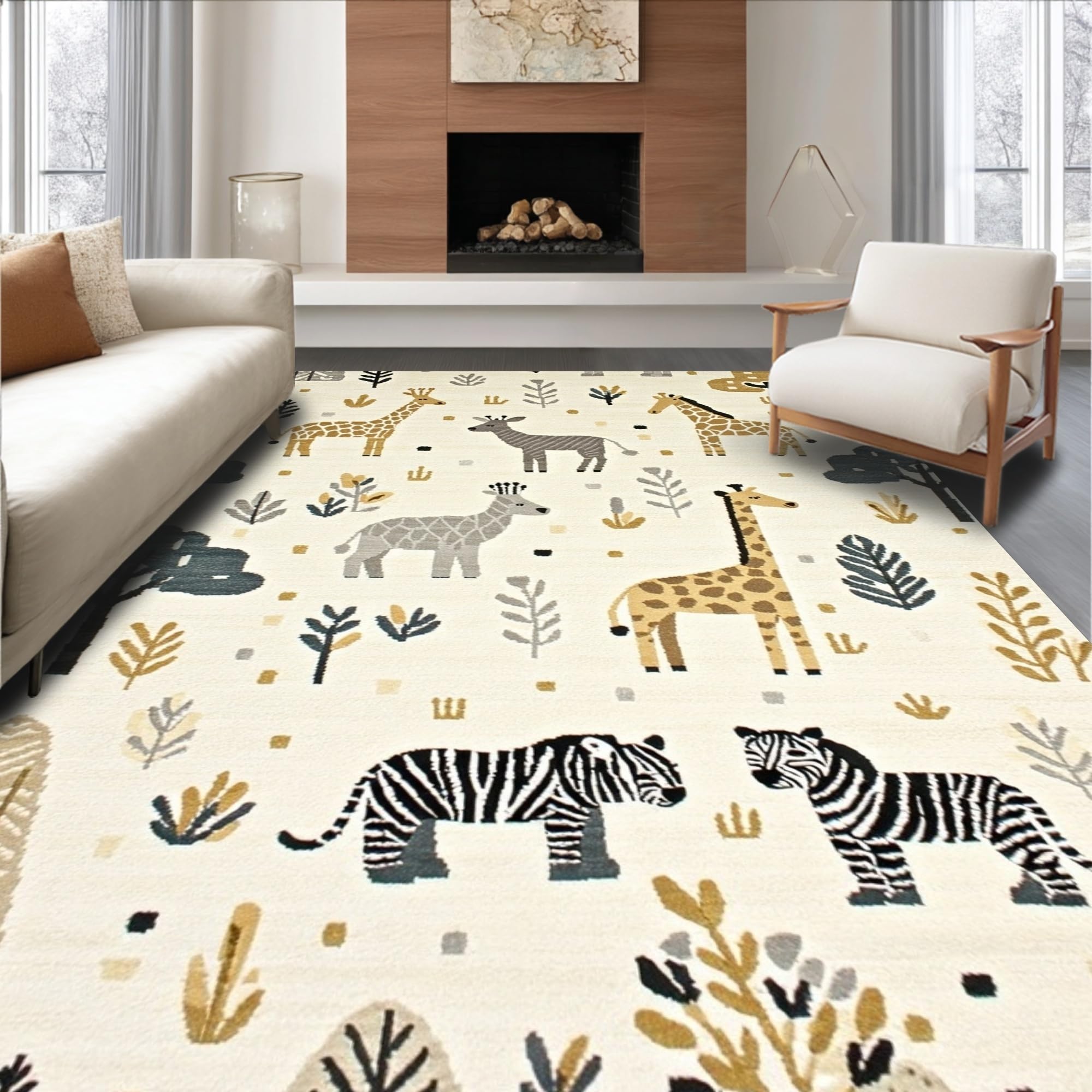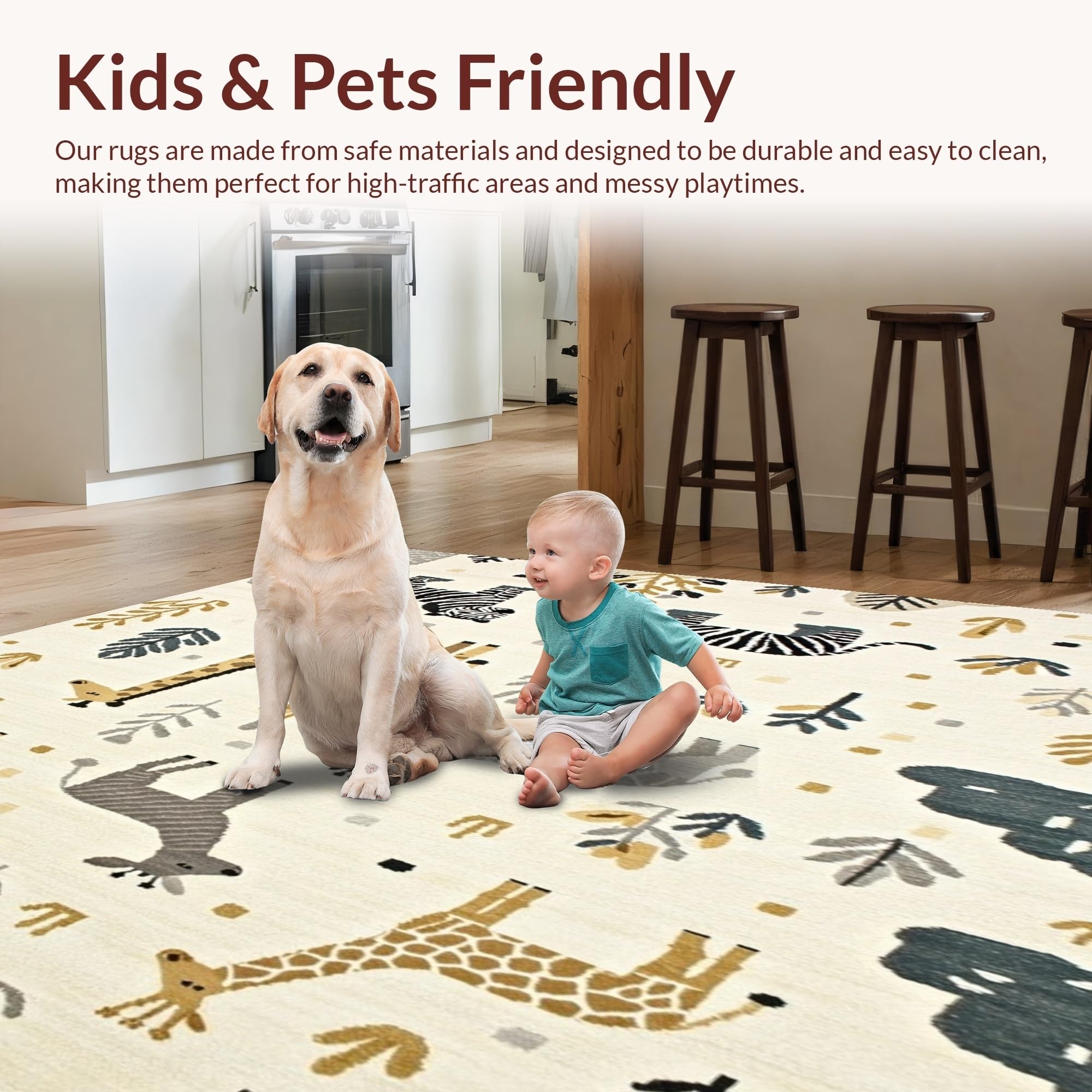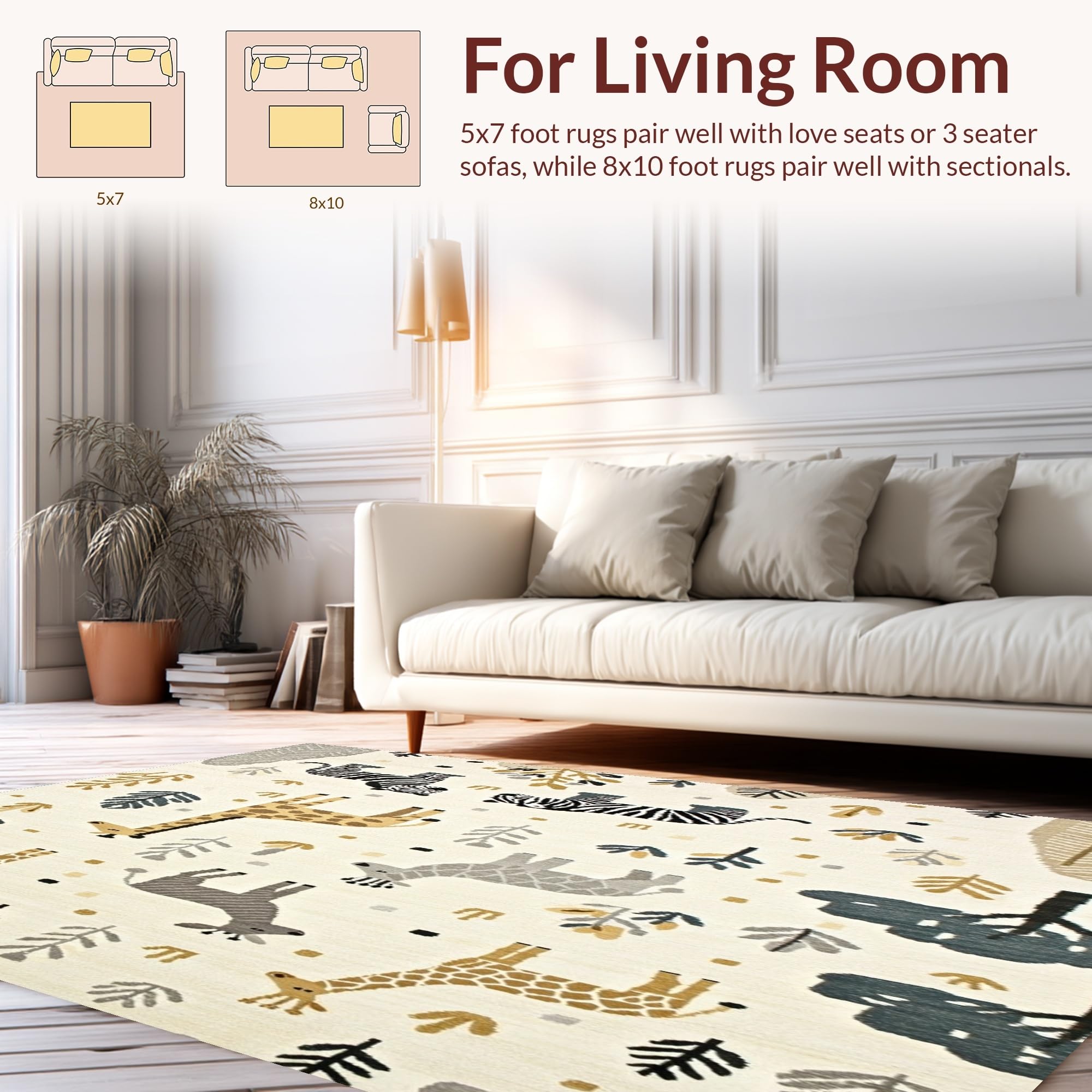 Ultra Soft Area Rug, Non Slip, Stain Resistant, Washable Area Rugs for Living Room, Bedroom, Charming Animal Themed Area Suitable for Boys Play Spaces(Beige) Overview: