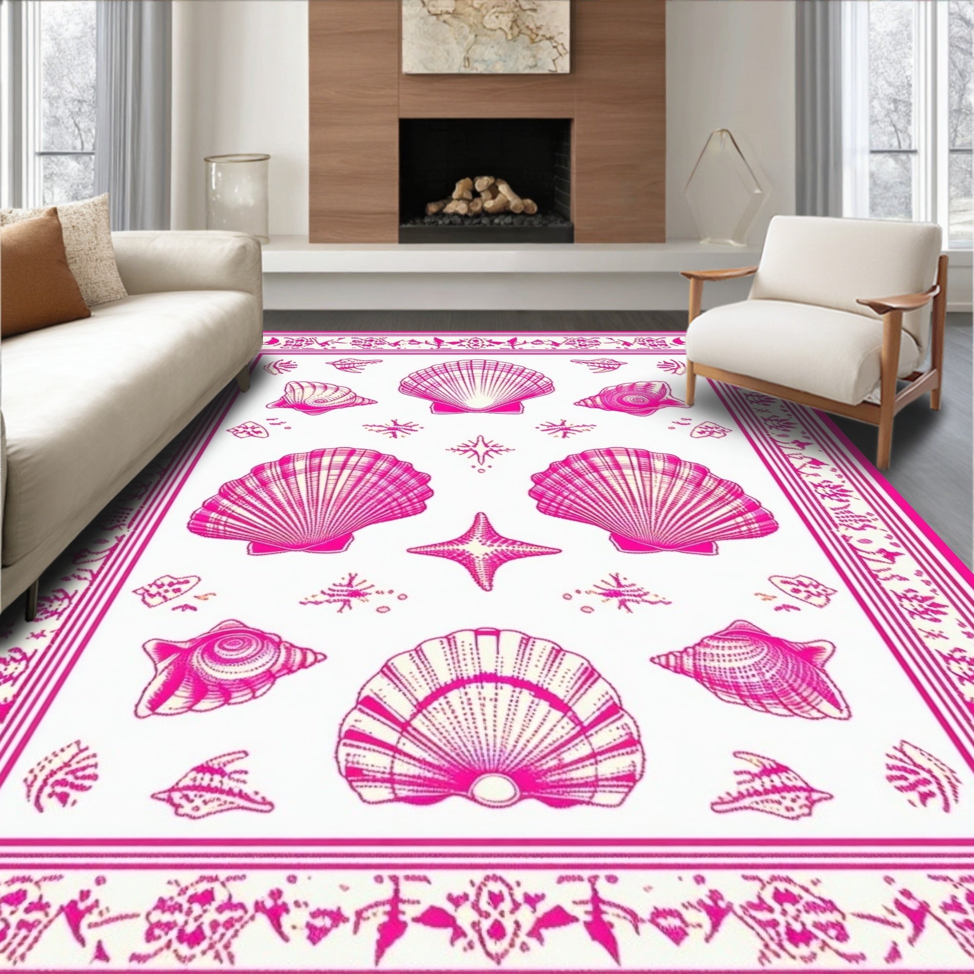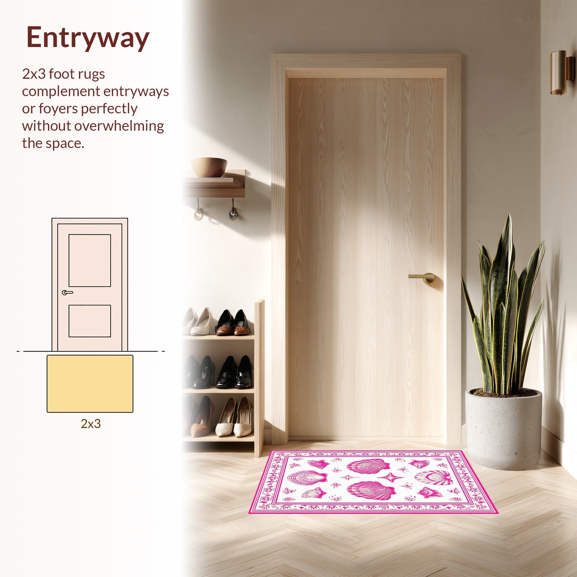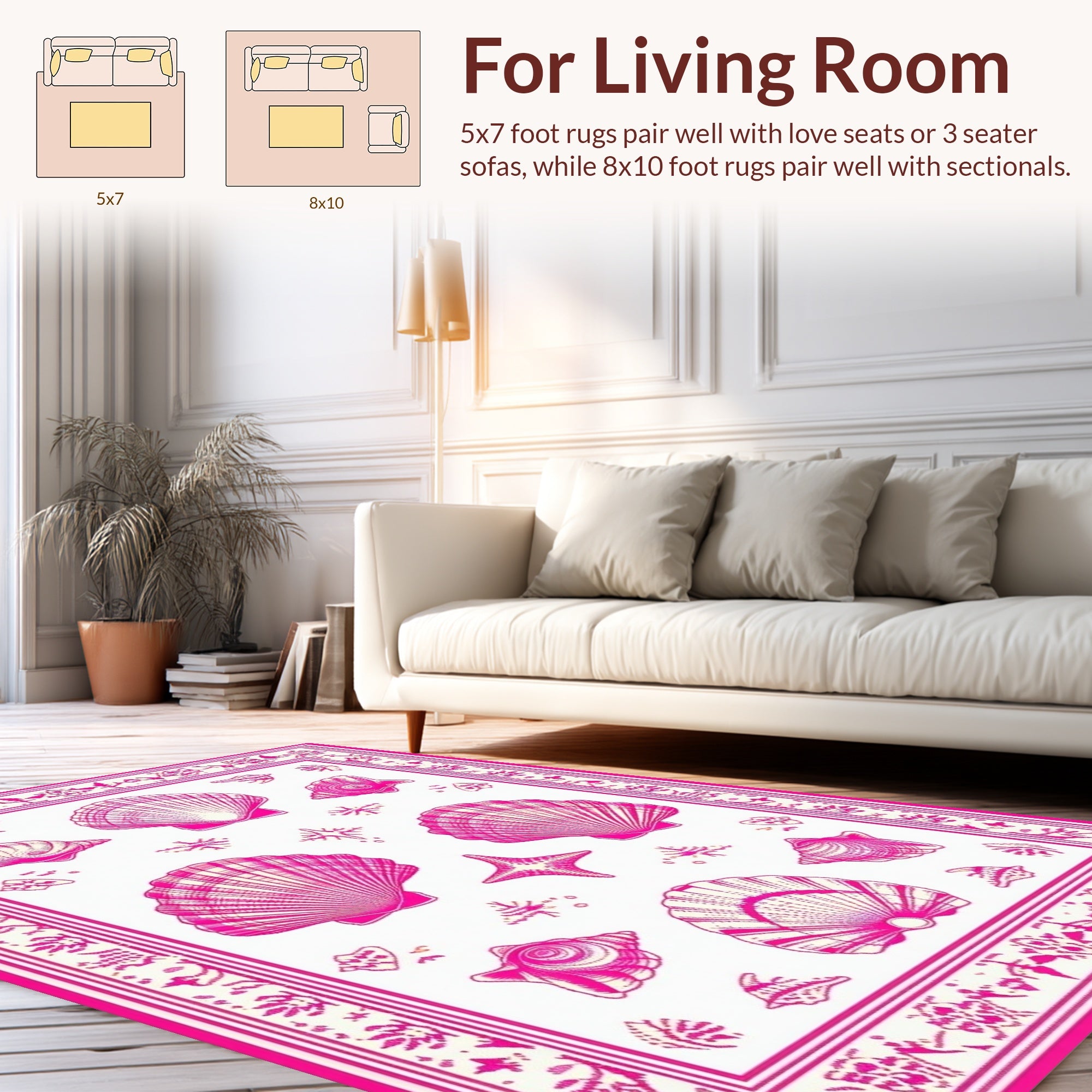 Flatwoven High Traffic Area Rug, Charming Beachy Pastel, Non Slip, Stain Resistant, Washable Area Rugs for Living Room, Bedroom (Pink) Overview: