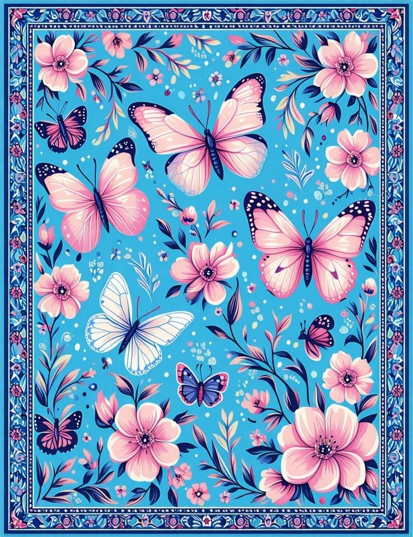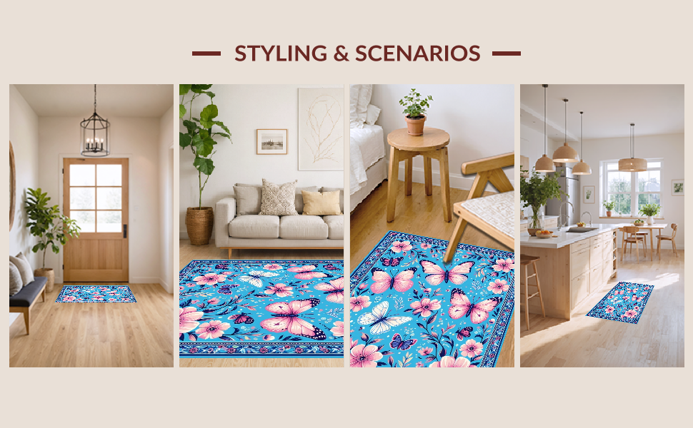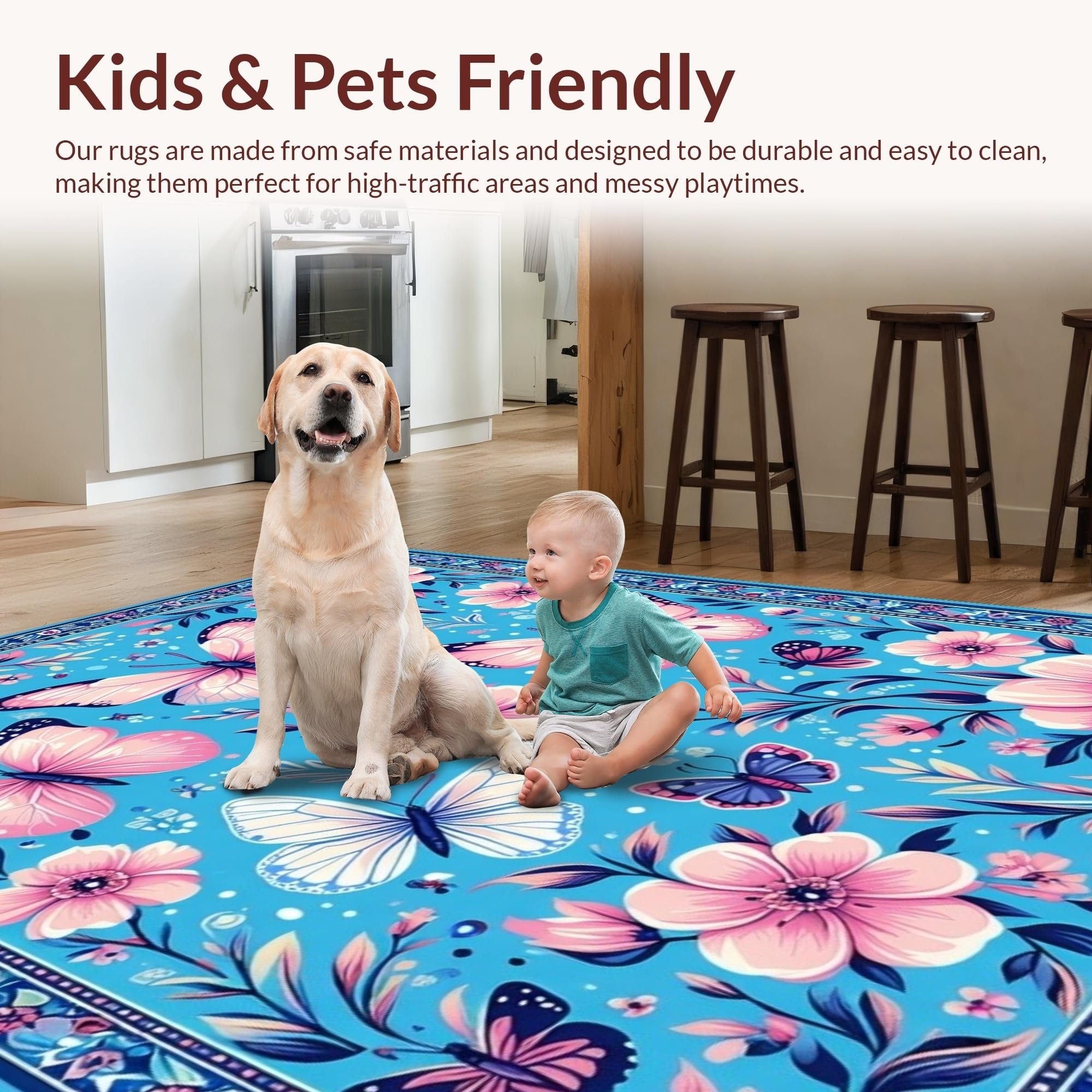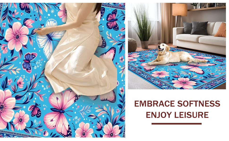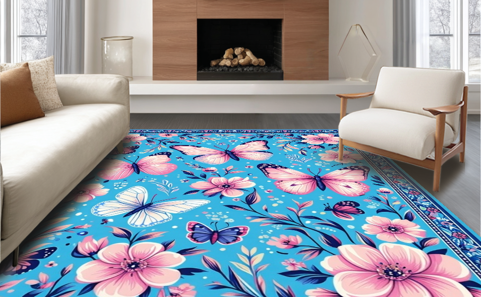 Ultra Soft Area Rug, Non Slip, Stain Resistant, Washable Area Rugs for Living Room, Bedroom, Charming Blue Botanical Print(Blue) Overview: