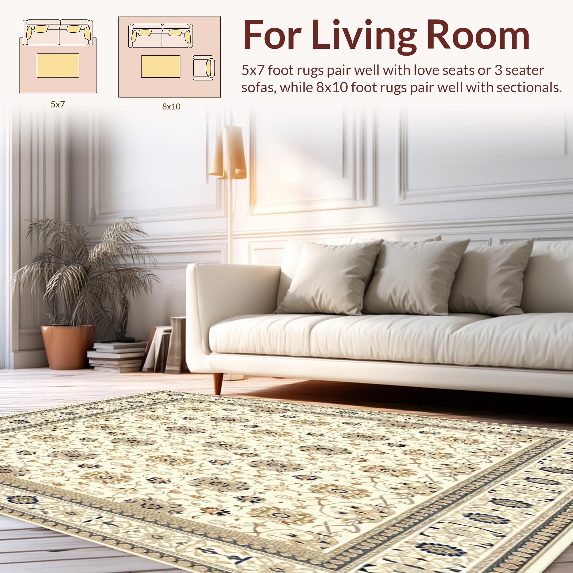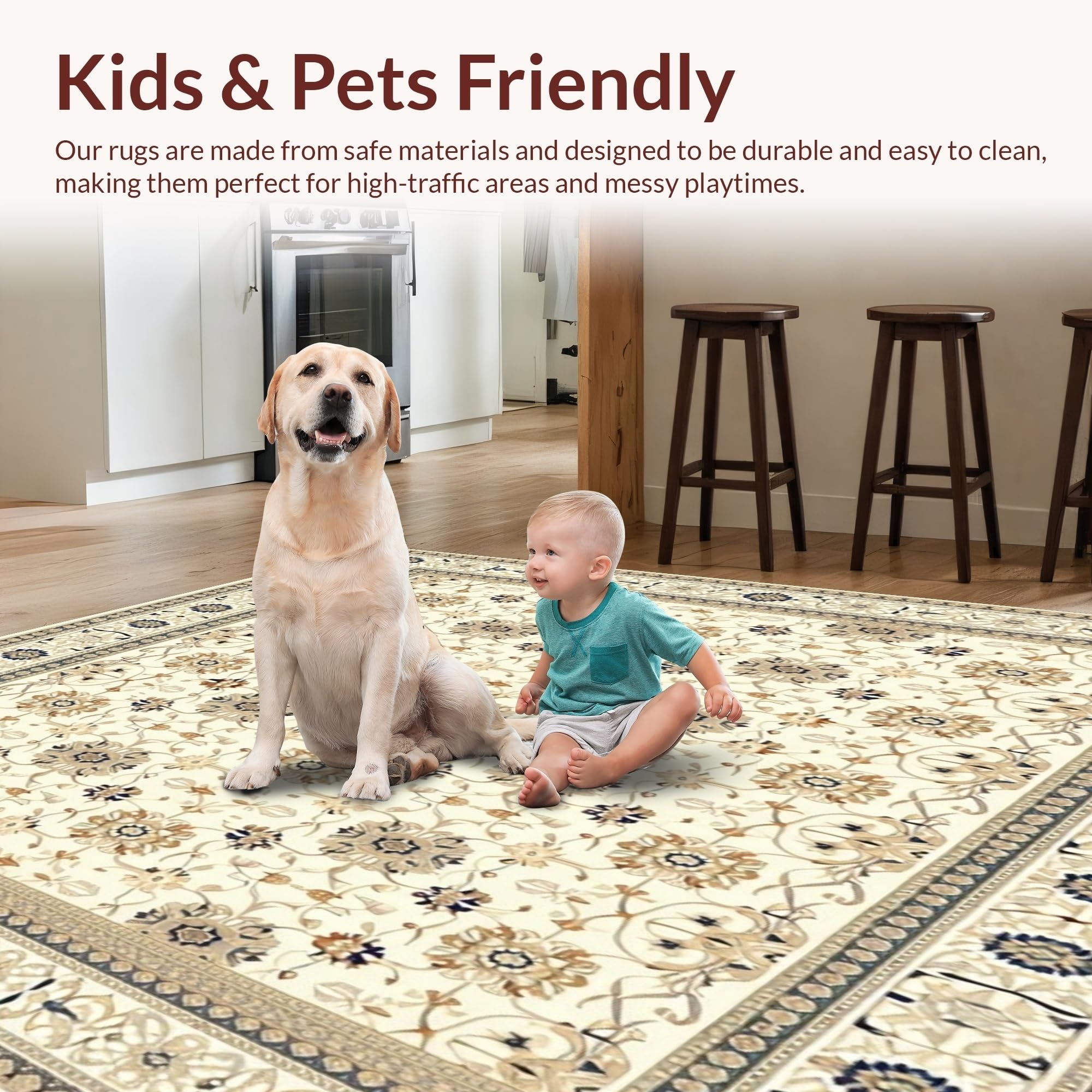 Ultra Soft Area Rug, Non Slip, Stain Resistant, Washable Area Rugs for Living Room, Bedroom, Charming Boho Area(Beige) Overview: