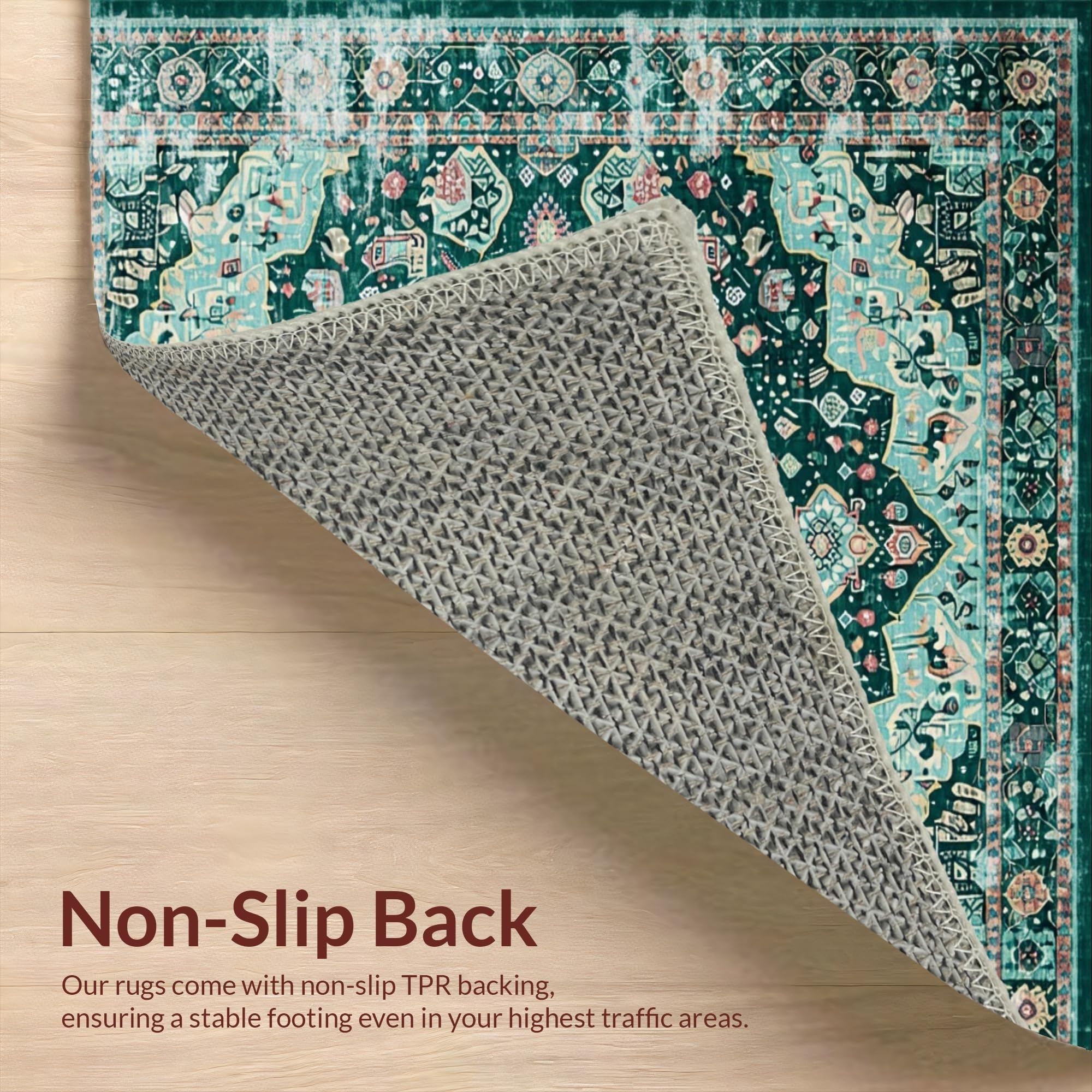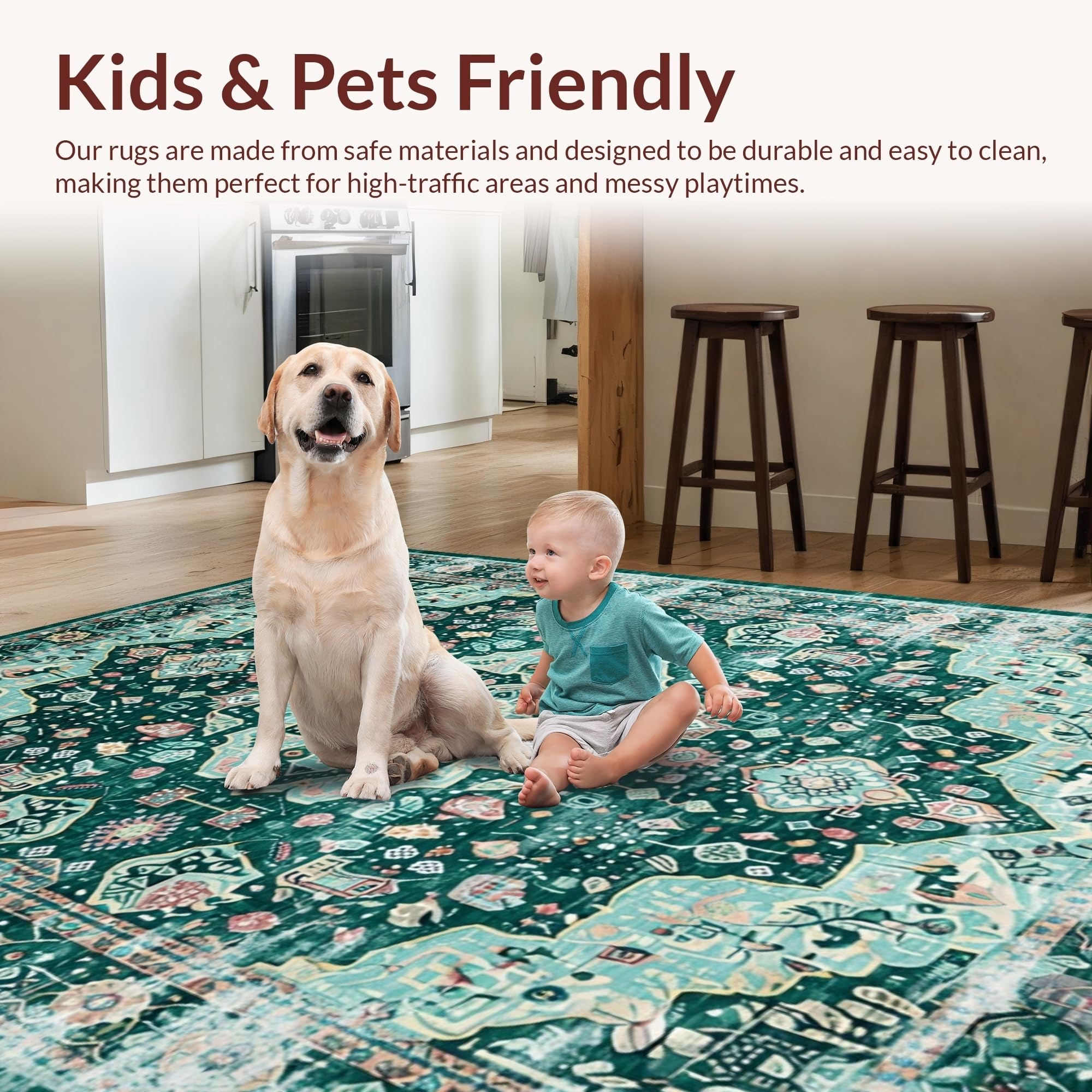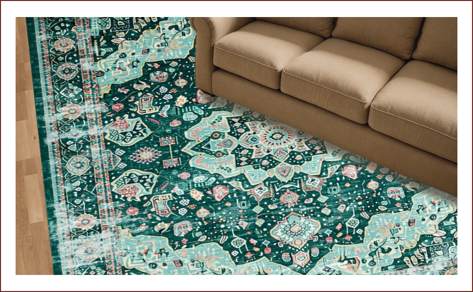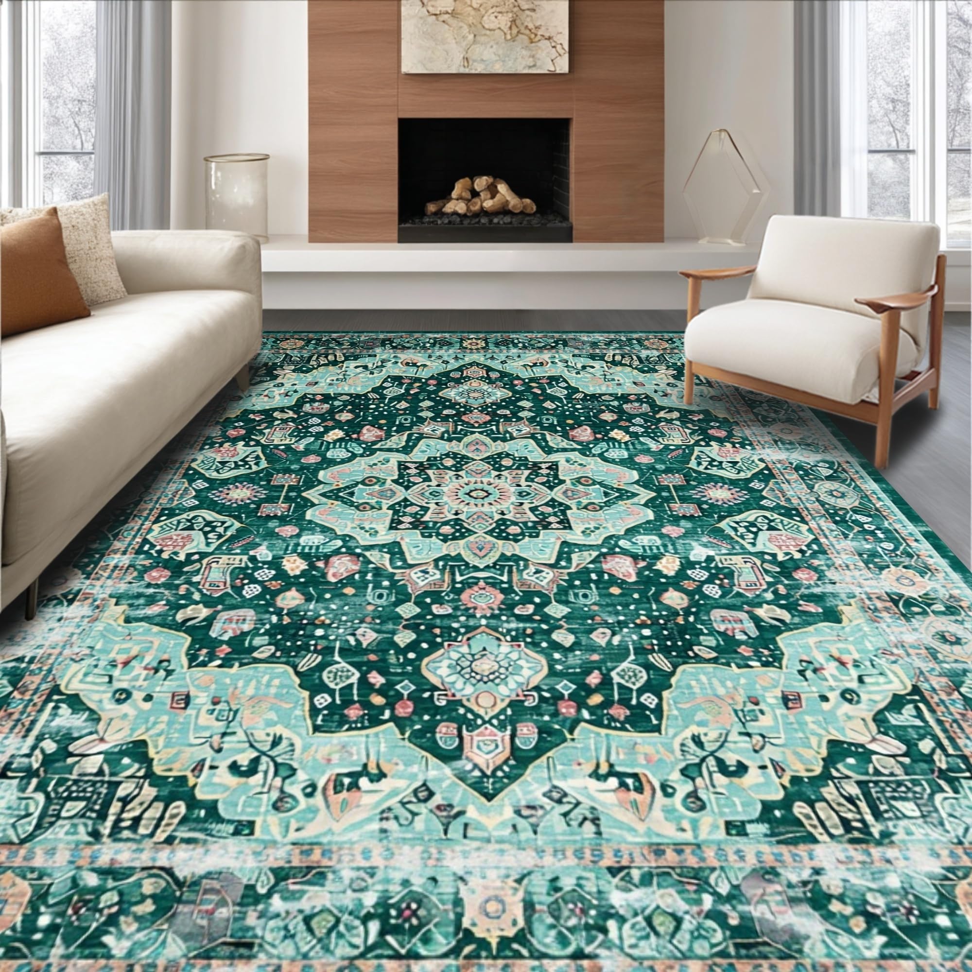 Ultra Soft Area Rug, Non Slip, Stain Resistant, Washable Area Rugs for Living Room, Bedroom, Charming Boho Floral Arrangement(Green) Overview:
