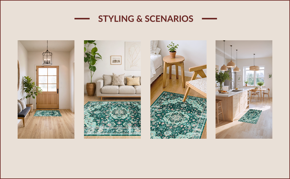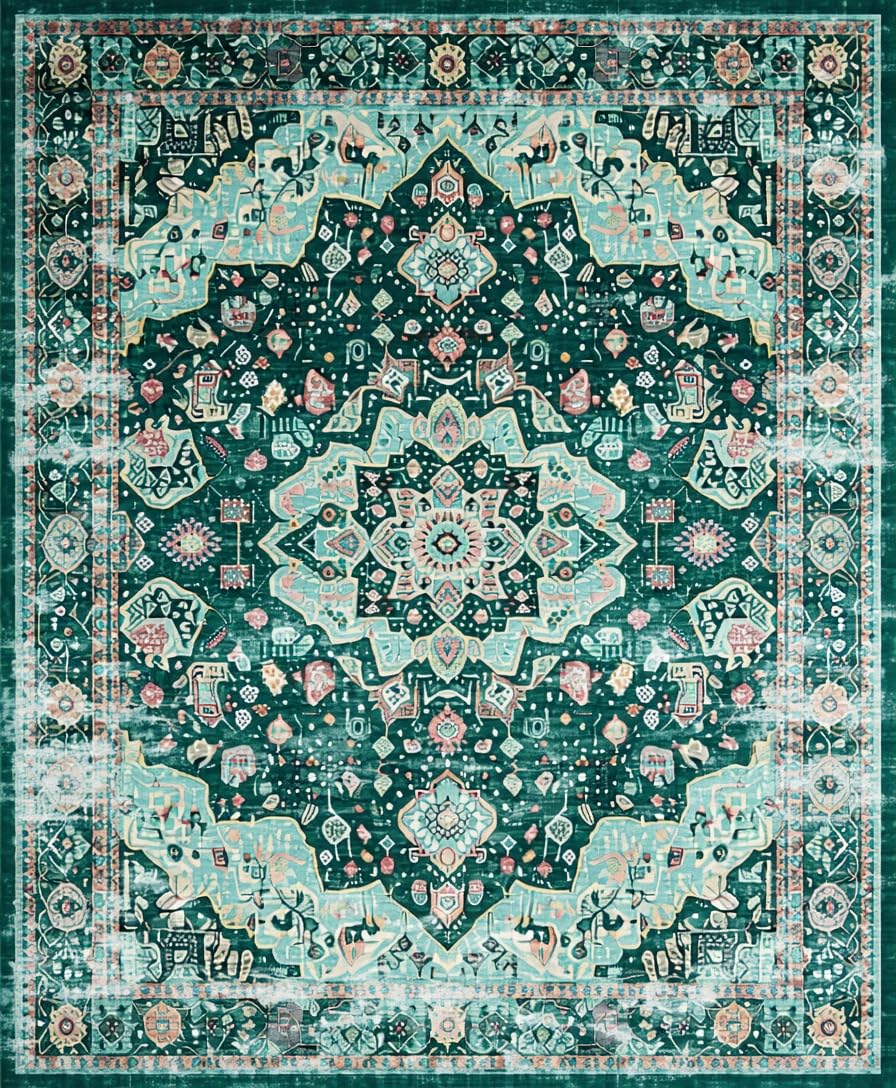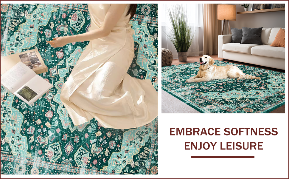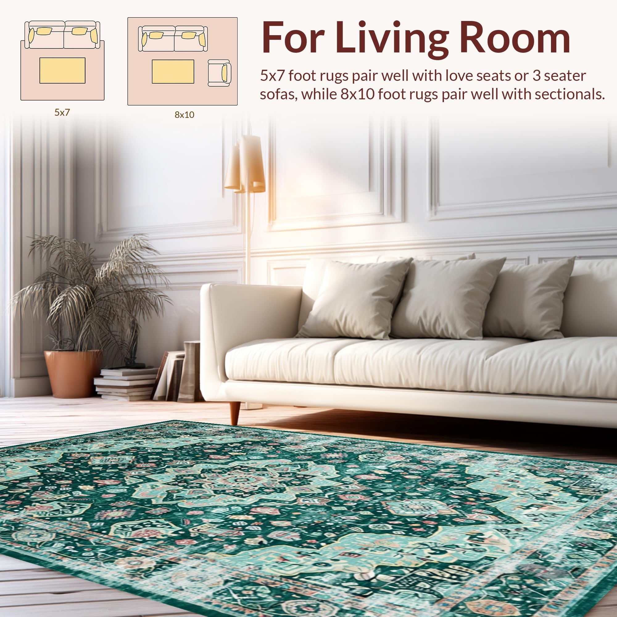 Ultra Soft Area Rug, Non Slip, Stain Resistant, Washable Area Rugs for Living Room, Bedroom, Charming Boho Floral Arrangement(Green) Overview: